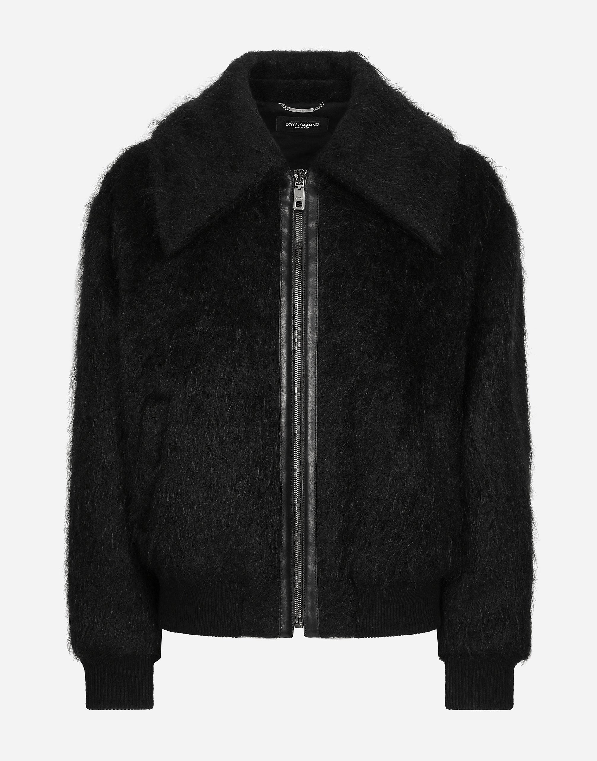 Contemporary men’s formalwear: The FW 24/25 Dolce&Gabbana Men’s Collection is embracing the concept of absolute elegance dominated by the iconic Nero Sicilia black. The daywear of the Dolce&Gabbana man comes to life through the outerwear that comes in a range of lengths and the slim-fit pants. For nightwear, the look becomes scintillating thanks to sequined embellishment and stone appliqués. This refined taste can also be seen on the accessories, such as on the slip-ons with hand-applied organza flower accent and the new clutch. Hairy-hand fabric bomber jacket in virgin wool and mohair: • Black • Regular fit • Zipper fastening • Fisherman’s rib-knit wide collar, hem and cuffs • Padded and quilted lining • The piece measures 65 cm from the rear collar seam on a size IT 48 • Made in Italy