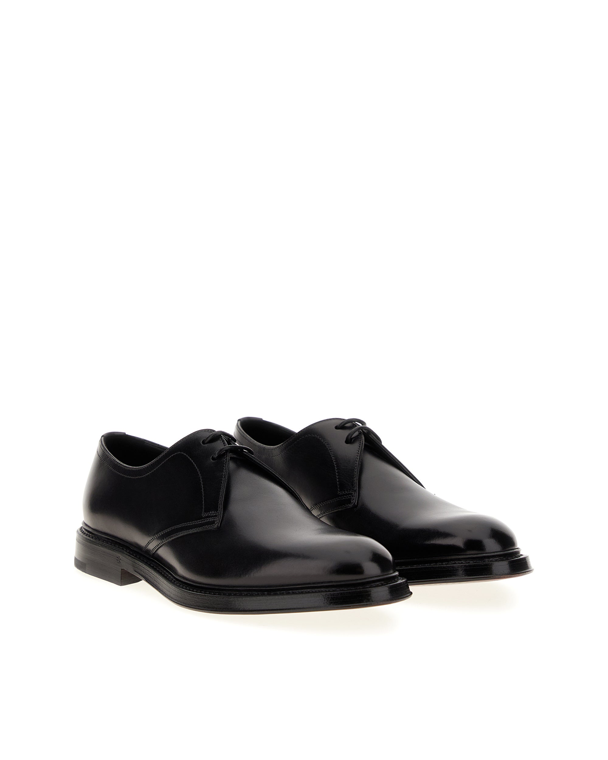 Synonymous with style and elegance, these Giotto Derby shoes come in hand-painted calfskin and feature a Goodyear construction. The embodiment of craftsmanship par excellence, they merge robustness and durability with absolute comfort. • Hand-painted calfskin upper • Waxed laces • Leather insole with quilted satin insert and branded label • Leather-covered heel • Leather bottom assembly with grooved detailing • Leather sole • Made in Italy