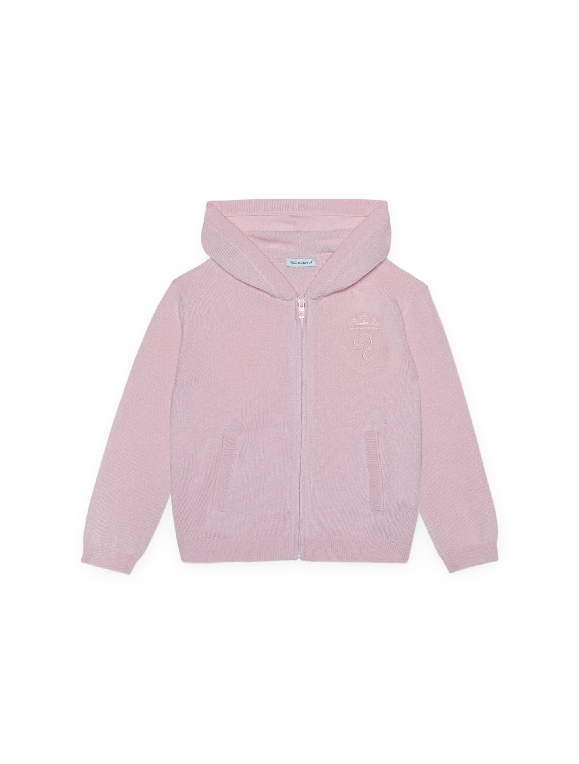 The “Heritage Knitwear” theme features the iconic symbols of “Dolce&Gabbana”, such as the crown and the laurel, that enrich the basic knitwear pieces. The hooded zip-up sweater is made of soft, shaved cashmere and is practical and ideal for every occasion. • Regular fit • 12” Fineness • Round neck • Long sleeves • Pockets on the front • Elasticated jersey hood edge, bottom and wrists • Front zip-up closure with logoed zipper • Unlined • Made in Italy