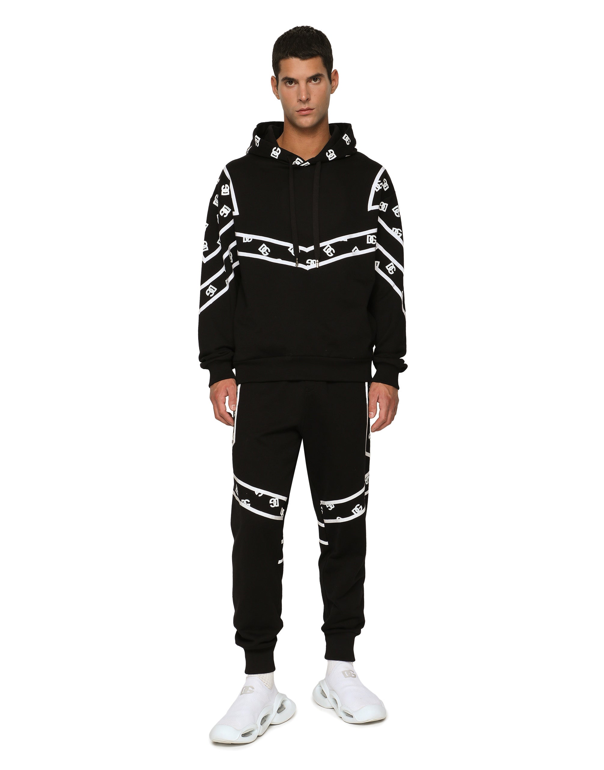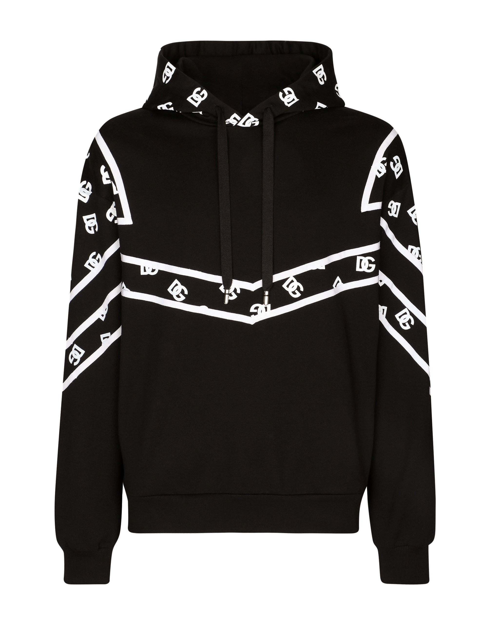 The FW22 Fashion Show was built around new proportions and geometries and features silhouettes that have been created with technical fabrics, graffiti prints and all-over logo detailing. A collection that looks to the future, conveying the current world through technology, the metaverse, the virtual world and the younger generations. Cotton jersey hoodie with the DG-logo-print details: • Regular fit • Drawstring hood with branded metal aglets • Stretch knit hem and cuffs • The piece measures 69 cm from the rear collar seam on a size IT 48 • The model is 185 cm tall and wears a size IT 48 • Made in Italy