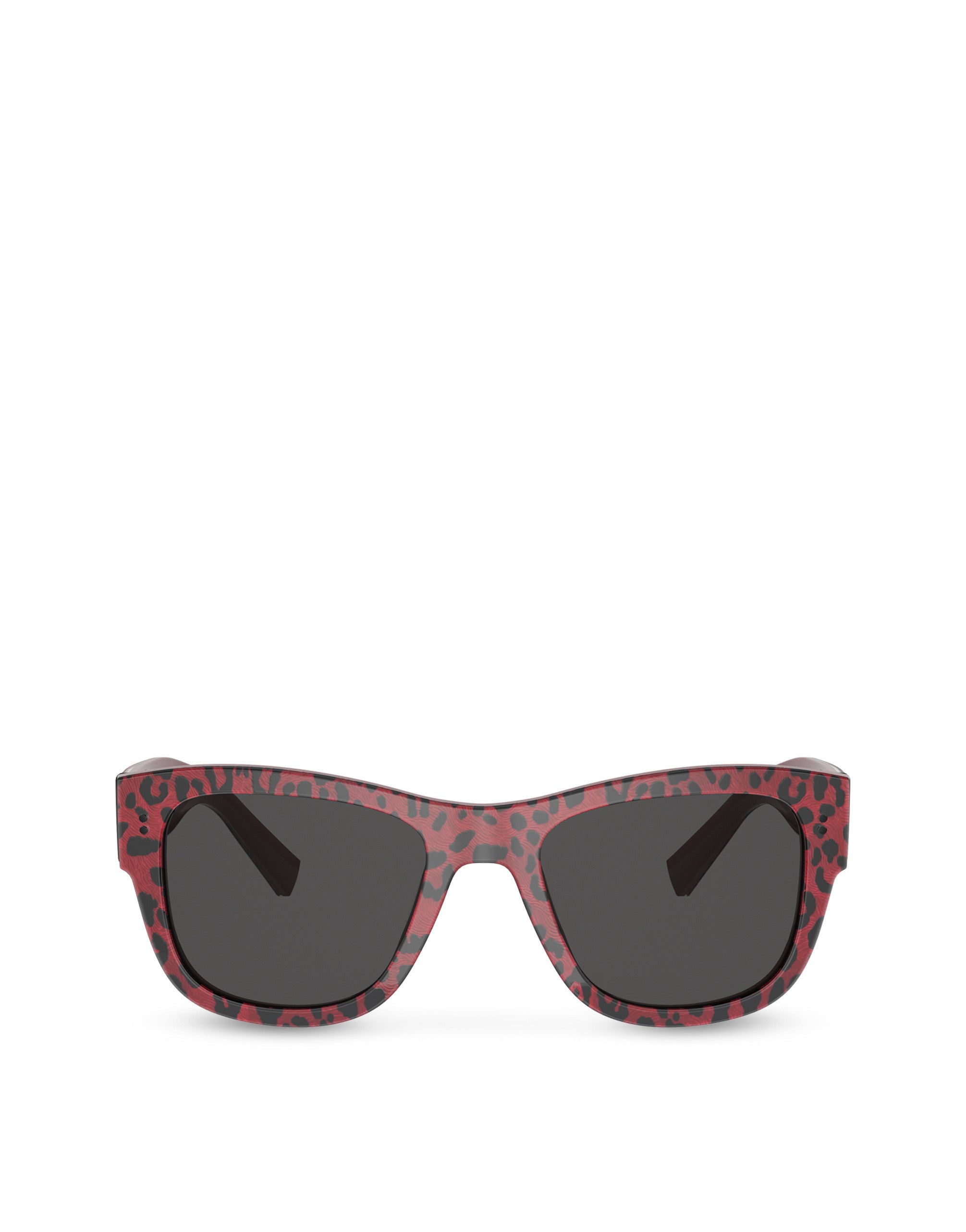 • Red leo print acetate temples • Dark grey lenses • 100% UV protection • Size lens - bridge - temple: 52 - 20 - 140 mm • Fitting: Universal • Packaging: Institutional • Made in Italy