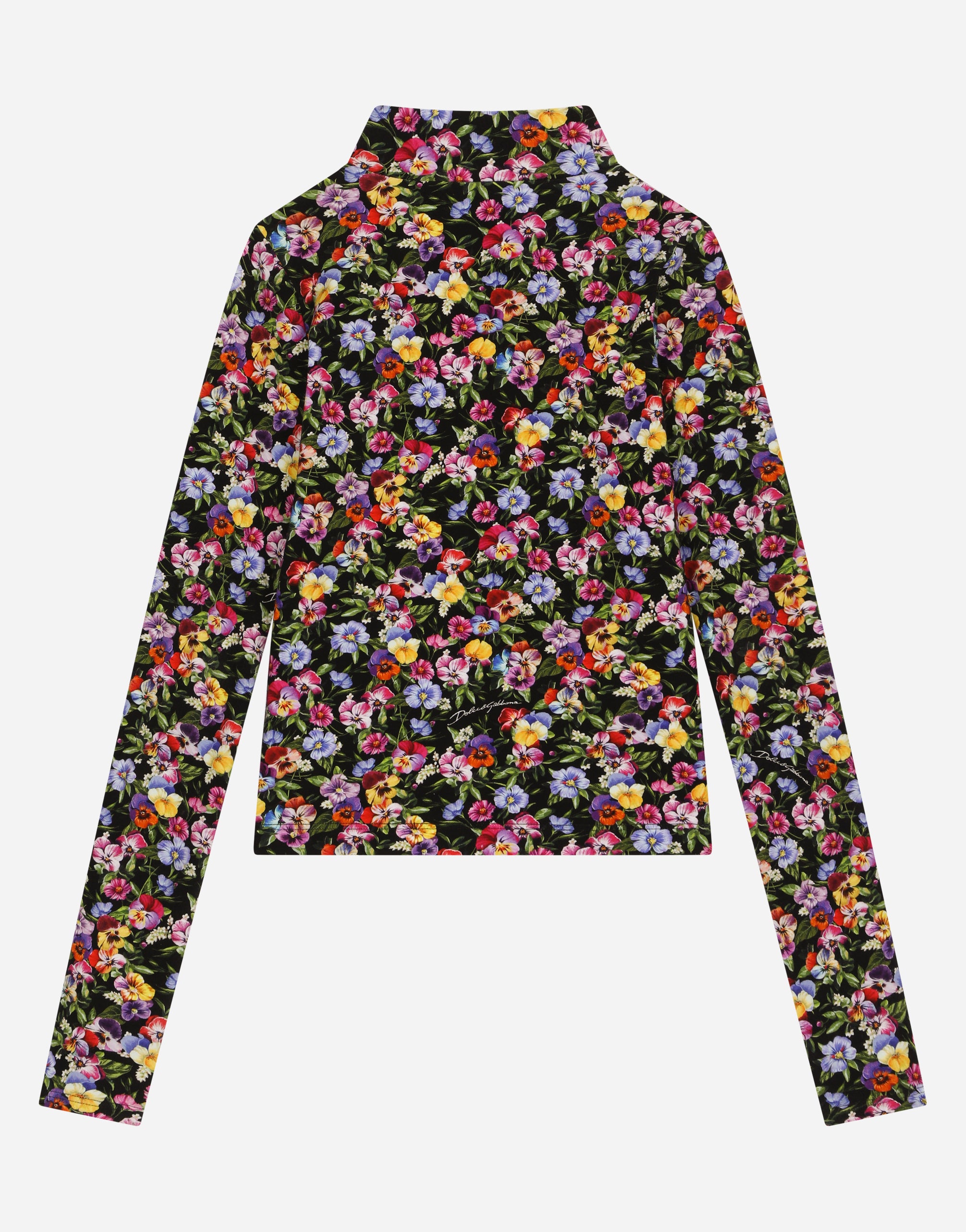 The girl’s Prateria Collection is inspired by the women’s 2001 New Hippy Collection, where the desert and meadows become bohemian and glamorous. Vaguely vintage/grunge looks come made up of volume and special pieces flaunt light printed and solid-color fabric details, smock stitching, corduroy, faux fur and a print distinguished by delicate and joyful multi-colored wildflowers for fun and ironic little girls. Interlock T-shirt with all-over violet print: • Multi-colored • Slim fit • Turtle-neck • Long sleeves • The item in the size 6 years measures 43 cm from the shoulder seam • Made in Italy The difference in the print placement that you may find on this product is a feature of Dolce&Gabbana’s “Handmade” pieces. A detail that makes every garment or accessory unique and exclusive.
