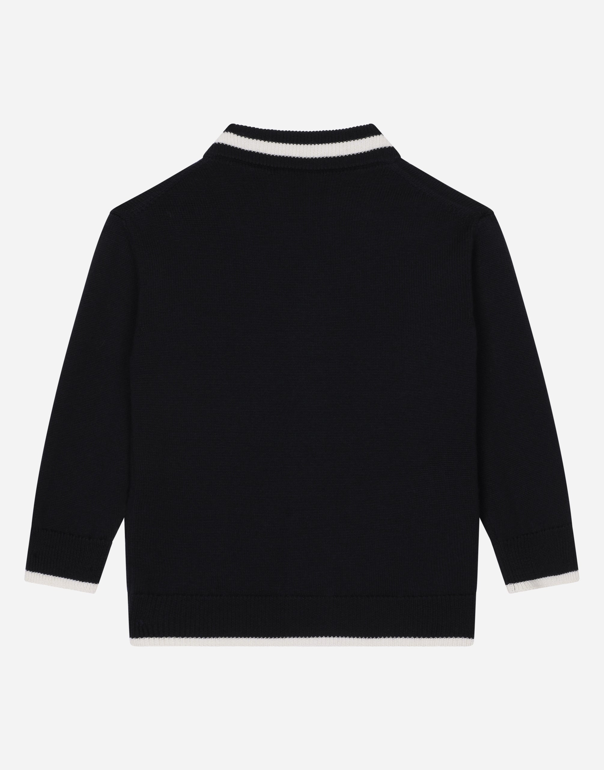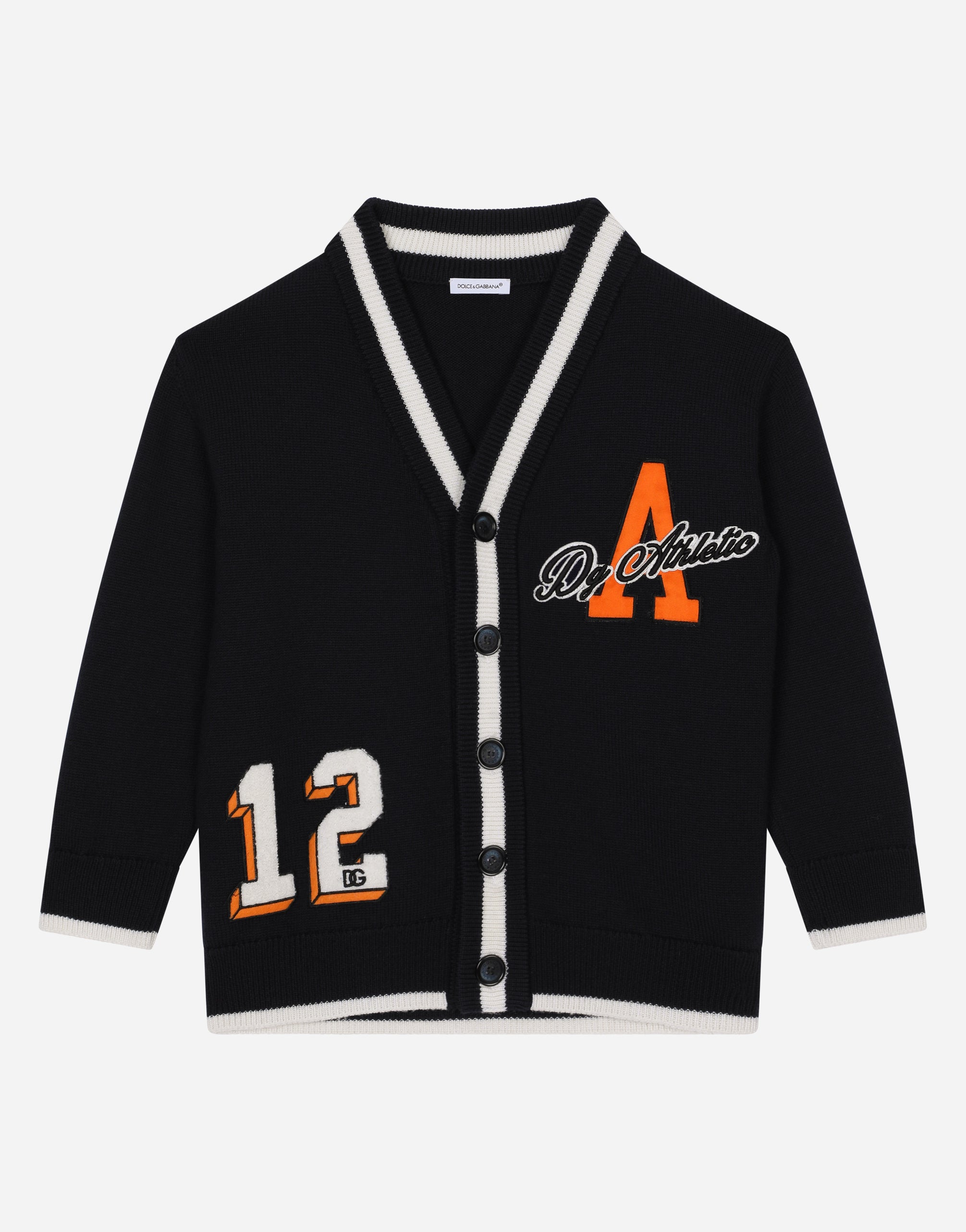 The Back to School collection ironically recounts the tartan print that has been given a fluid aesthetic and the concept of the mascot, which is transforming into a fun and sporty mini leopard for the occasion, dressed head to toe in Dolce&Gabbana looks. “Too Cool For School”, contemporary outfits, a mix of colorful patches, logos and symbols overlap for streetwear looks in which our iconic accents become interchangeable and ultra-creative to provide stylish back-to-school looks. Jacquard knit cardigan with patches and buttons: • Multi-colored • Oversize fit • 7-gauge knit • V-neck • Long sleeves • Front patches • Fine-rib trim, hem and cuffs • Metal button fastenings on the front • The item in the size 6 years measures 49 cm from the shoulder seam • Made in Italy