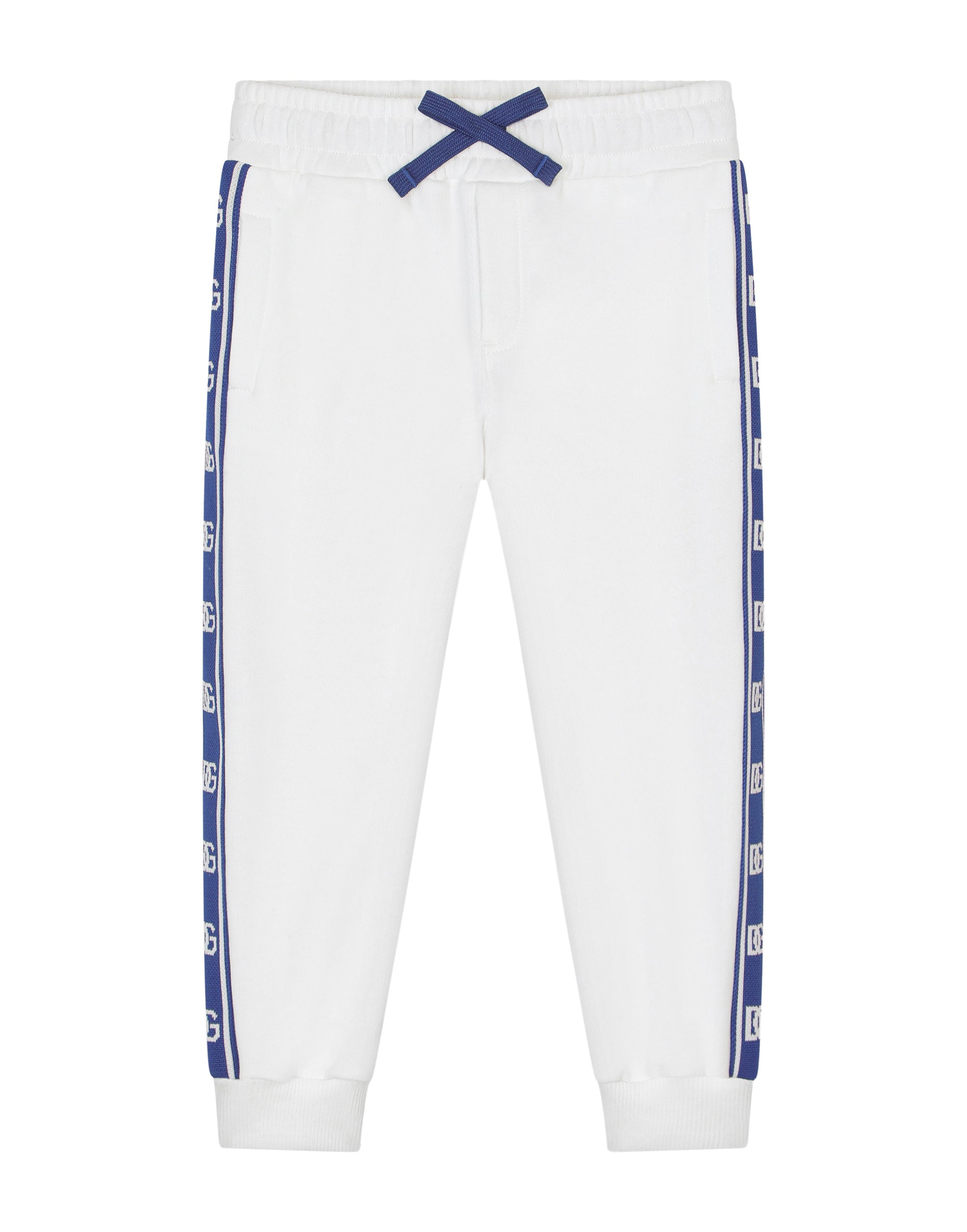 With DG Sport, Dolce&Gabbana is recounting the evolution of sports style that is being embellished with 70s-inspired details and taking its place in your everyday closet. Vibrant colors and branded details distinguish sporty technical clothing, creating contemporary and unique outfits. These cotton jersey joggers feature branded side bands. • Oversize fit • Stretch waistband with drawstring • Welt side and back pockets • Stretch knit cuffs • Unlined • The item in the size 3 years measures 58 cm in length • Made in Italy