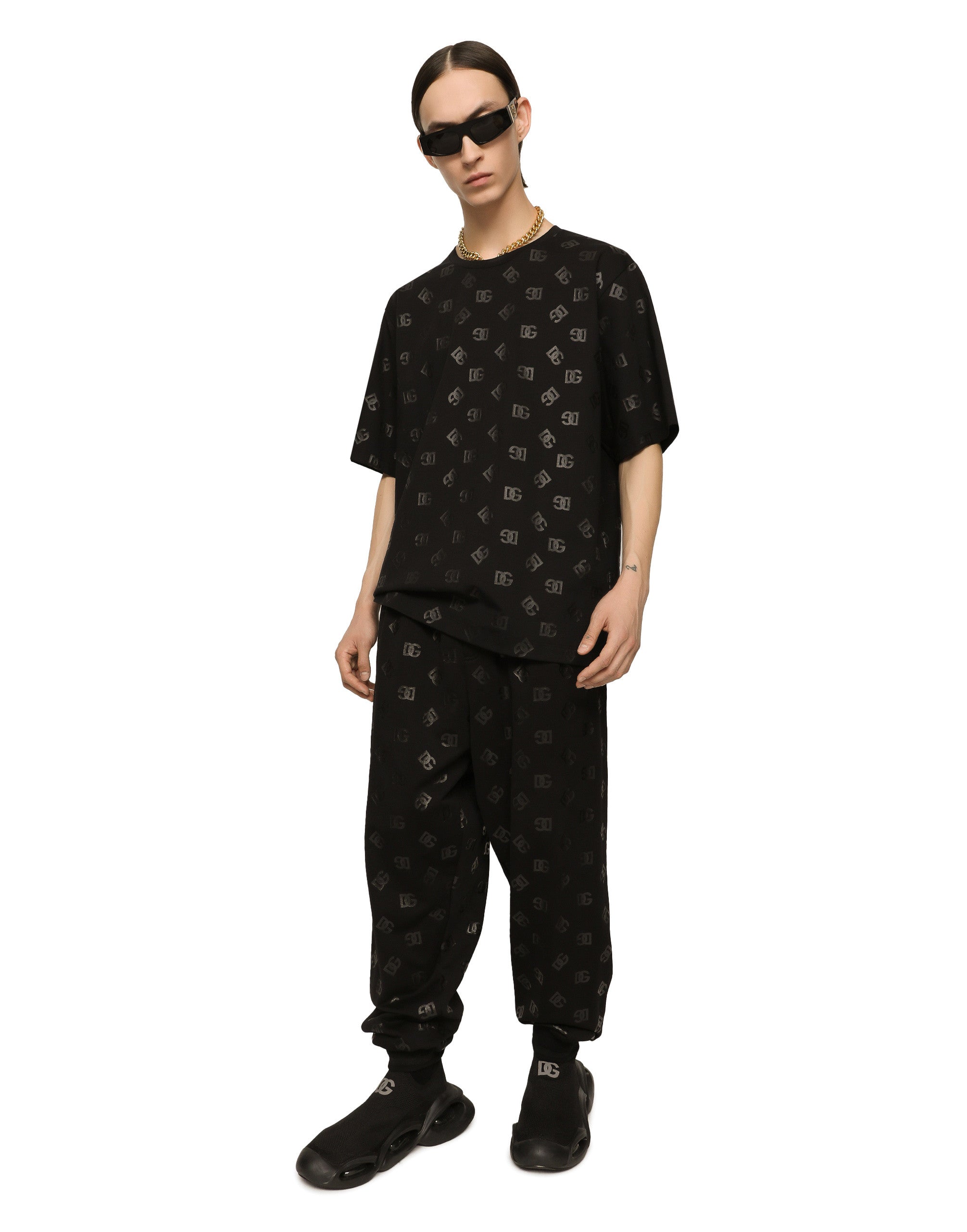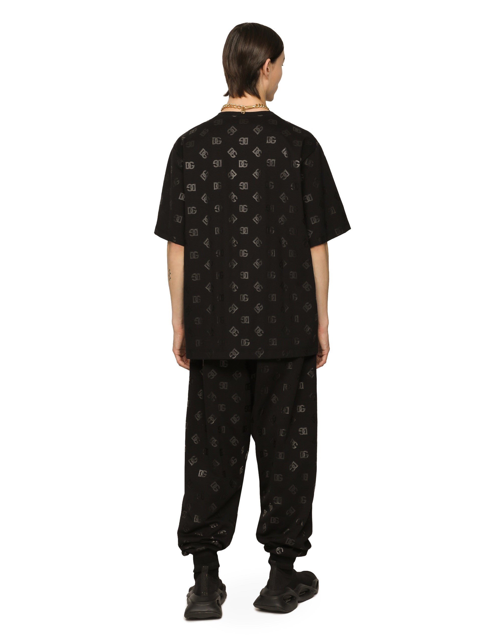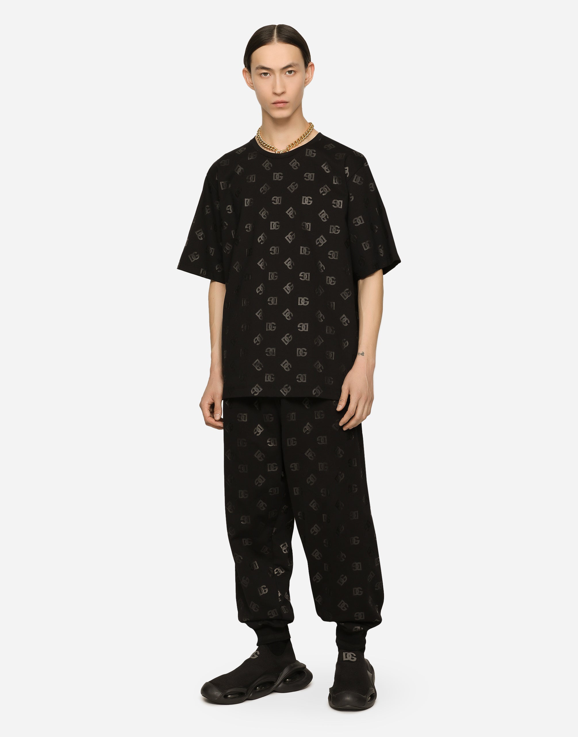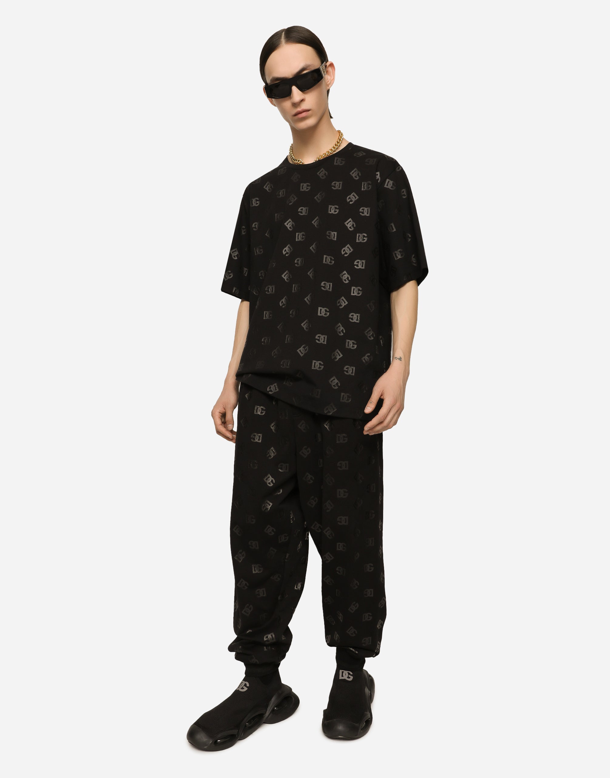In the “Black Sicily” collection, the flawless and iconic Nero Sicilia black becomes Nero Urbano black. Paired with the Hawaiian prints and the DG Heart, all the featured looks flaunt and reveal new ways of pairing this color with a new current, innovative and utterly contemporary way. Cotton jersey jogging pants with all-over DG monogram print: • Regular fit • Stretch waistband with drawstring and branded metal aglets • Front welt pockets and back welt pocket with zipper • Stretch ankle cuffs • The item measures 99 cm on the outer leg on a size IT 48 • The model is 185 cm tall and wears a size IT 48 • Made in Italy