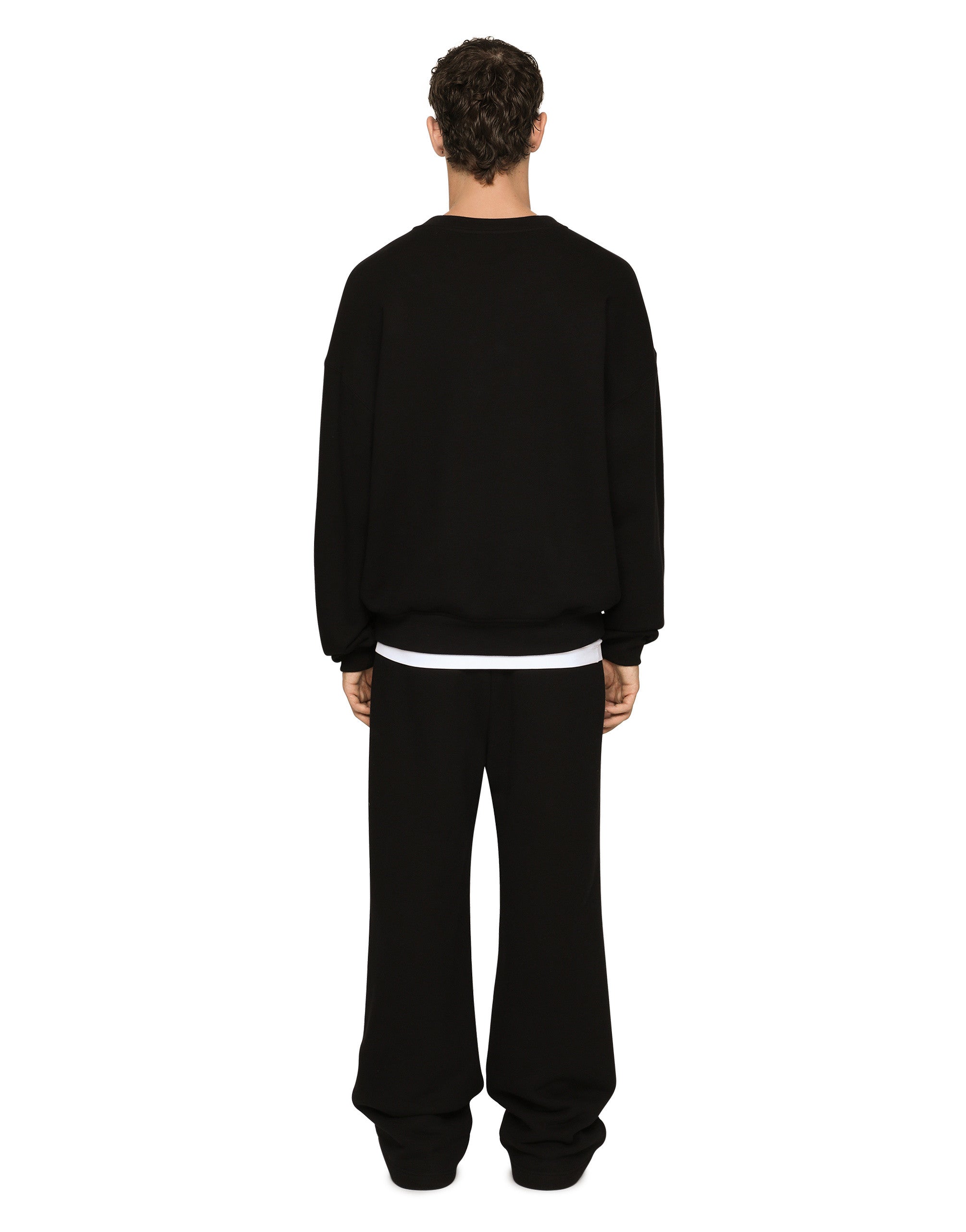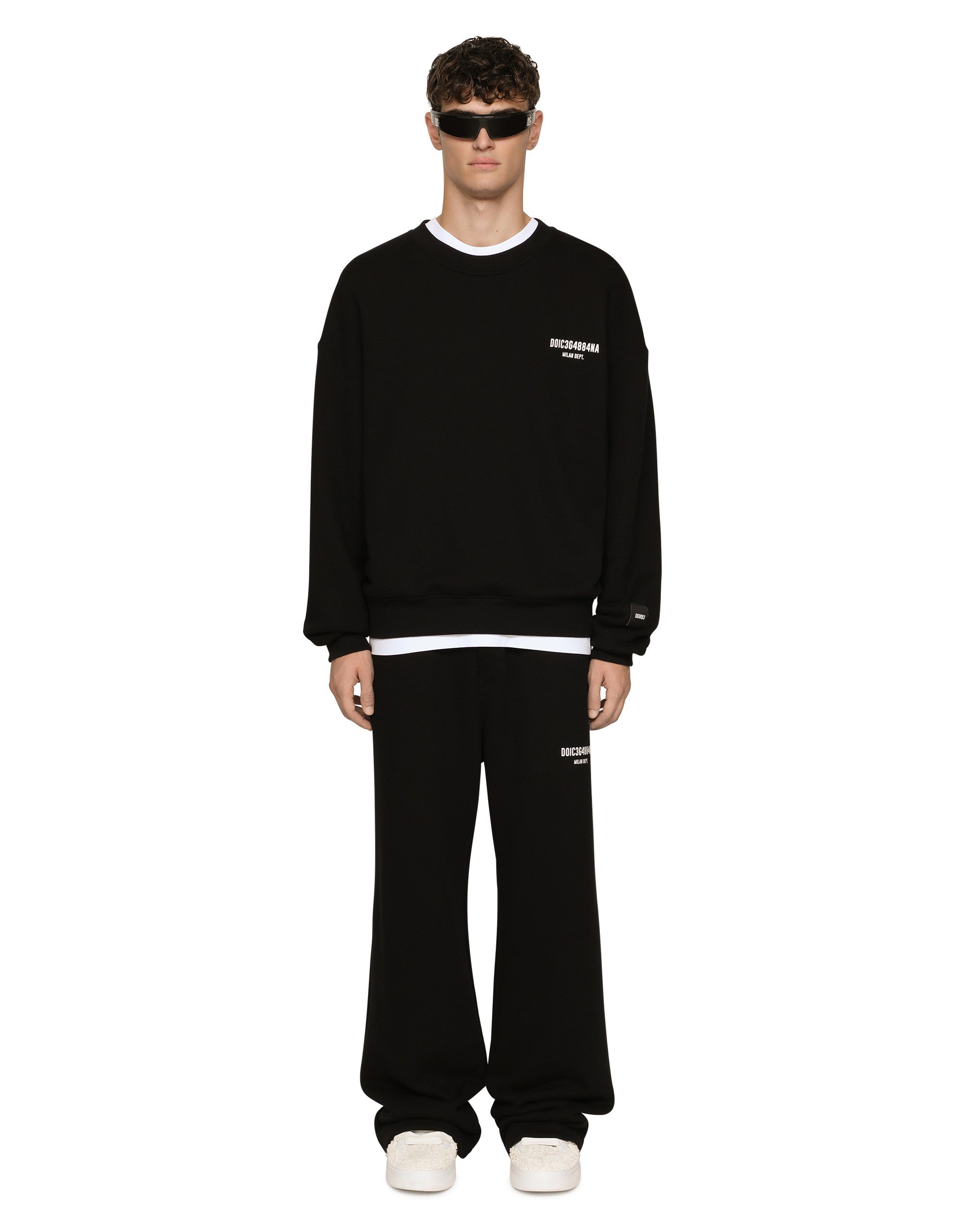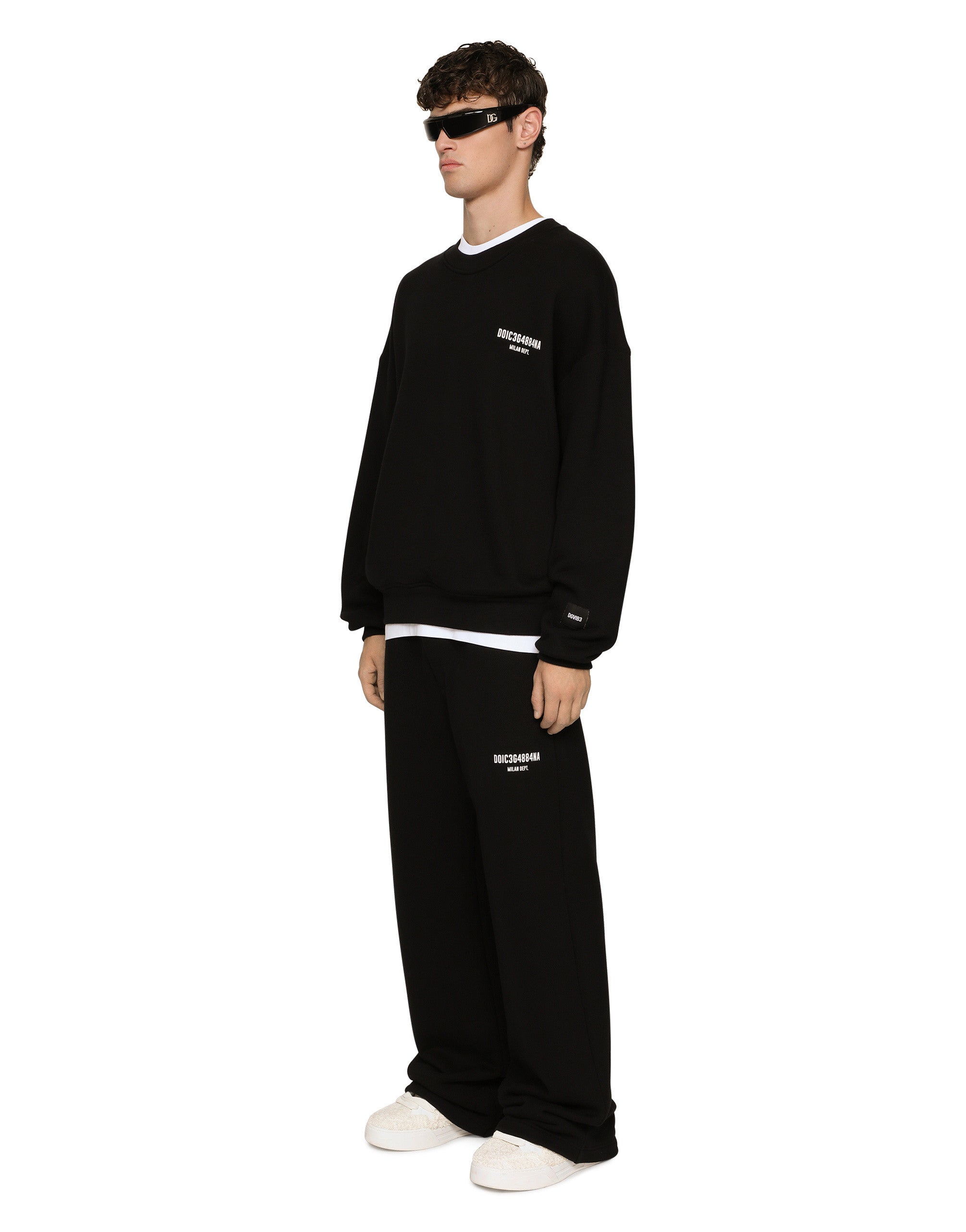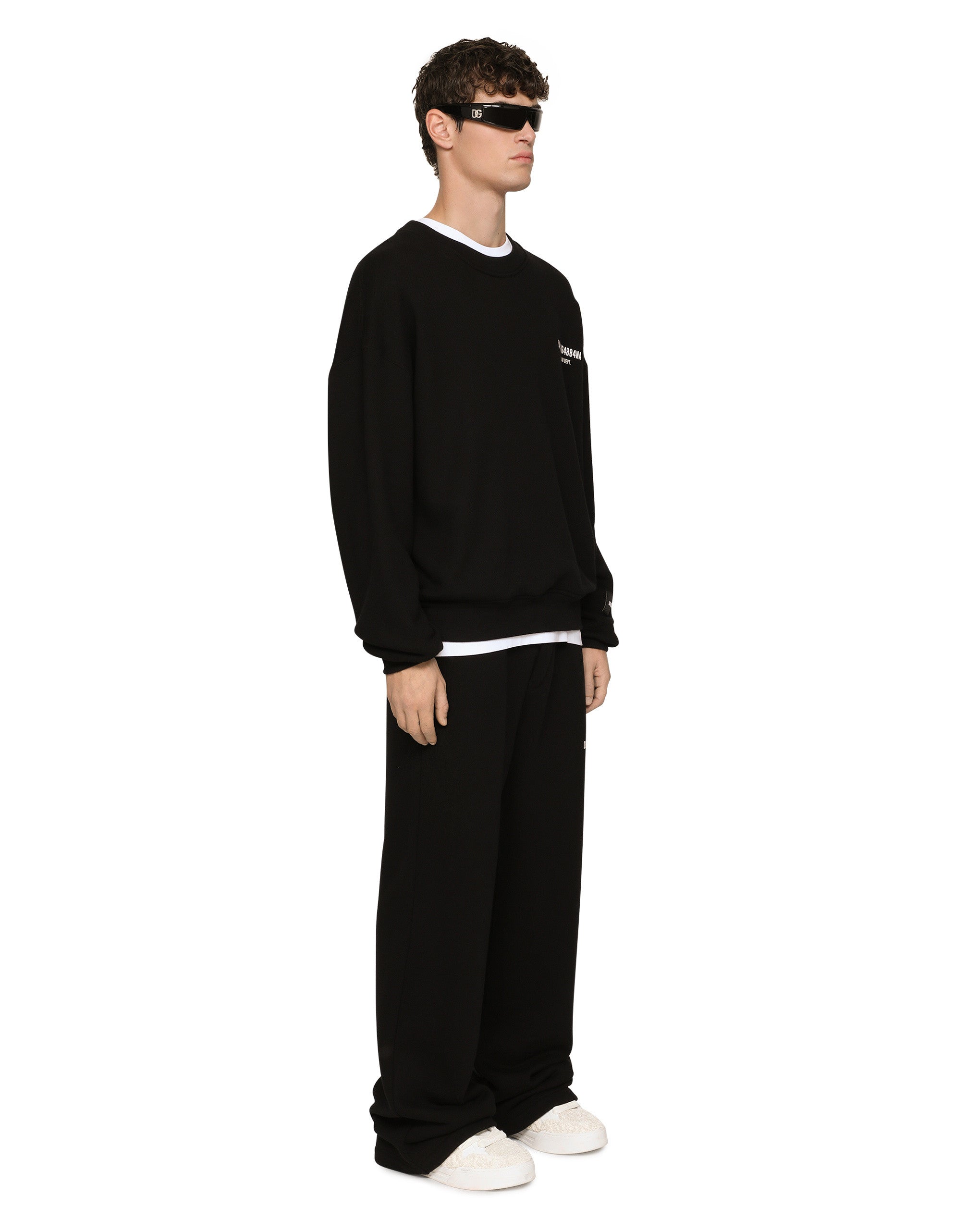 The new DGVIB3 collection is introducing us to the new language of Dolce&Gabbana: graphic taste and music are the keywords. All the prints, symbols, oversize volumes, new shapes, lengths and urban/street influences that we find in the collection are there precisely to recreate a unisex aesthetic, one that isn't tied to any specific physicality, yet with the specific desire to respect the characteristics of both sexes and convey a new and as-yet unexplored side of the Dolce&Gabbana world. Diagonal-weave cotton jersey jogging pants with DGVIB3 print and the Dolce&Gabbana logo: • Oversize fit • Stretch waistband with drawstring • Front welt pockets and back welt pocket with zipper • Orange • The item measures 110 cm on the outer leg and the hem is 28 cm wide on a size M • The model is 185 cm tall and wears a size M • Made in Italy
