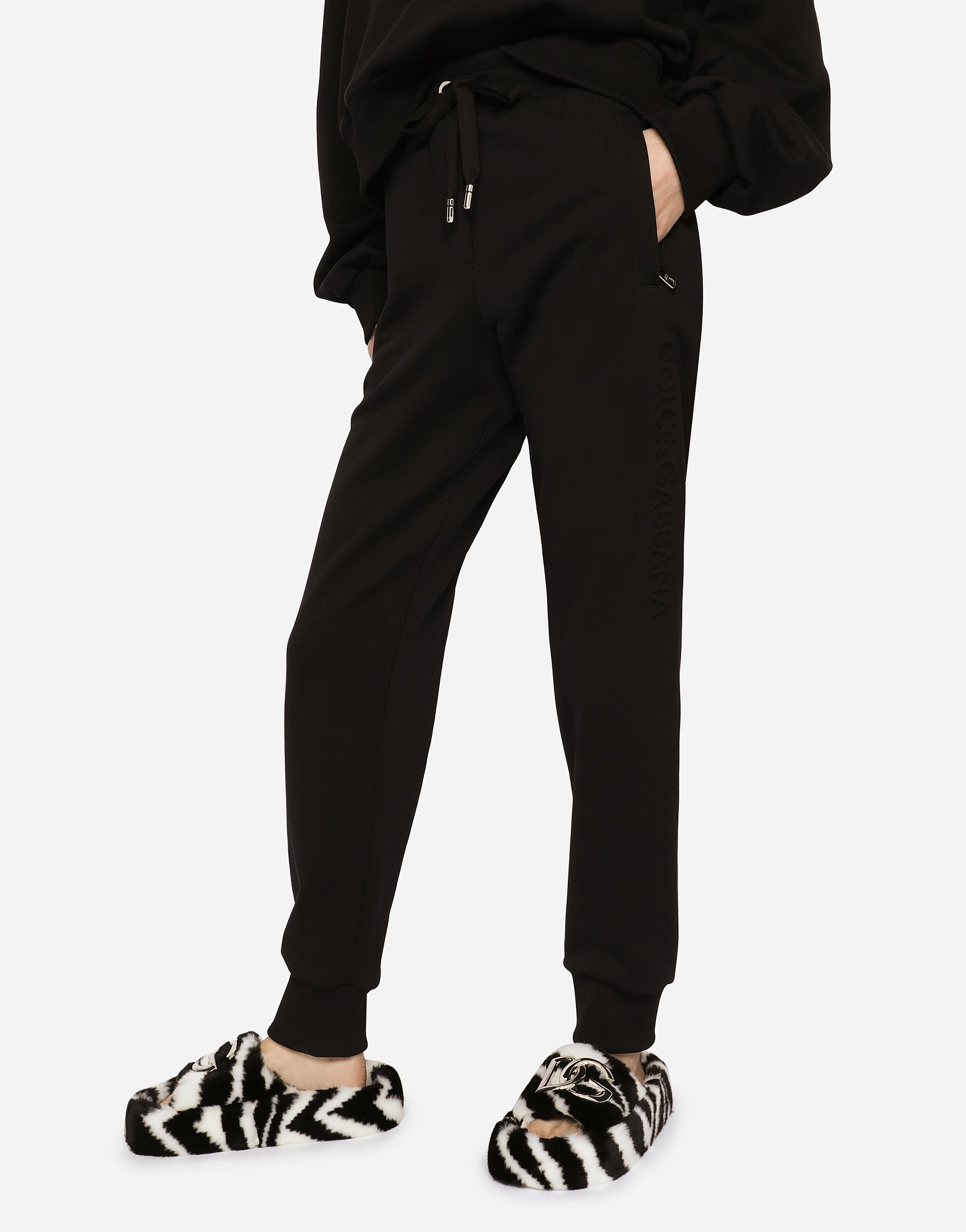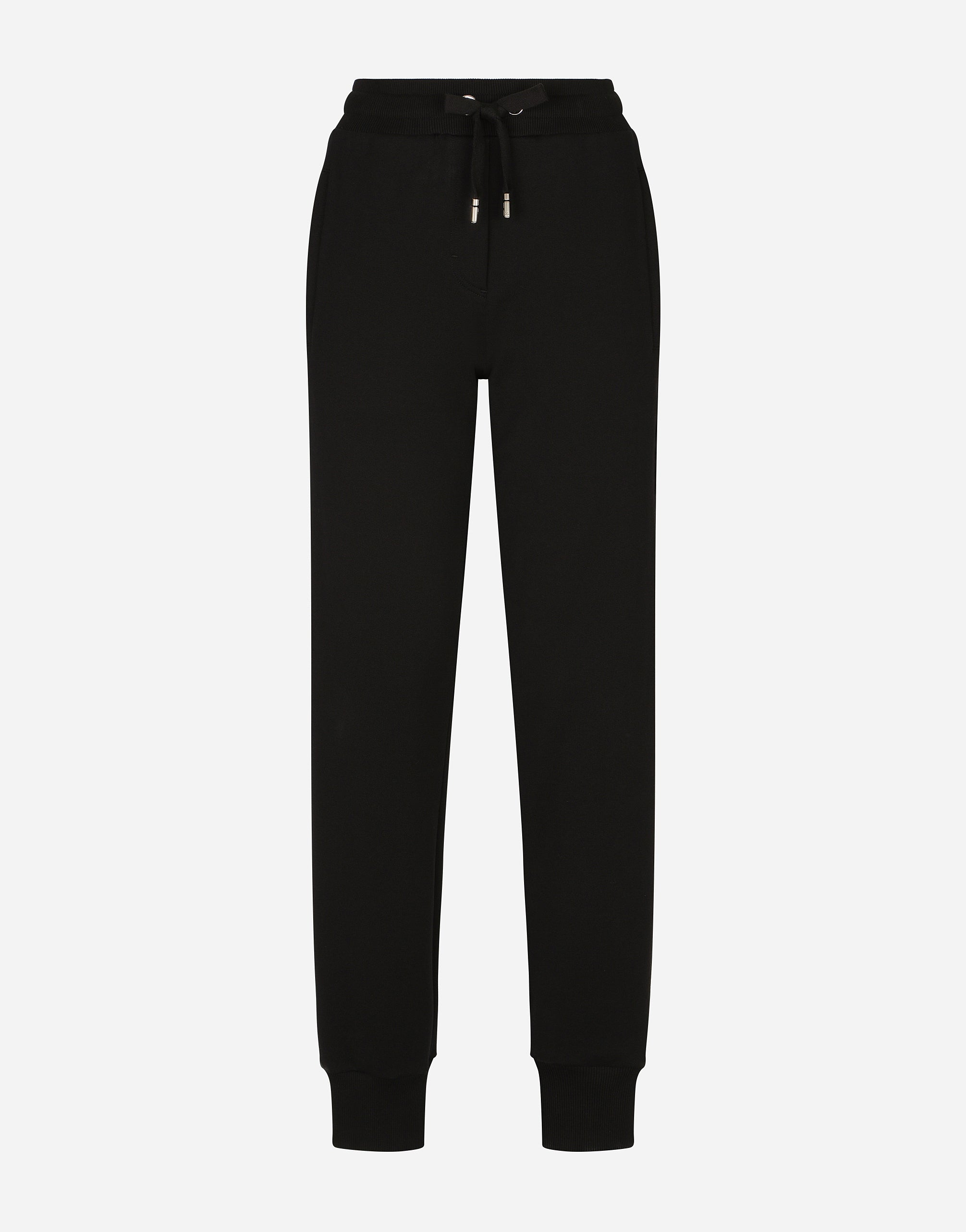 These casual and contemporary black joggers in cotton fleece will be perfect for your sporty-chic looks. • Stretch drawstring waist • Fine-rib waistband and cuffs • Zipped pockets • Inner leg. 77 cm • Hem. 13 cm • The model is 175 cm tall and wears a size IT 40 • Made in Italy