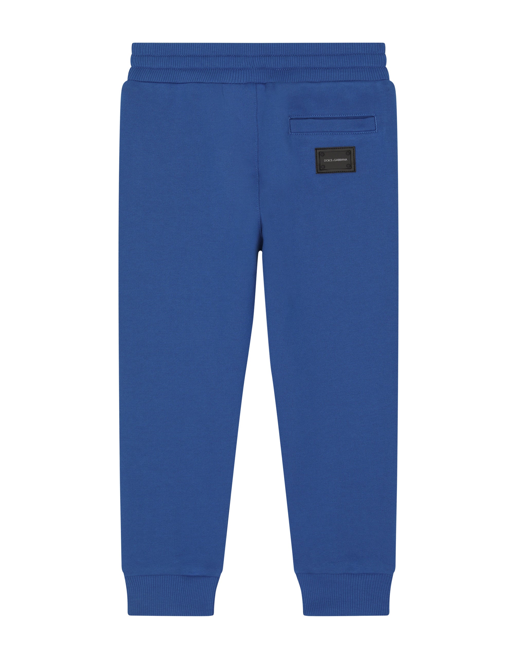 These cotton jersey jogging pants will ensure the utmost comfort for the child who wears them, while the branded plate appliqué, over a rubberized base, on the back adds an unmistakable detail to the piece. • Regular fit • Stretch waistband with drawstring • Stretch knit cuffs • Unlined • Made in Italy