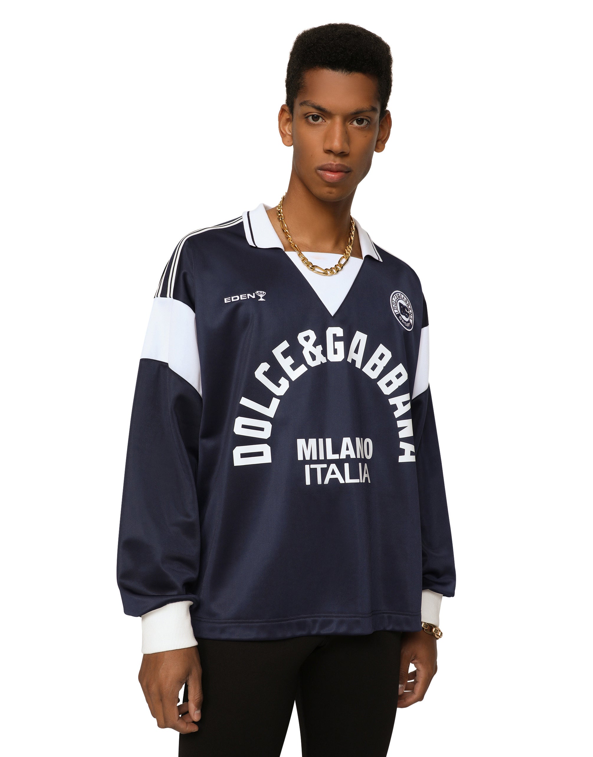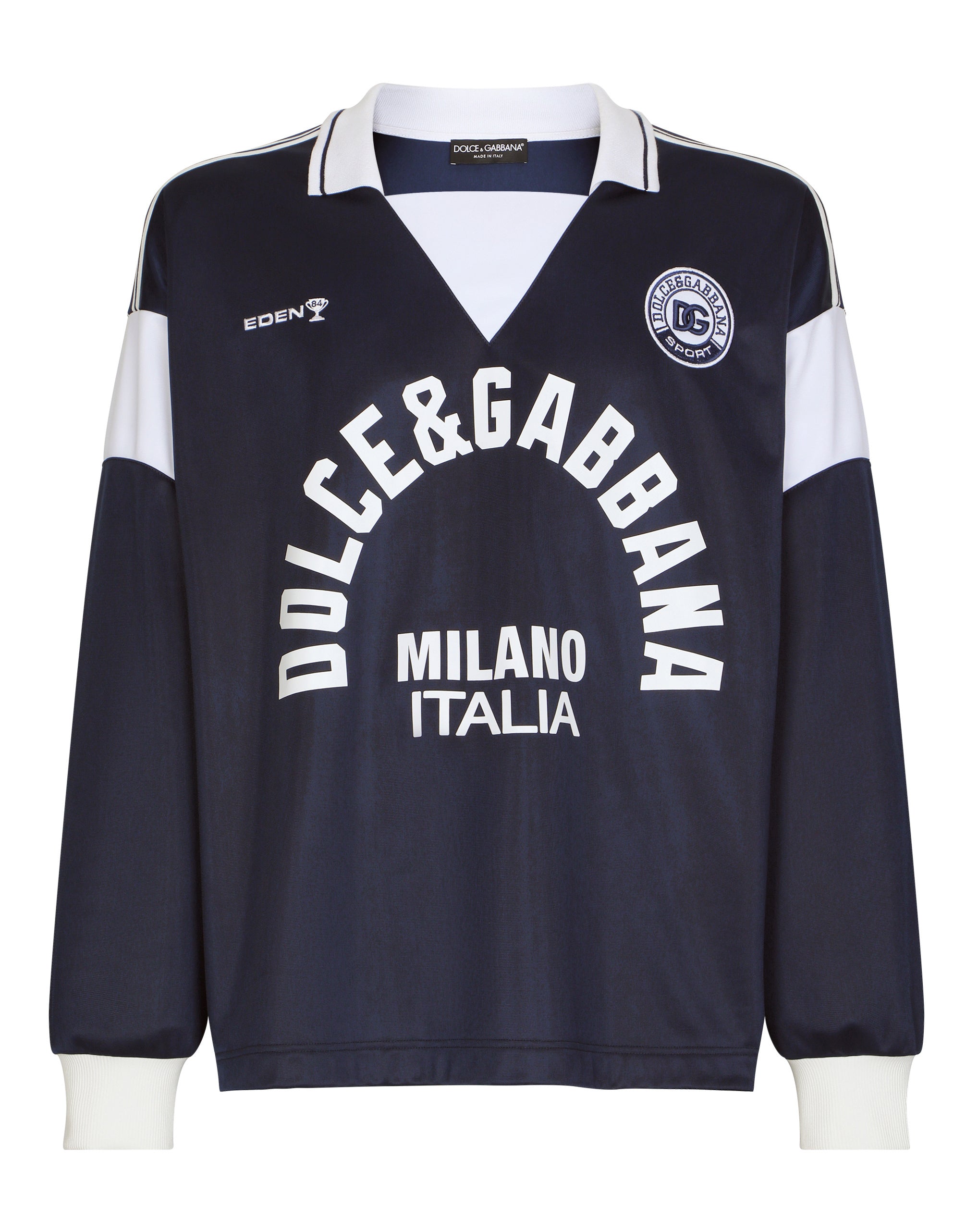 The “Sport” collection is inspired by models from our past, which have been enhanced through new designs, innovative materials and bright colors. Dolce&Gabbana lets us relive the past, yet reinterprets it in a modern way with current and functional sports looks. Cotton high-necked jacket with DG Monogram print and the embroidered DG patch: • Oversize fit • Front zipper fastening • Stretch cuffs and hem • Lined • The piece measures 69 cm from the rear collar seam on a size M • The model is 185 cm tall and wears a size M • Made in Italy