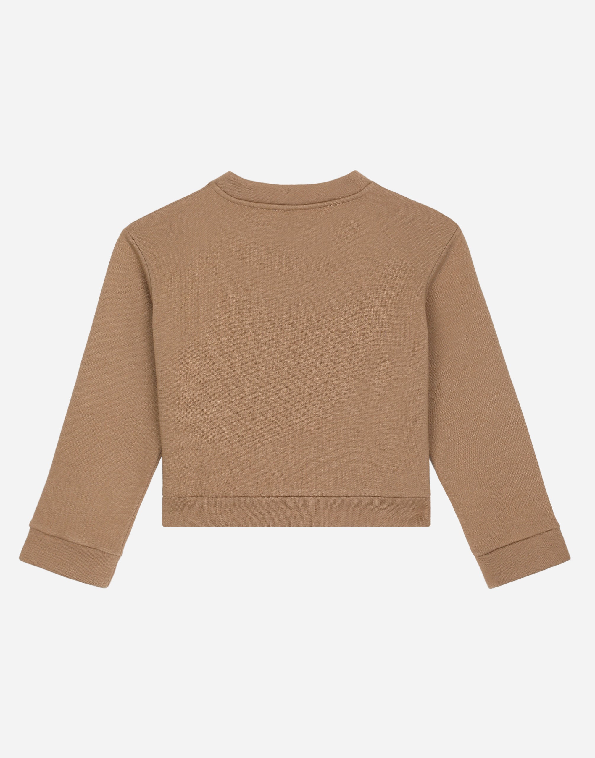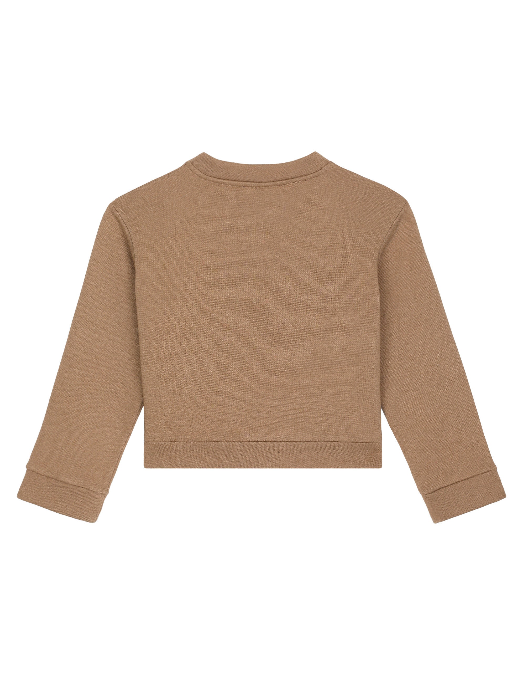 The girl’s Prateria Collection is inspired by the women’s 2001 New Hippy Collection, where the desert and meadows become bohemian and glamorous. Vaguely vintage/grunge looks come made up of volume and special pieces flaunt light printed and solid-color fabric details, smock stitching, corduroy, faux fur and a print distinguished by delicate and joyful multi-colored wildflowers for fun and ironic little girls. Jersey round-neck sweatshirt with “I love denim” embroidery: • Beige • Oversize fit • Round neck • Long sleeves • Stretch knit hem and cuffs • Embroidery • Unlined • The item in the size 6 years measures 43 cm from the shoulder seam • Made in Italy The difference in the print placement that you may find on this product is a feature of Dolce&Gabbana’s “Handmade” pieces. A detail that makes every garment or accessory unique and exclusive.