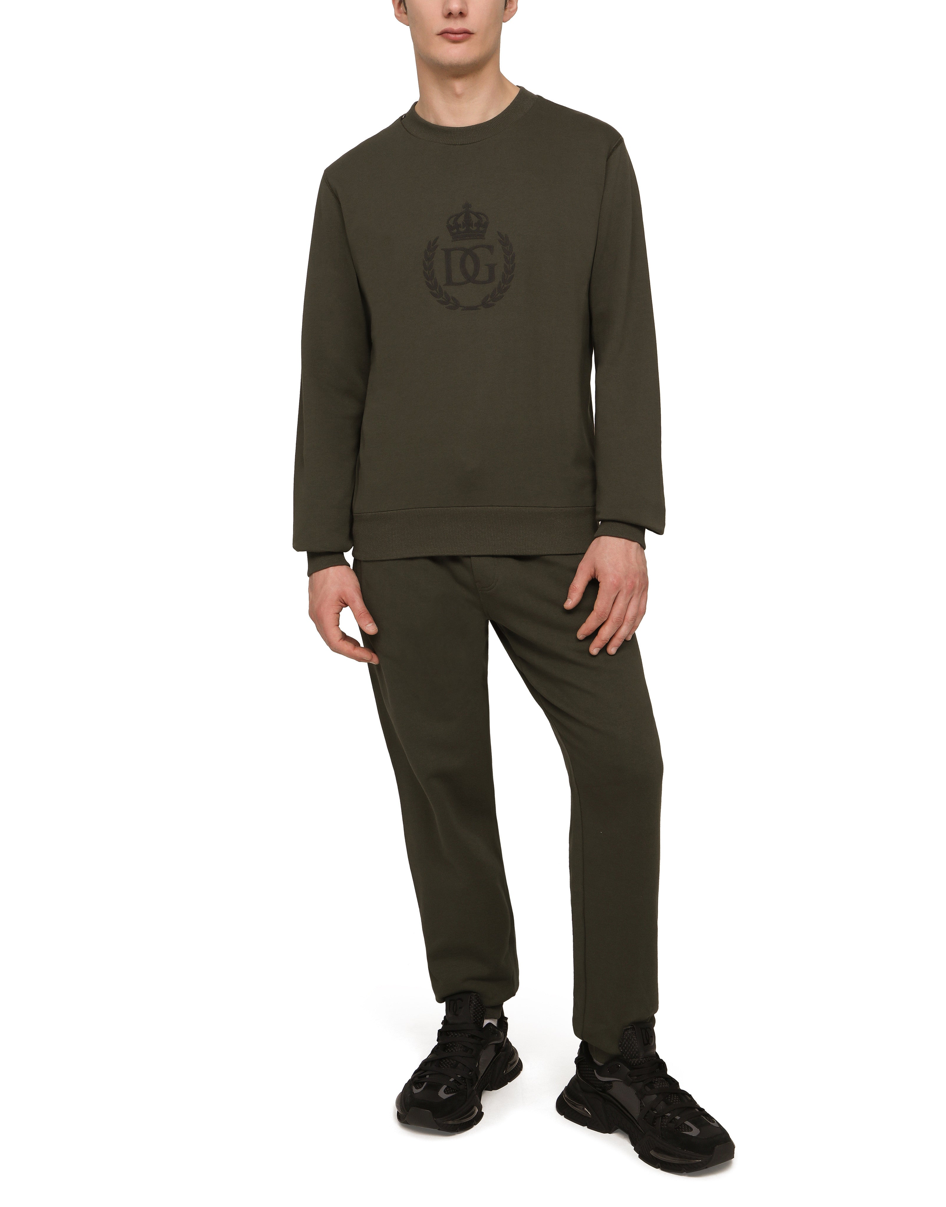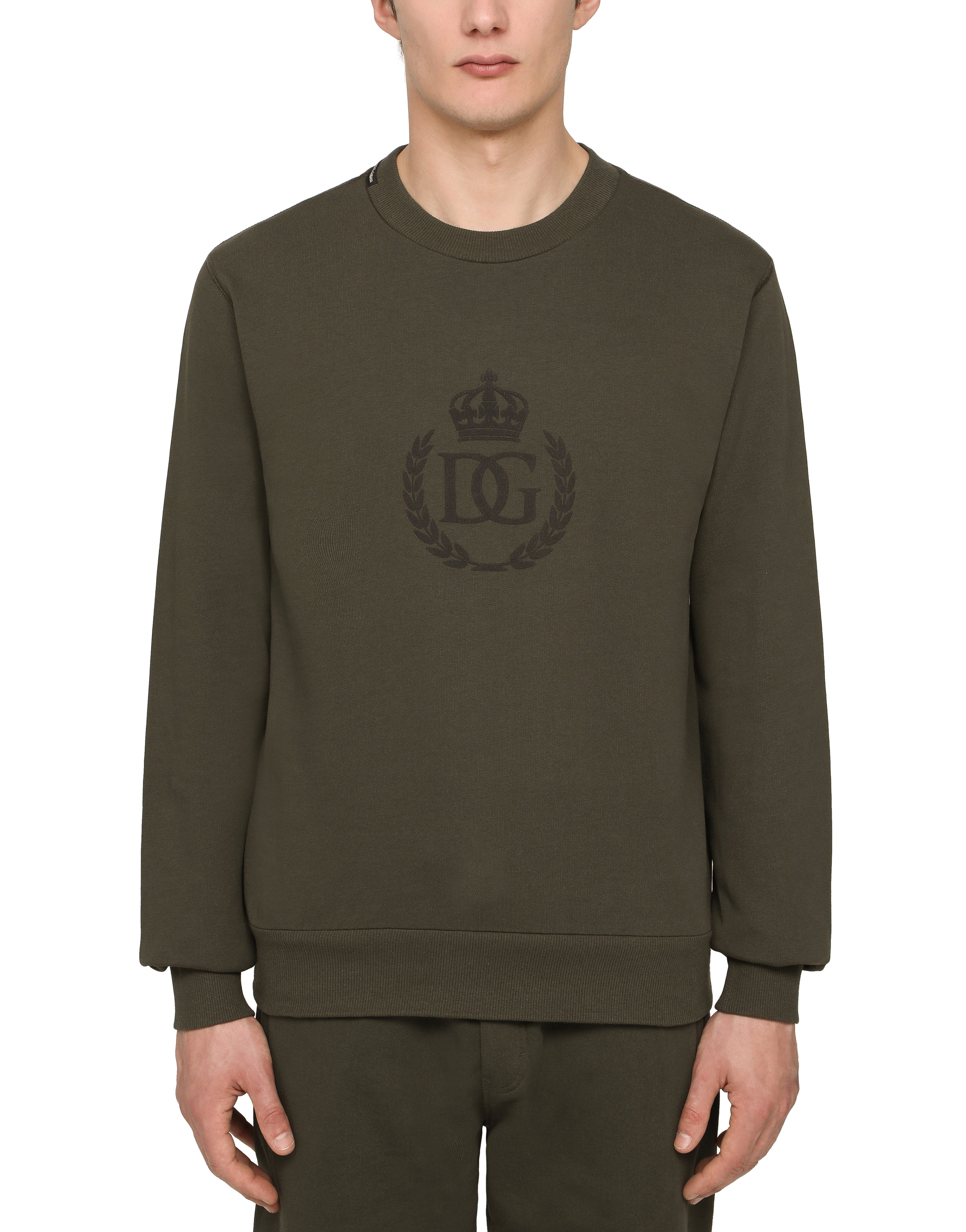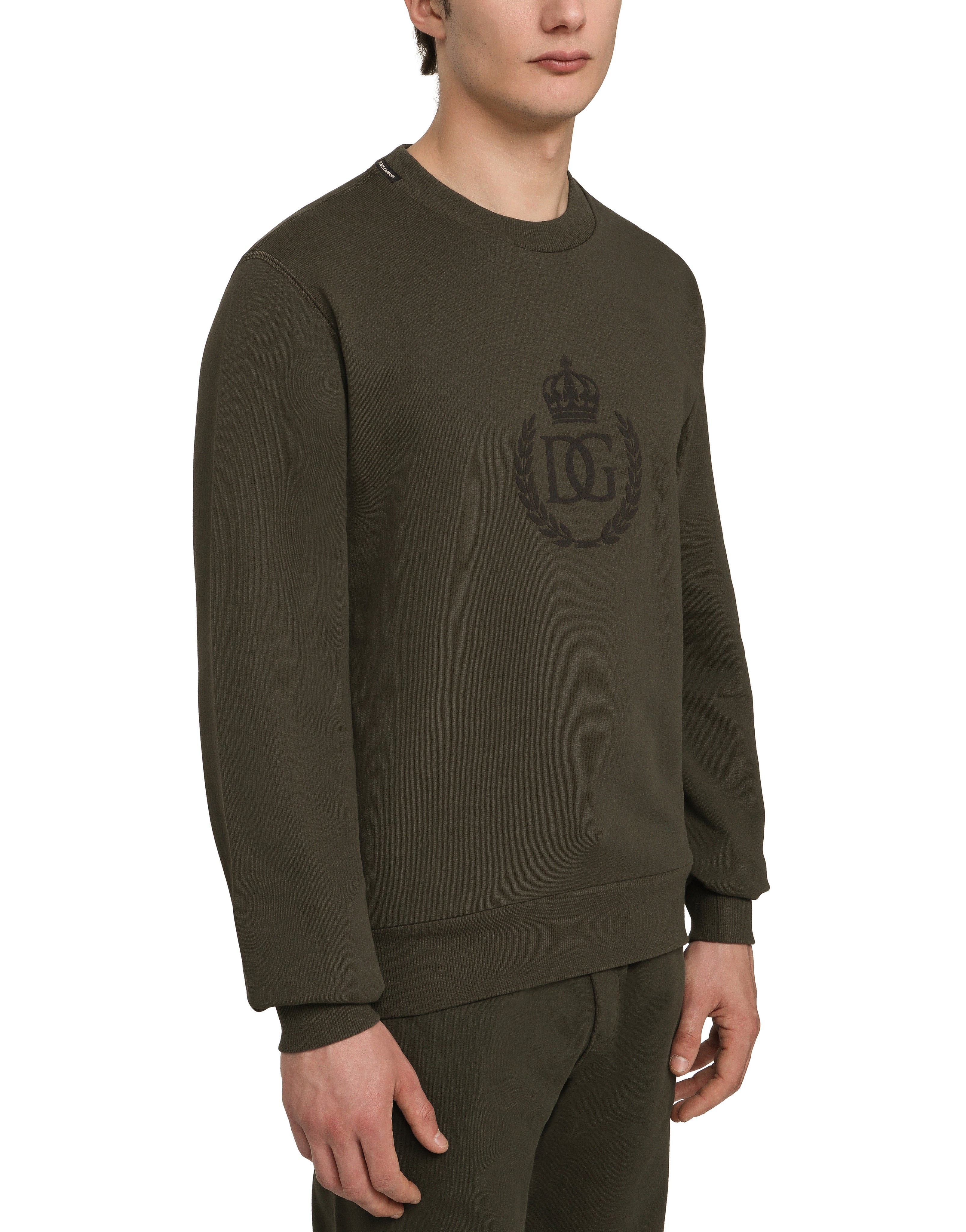 Crew-neck sweatshirt made of cotton jersey with 3D flocked DG logo: • Regular fit • Elastic knit hem, neck and cuffs • Green • The item measures 69 cm from the back neckline on a IT size 48 • The model is 185 cm tall and is wearing an IT size 48 • Made in Italy External composition: 100% Cotton