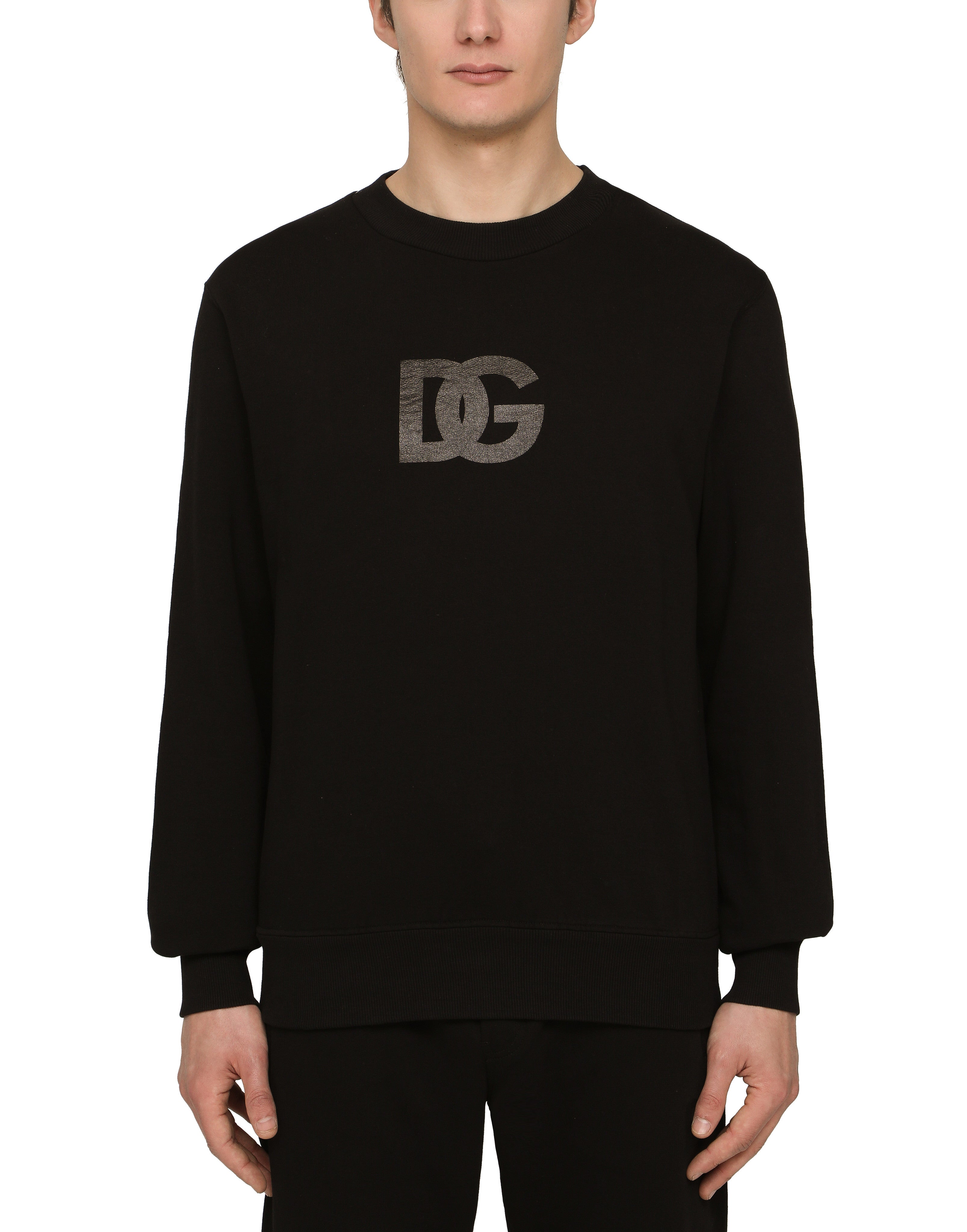 Crew-neck sweatshirt made of cotton jersey with DG logo print: • Regular fit • Elastic knit hem, neck and cuffs • Black • The item measures 69 cm from the back neckline on a IT size 48 • The model is 185 cm tall and is wearing an IT size 48 • Made in Italy External composition: 100% Cotton