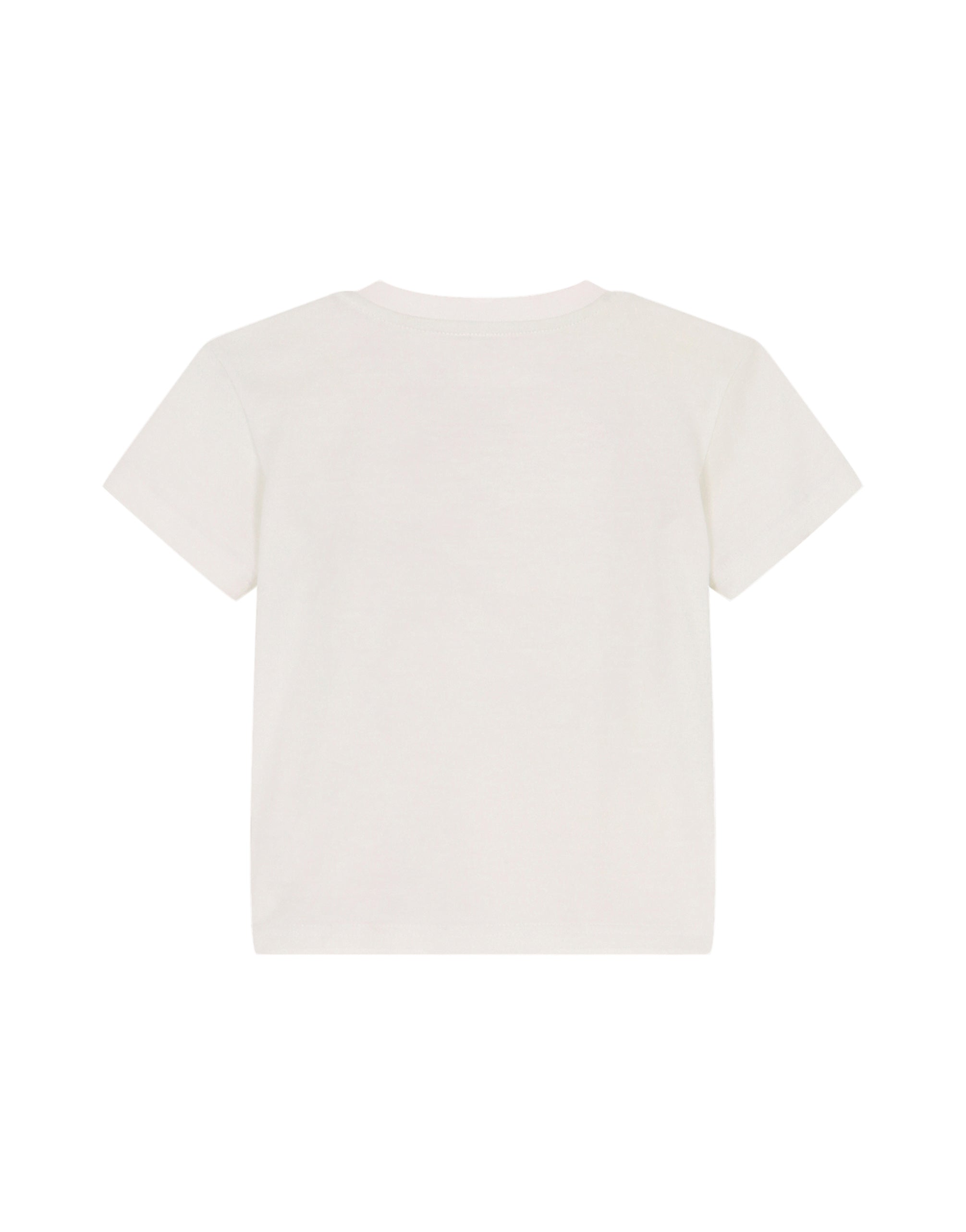 Vanilla yellow, aniseed light blue, mint and powdery pink - the colors that all little girls love to draw with - make up the Power Pastel color palette. The pastel hues and the camellia print blend to create a romantic and delicate feel. This soft cotton jersey T-shirt from Dolce&Gabbana is sure to add a sweet touch to all newborn’s wardrobes. • Regular fit • Round neck • Short sleeves • Organza flower appliqués • Unlined • Small concealed press-stud fastenings on the shoulder • The item in the size 6/9 months measures 31 cm - 12.2 inches from the shoulder seam • Made in Italy