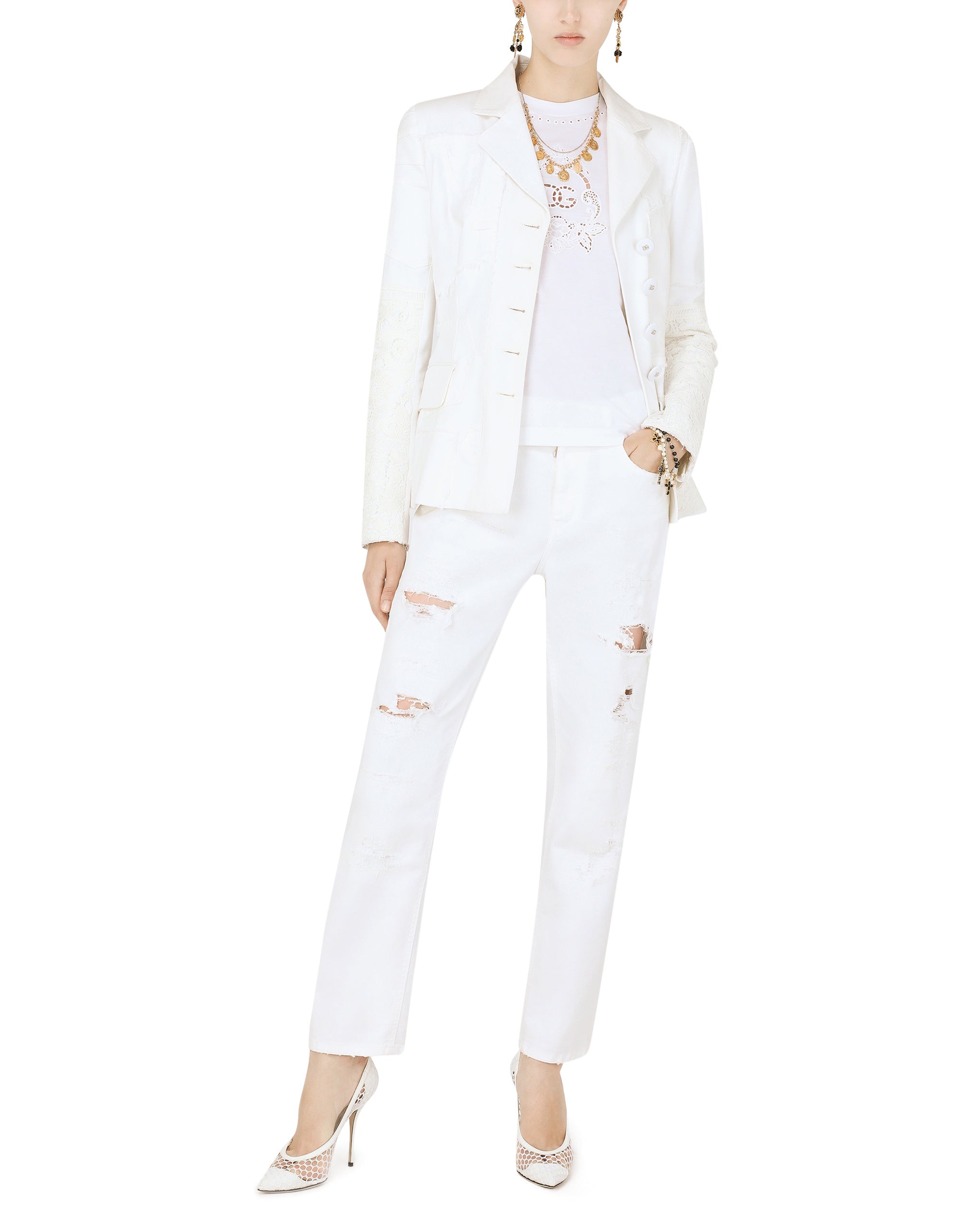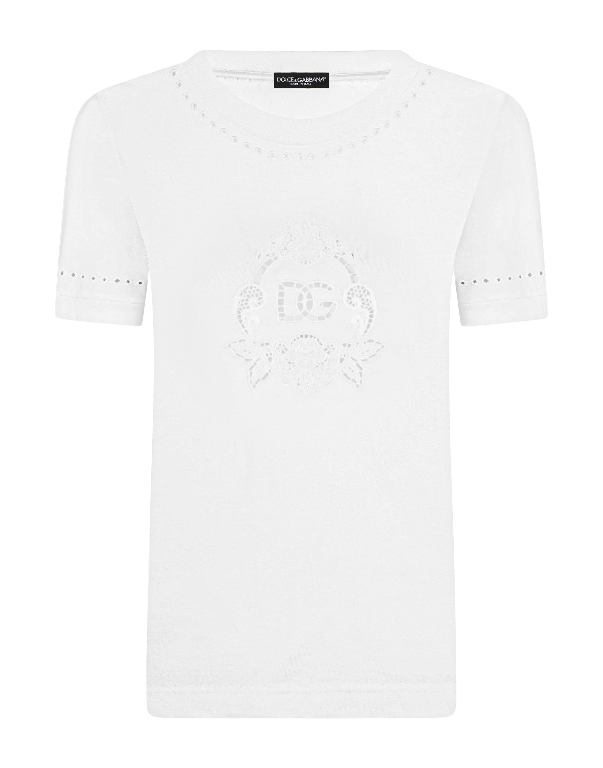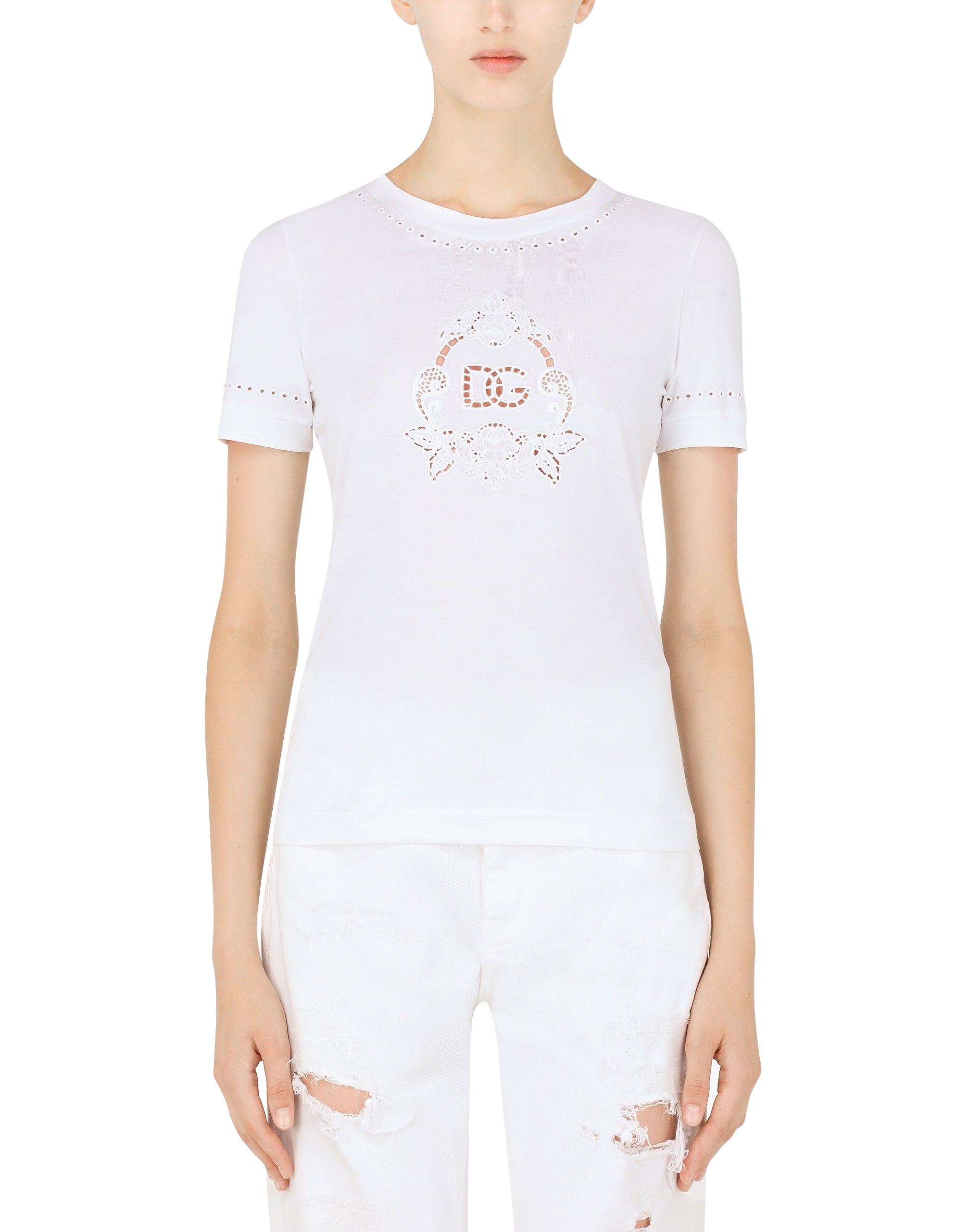 The spirit and flavor of the Tradizione collection is inspired by manufacturing and craftsmanship that are worthy of being recounted to take history and culture to the world. Dolce&Gabbana is adding some romance to the minimal style of this T-shirt by embellishing it with a cut-out detail. Coming in white cotton jersey, it features a fitted shape to offer feminine and contemporary looks. • Round neck • Short sleeves • Form fitting • The piece measures 60.5 cm - 23.8 inches from the rear collar seam on a size IT 40 • The model is 175 cm - 68.9 inches tall and wears a size IT 40 • Made in Italy