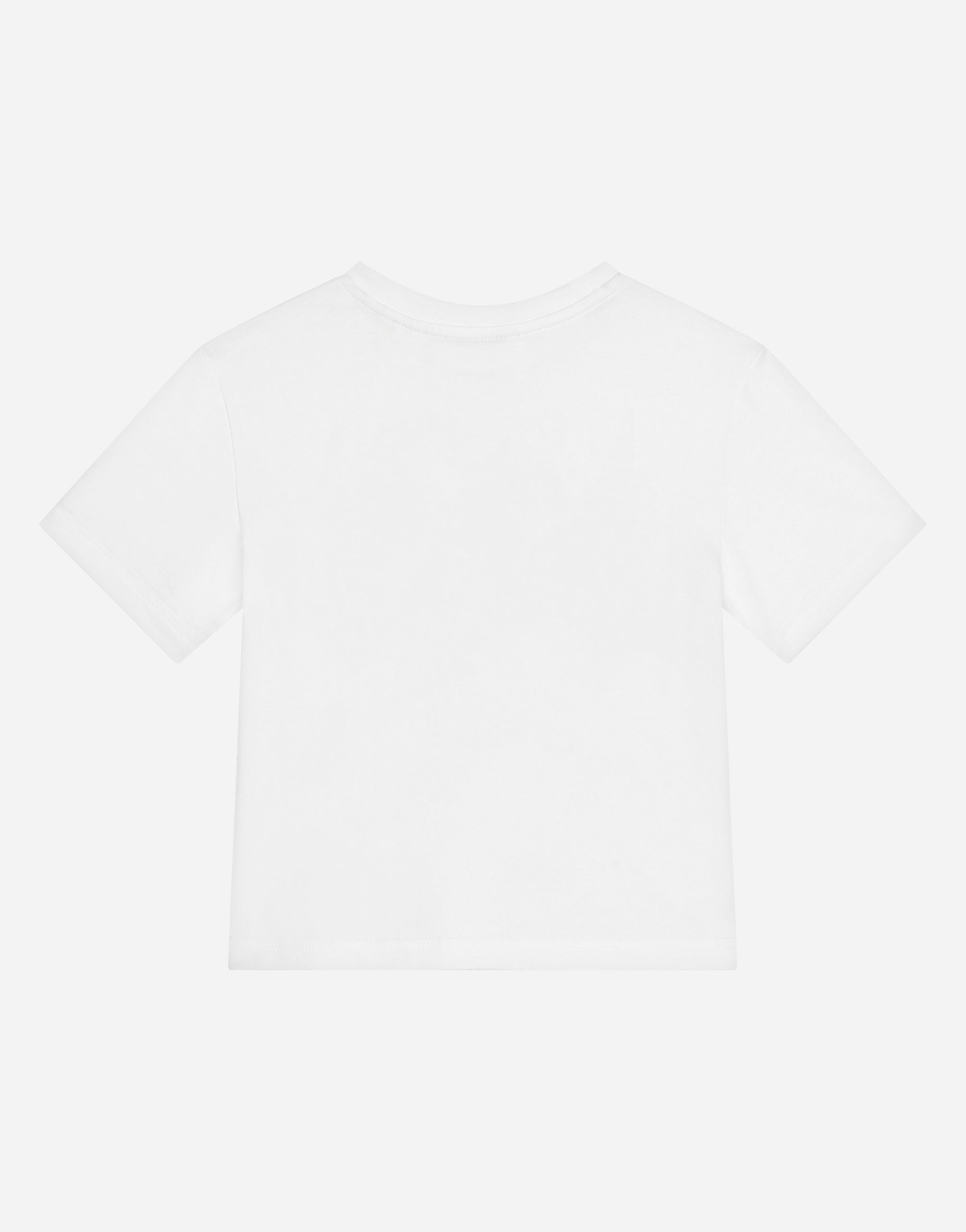 With the Flowers line, Dolce&Gabbana is inventing a winter floral garden, where the undisputed stars are the iconic prints that have been given a contemporary edge. Jersey is embellished by flowers for an exaggerated, fun and utterly unique winter. This jersey T-shirt with DG and flower print is perfect for every occasion. • Oversize fit • Round neck • DG logo print on the front • Short sleeves • The item in the size 3 years measures 39 cm from the shoulder seam • Made in Italy