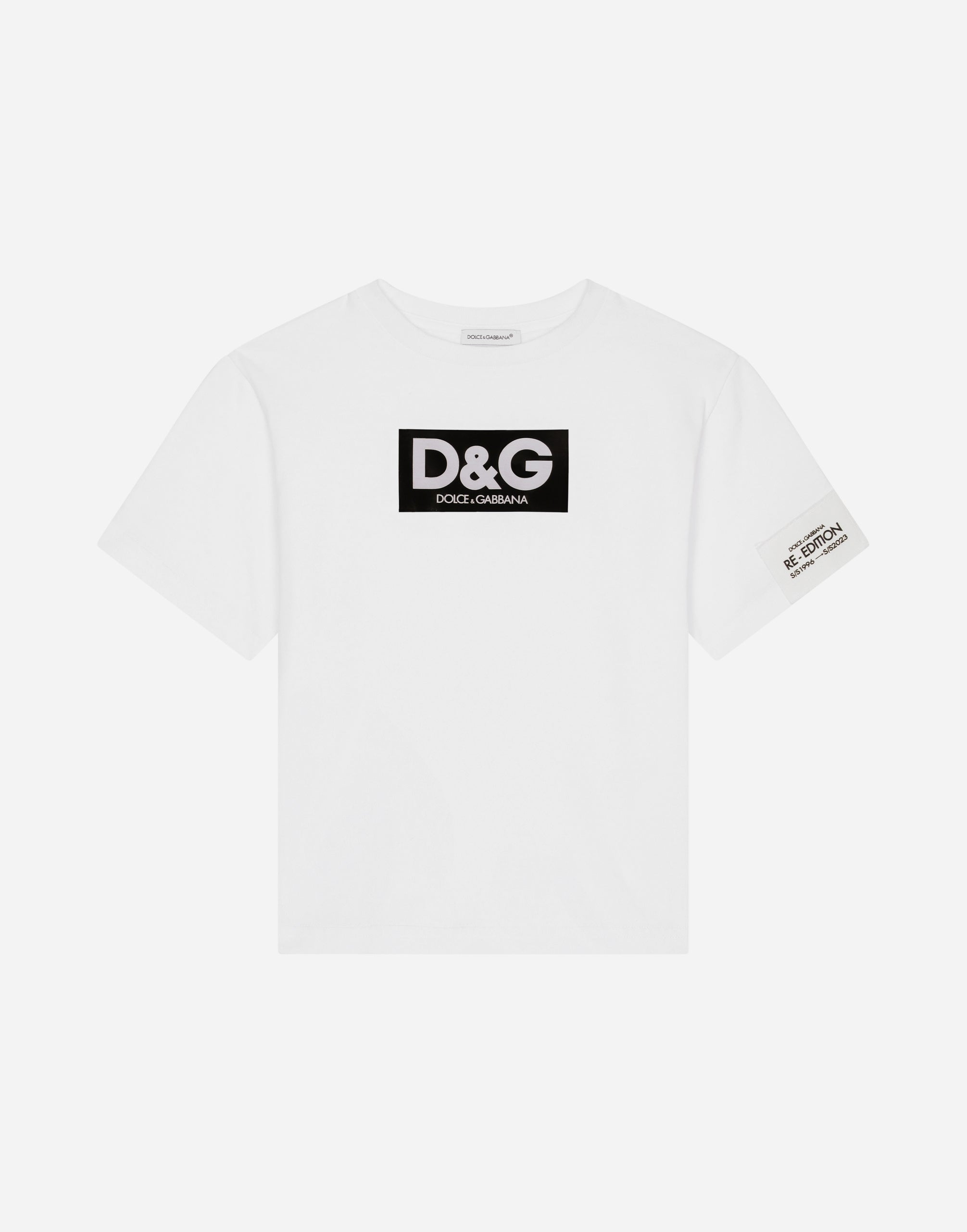 For the Kids Boy Collection, Dolce&Gabbana is drawing inspiration from the Re-Edition fashion show. An evocative journey back to the brand’s origins, where the past and present meet to give life to an innovative concept and interpretation of our archives. A contemporary vision that will allow the younger generations to discover a past rich in creative ideas and personal interpretations. Cotton jersey T-shirt with heat-sealed logo print and the Re-Edition label: • Oversize fit • Round neck • Short sleeves • The item in the size 3 years measures 43.5 cm from the shoulder seam • Made in Italy The difference in the print placement that you may find on this product is a feature of Dolce&Gabbana’s “Handmade” pieces. A detail that makes every garment or accessory unique and exclusive.