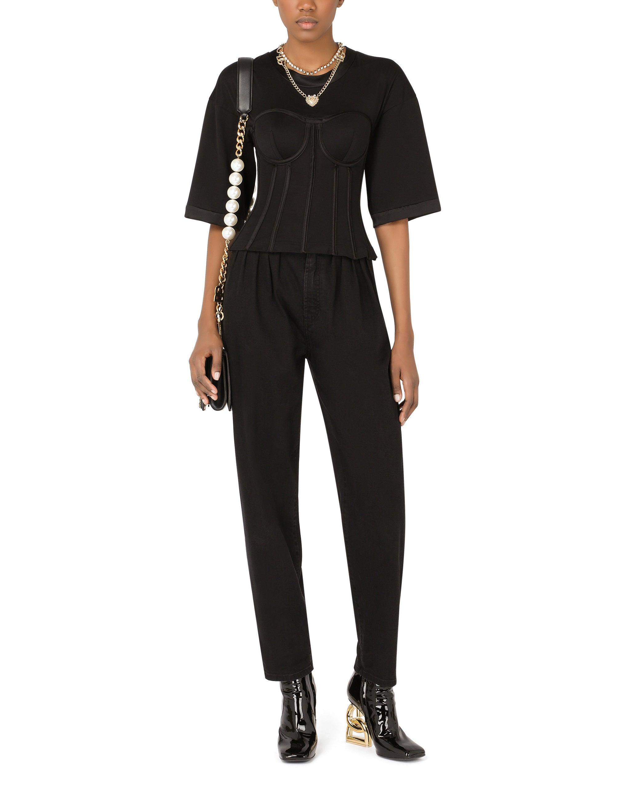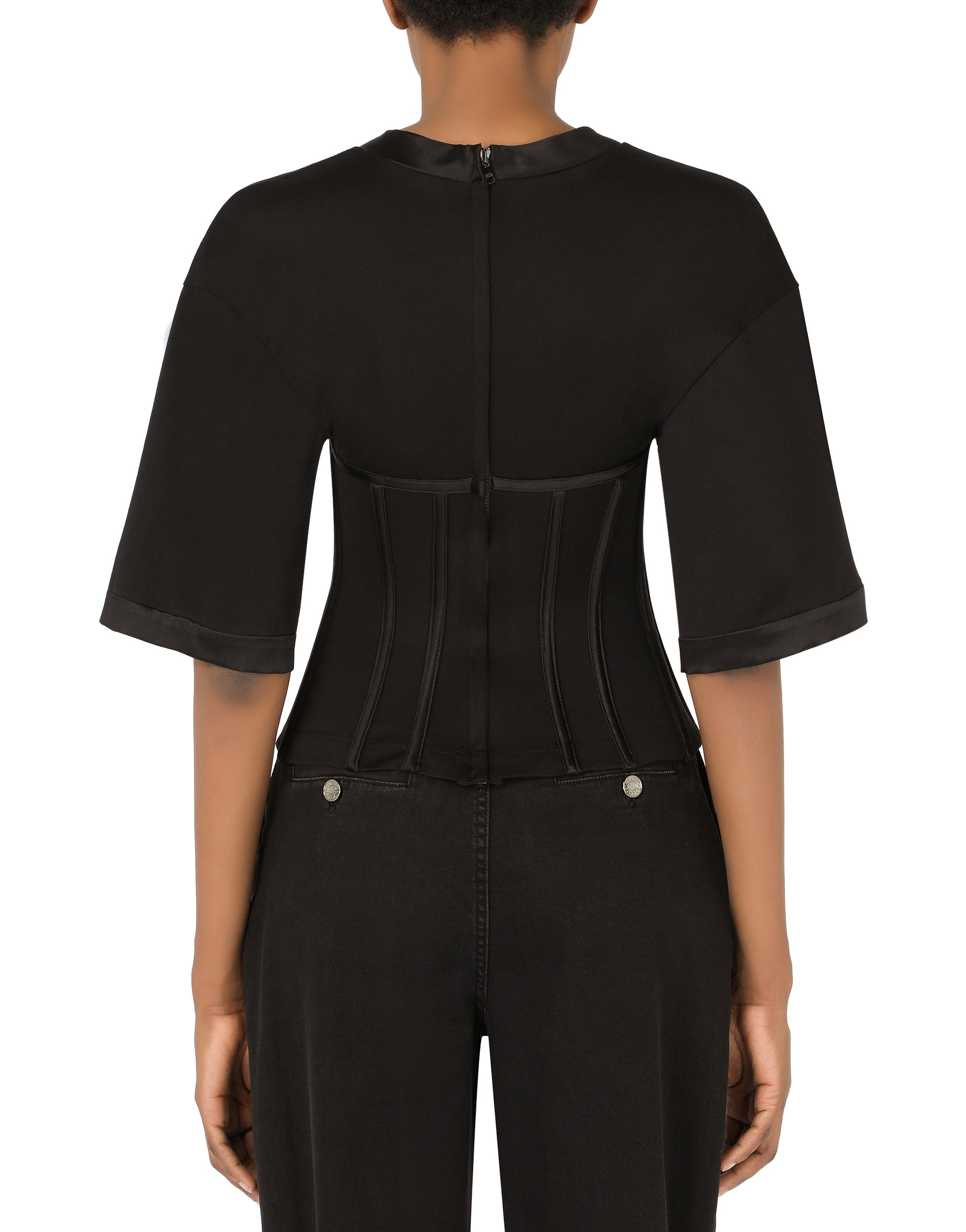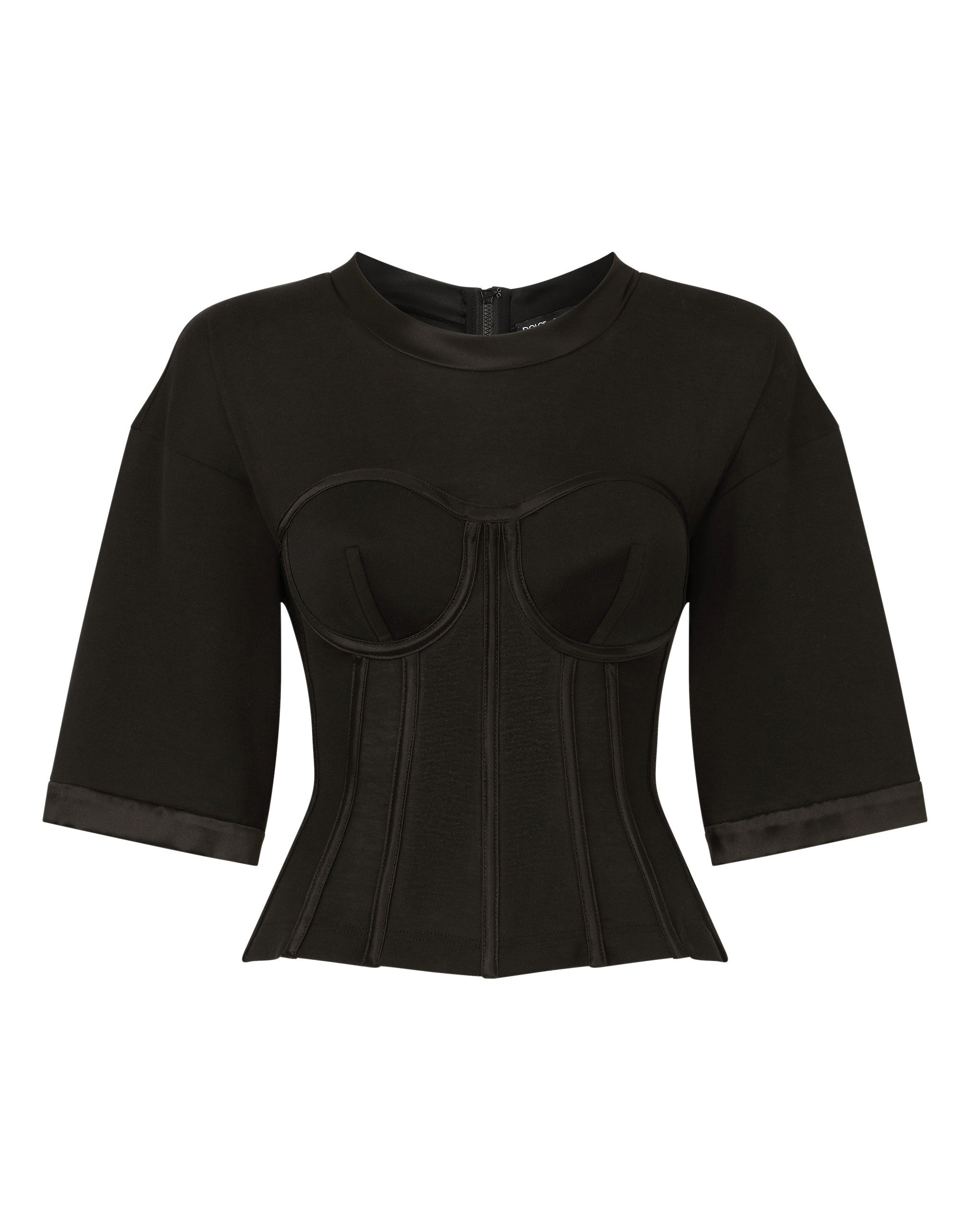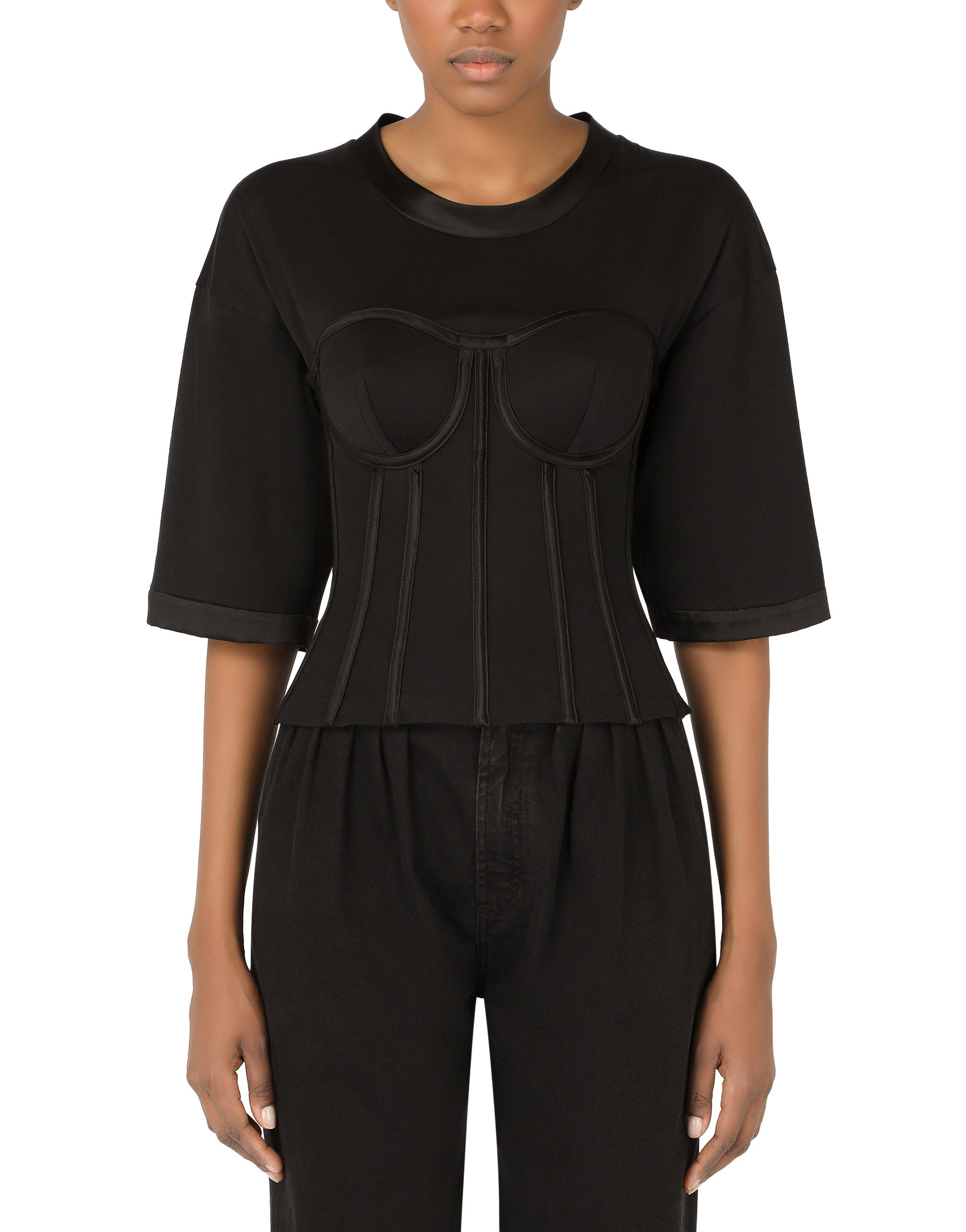 With its constant pursuit of new contrasts, Dolce&Gabbana has beautifully mixed its signature aesthetic with a contemporary attitude in this soft jersey T-shirt with bustier details, thereby blazing a new trail for self-expression and communication through uniqueness. • Round neck • Short sleeves • Form fitting • The piece measures 54 cm - 21.3 inches from the rear collar seam on a size IT 40 • The model is 175 cm - 68.9 inches tall and wears a size IT 40 • Made in Italy