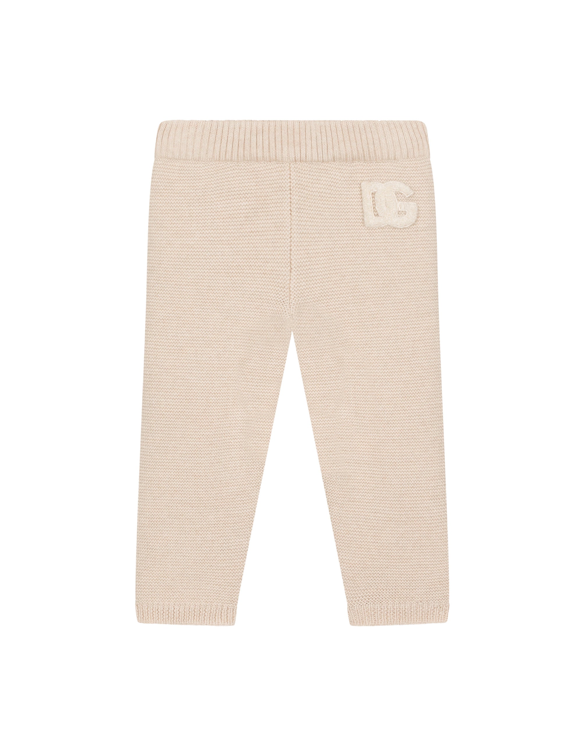 Dedicated to special occasions and the perfect gift idea, the DG Loves Newborn capsule collection dresses little ones in the elegance of total white and the softness of delicate pastel hues. Fine knitwear, the exquisiteness of duchesse silk and the comfort of jersey give life to stylish garments with sophisticated details, embellished by DG logo embroidery or exclusive prints. These soft plain knit pants feature the DG logo patch. • Regular fit • 7-gauge knit • Embroidered DG logo patch on the front • Stretch knit waistband • Unlined • The item in the size 6/9 months measures 36 cm in length • Made in Italy