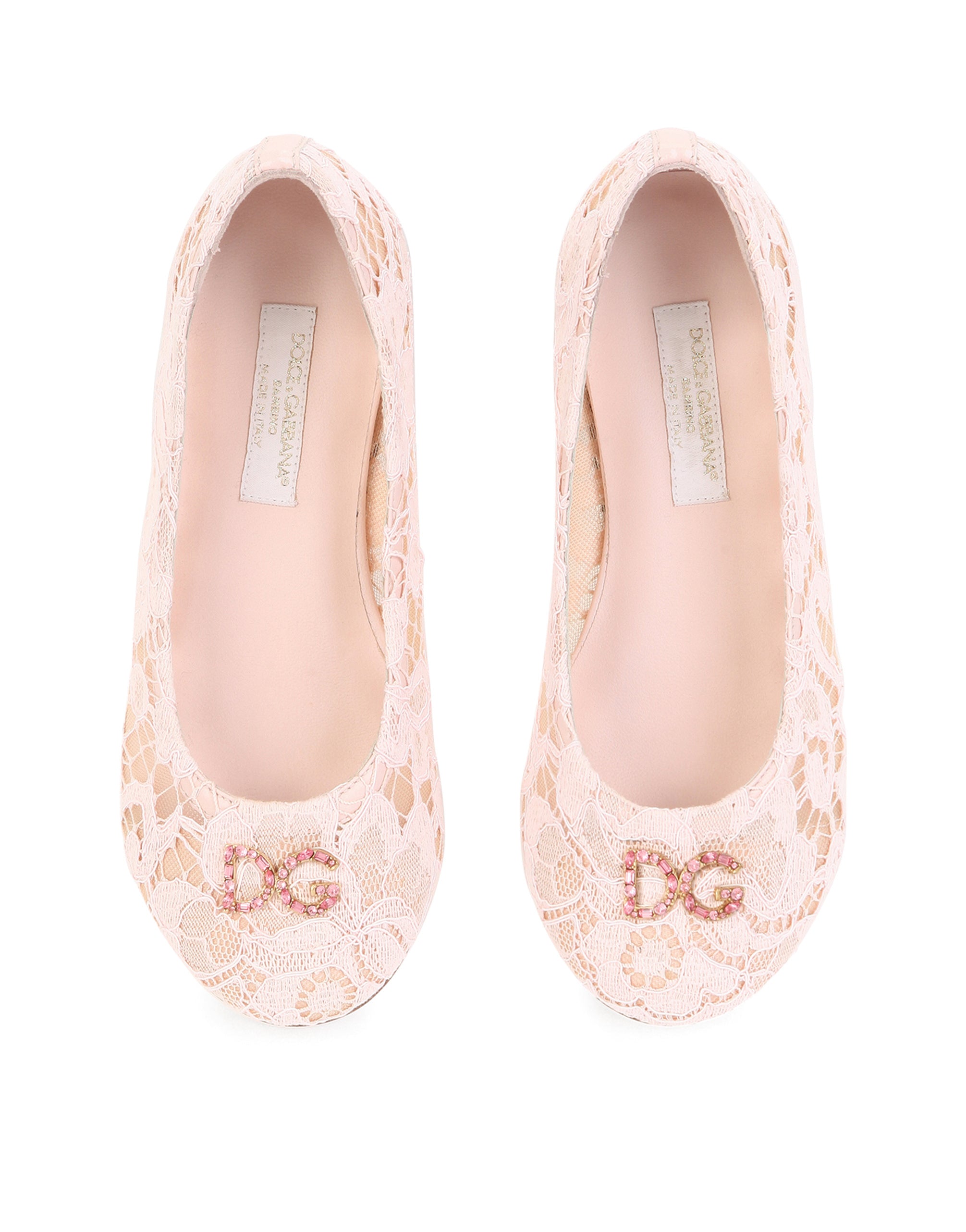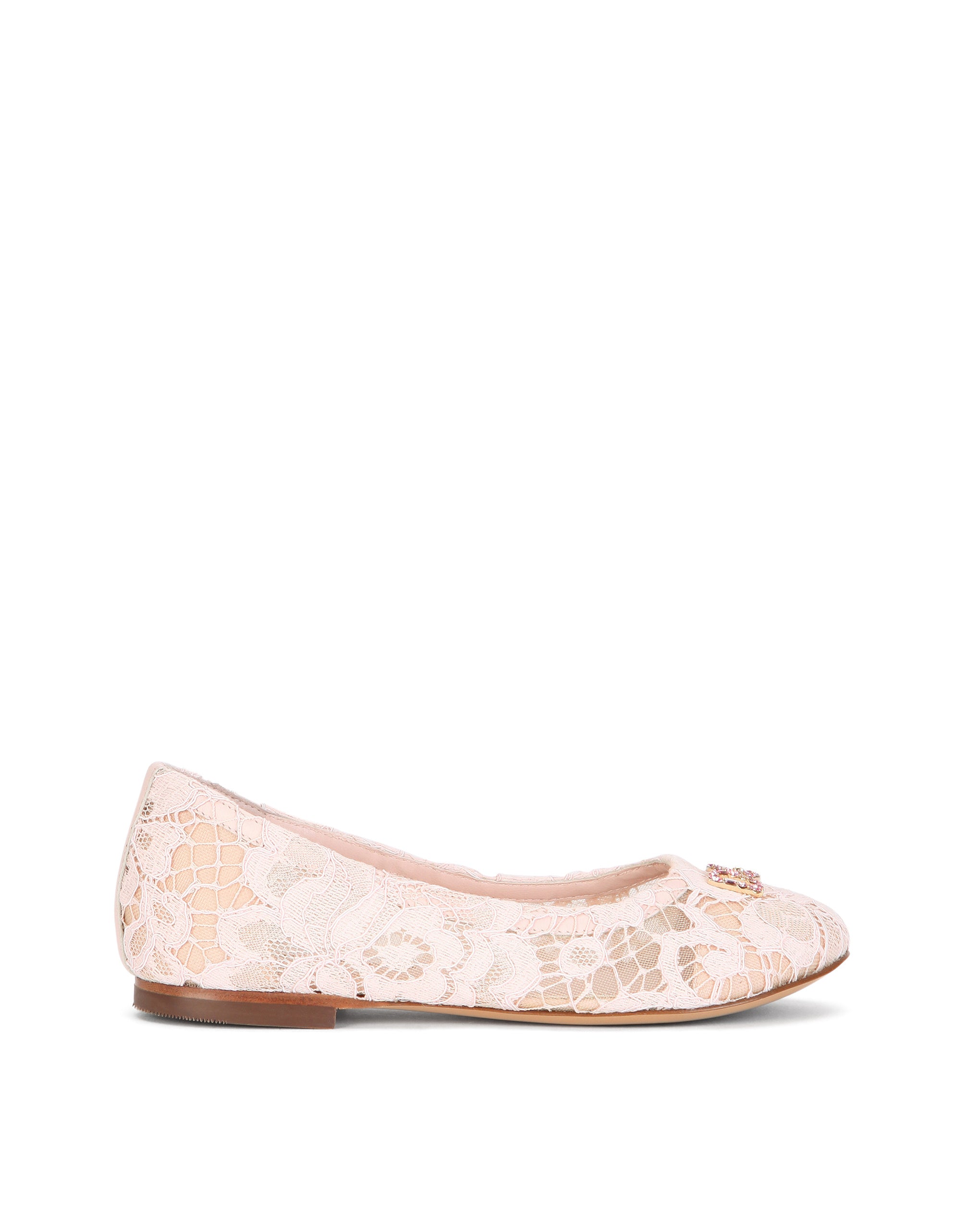 Vanilla yellow, aniseed light blue, mint and powdery pink - the colors that all little girls love to draw with - make up the Power Pastel color palette. The pastel hues and the camellia print blend to create a romantic and delicate feel. These lace ballet flats feature rhinestone-embellished lettering, a sophisticated detail that will be a hit with all little girls. • Lace upper • Partially lined on the toe and heel • Nappa leather insole with branded label • Leather sole with rubber insert • Made in Italy