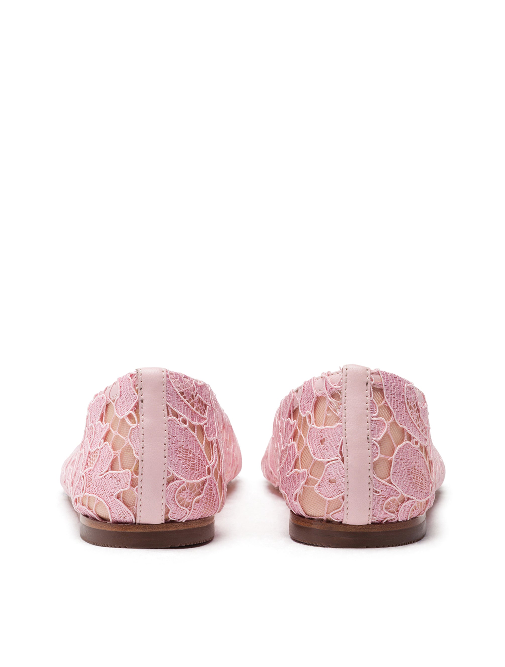 Vanilla yellow, aniseed light blue, mint and powdery pink - the colors that all little girls love to draw with - make up the Power Pastel color palette. The pastel hues and the camellia print blend to create a romantic and delicate feel. These lace ballet flats feature rhinestone-embellished lettering, a sophisticated detail that will be a hit with all little girls. • Lace upper • Partially lined on the toe and heel • Nappa leather insole with branded label • Leather sole with rubber insert • Made in Italy