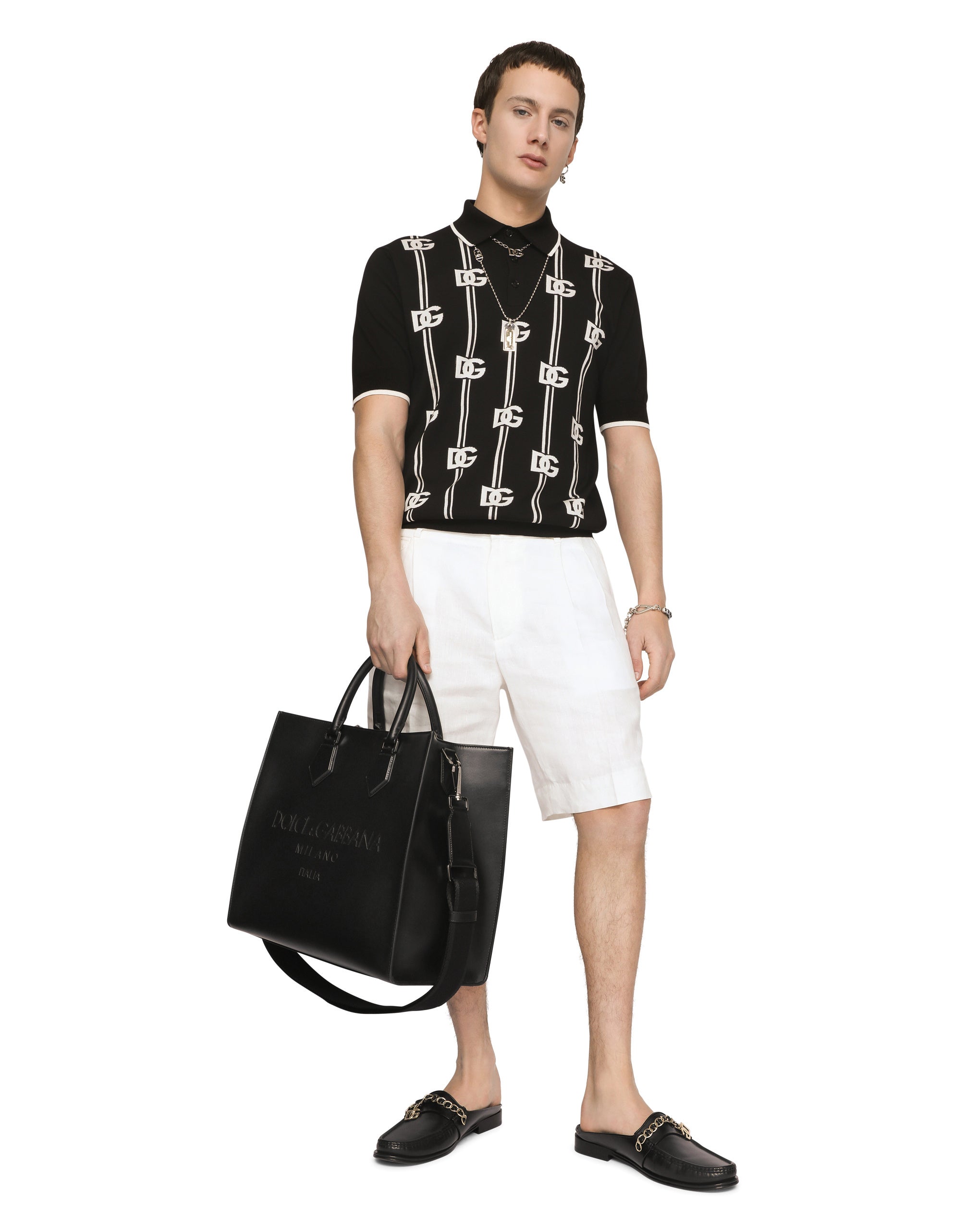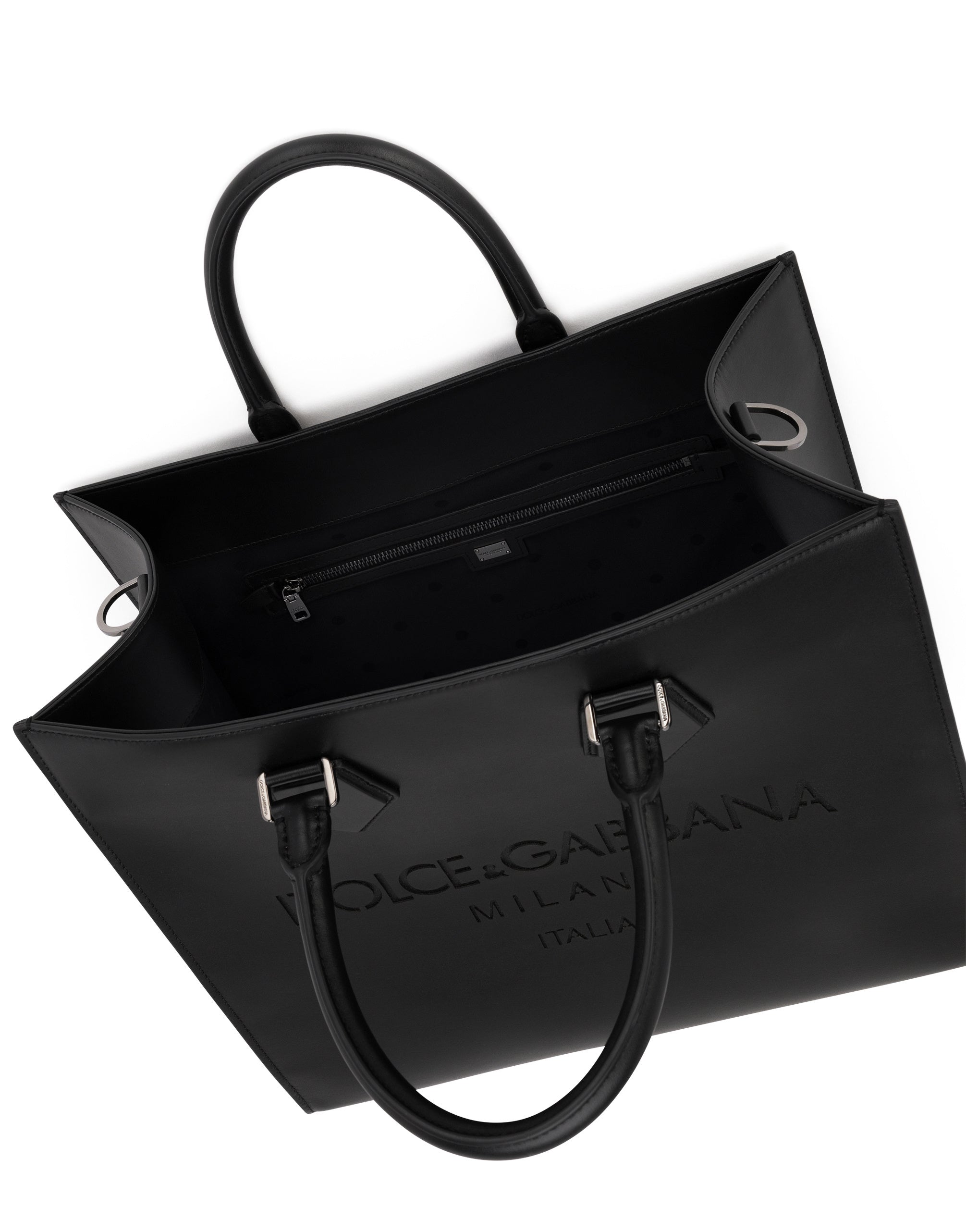 This calfskin Edge shopper features the laser-etched Dolce&Gabbana Milano logo. Practical and spacious, it features top handles and a shoulder strap so it can be carried on the shoulder. • Central magnetic fastening • Calfskin trims • Calfskin top handles and adjustable and detachable tape strap with calfskin embellishment • Printed nylon lining featuring a zipped pocket and two compartments • Item comes with a branded dust bag • Measurements. 41 x 37 x 18 cm • Made in Italy