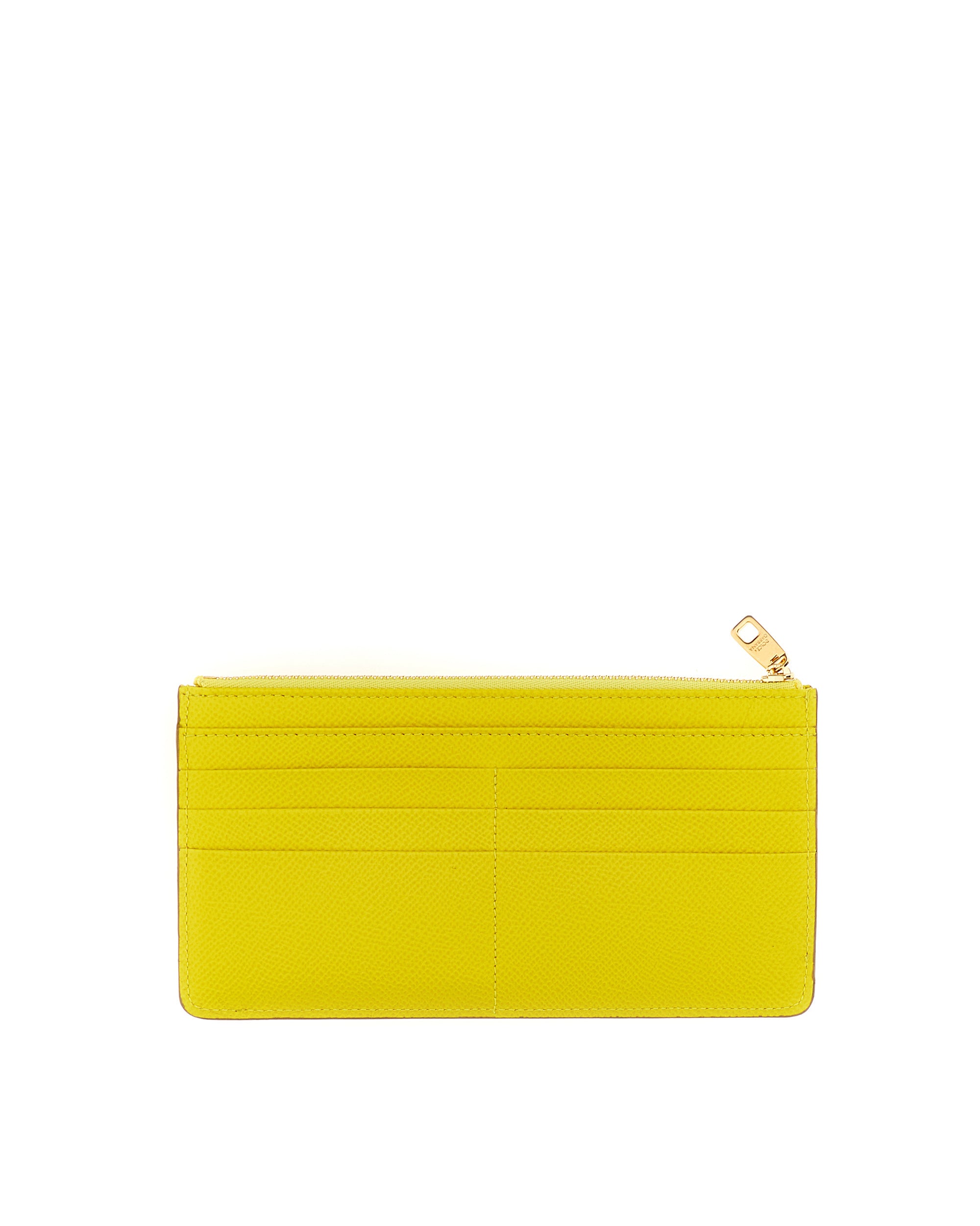 This zipped card holder in Dauphine calfskin comes with a practical bellow compartment with top zipper so it can also be used as a coin pocket. Branded tag featuring two metal plating finishes. • Six card slots and two flat pockets • Flat front pocket • Zipped coin pocket on top with branded slider • Measurements. 9.7 x 18.5 x 1.5 cm - 3.8 x 7.3 x 0.6 inches • Made in Italy