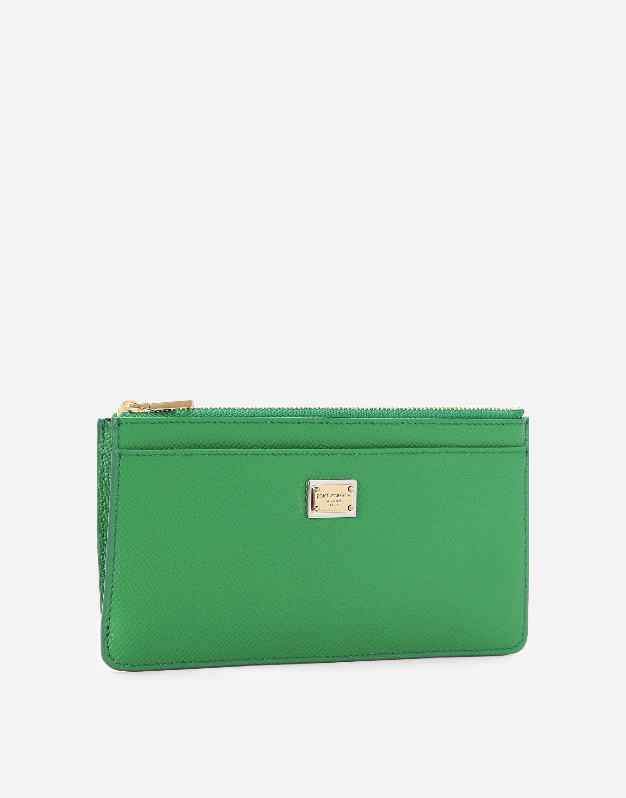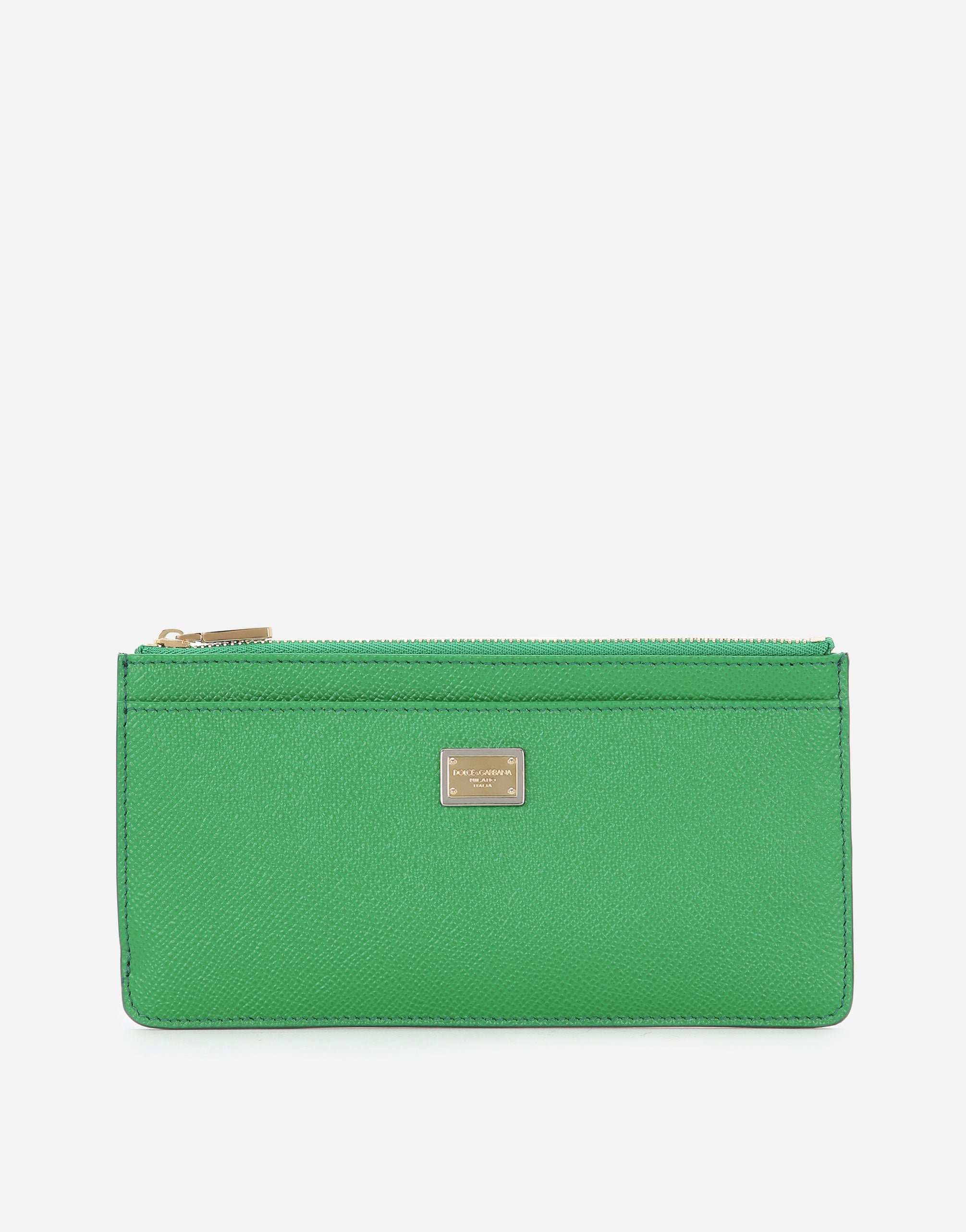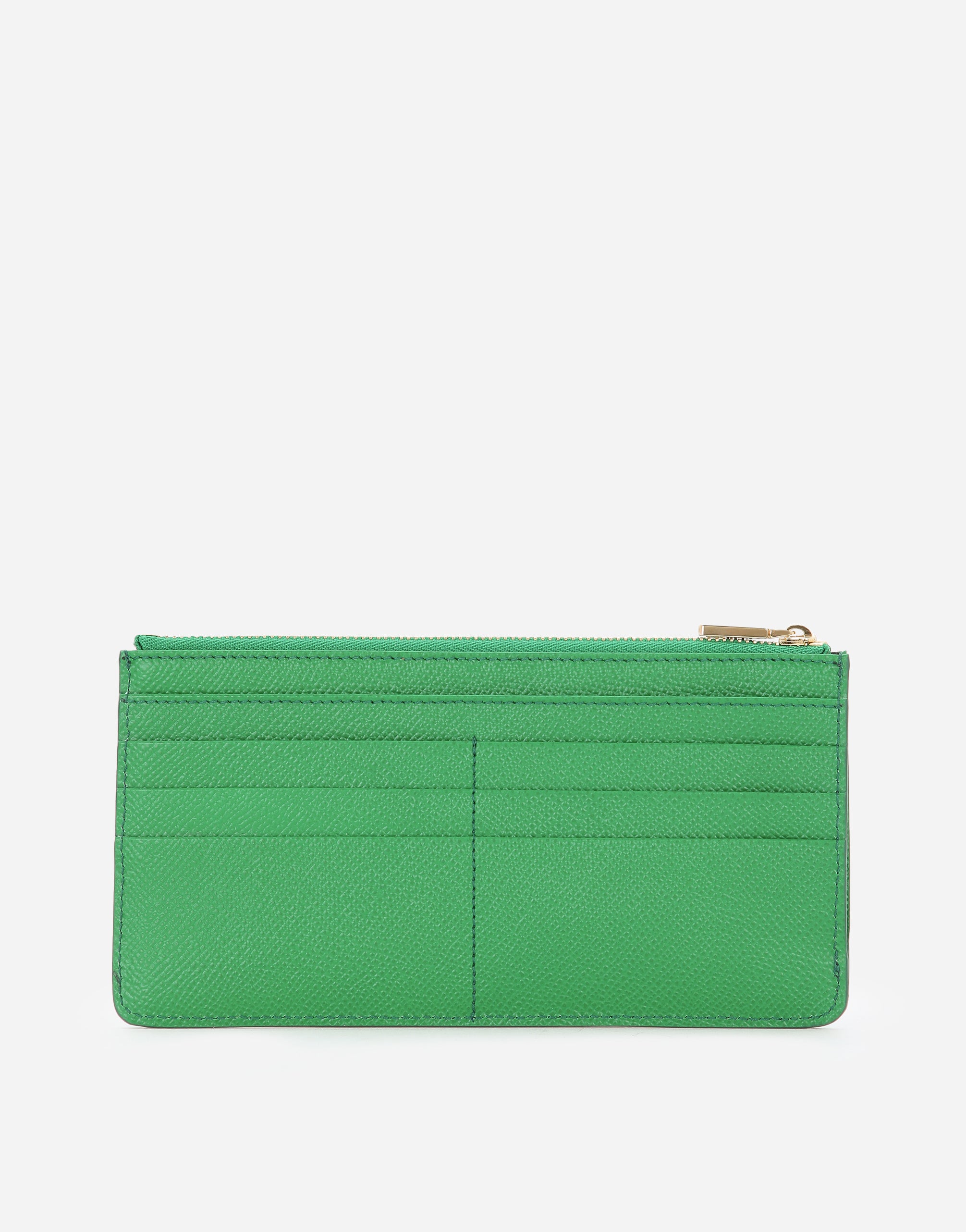 This zipped card holder in Dauphine calfskin comes with a practical bellow compartment with top zipper so it can also be used as a coin pocket. Branded tag featuring two metal plating finishes. • Six card slots and two flat pockets • Flat front pocket • Zipped coin pocket on top with branded slider • Measurements. 9.7 x 18.5 x 1.5 cm - 3.8 x 7.3 x 0.6 inches • Made in Italy