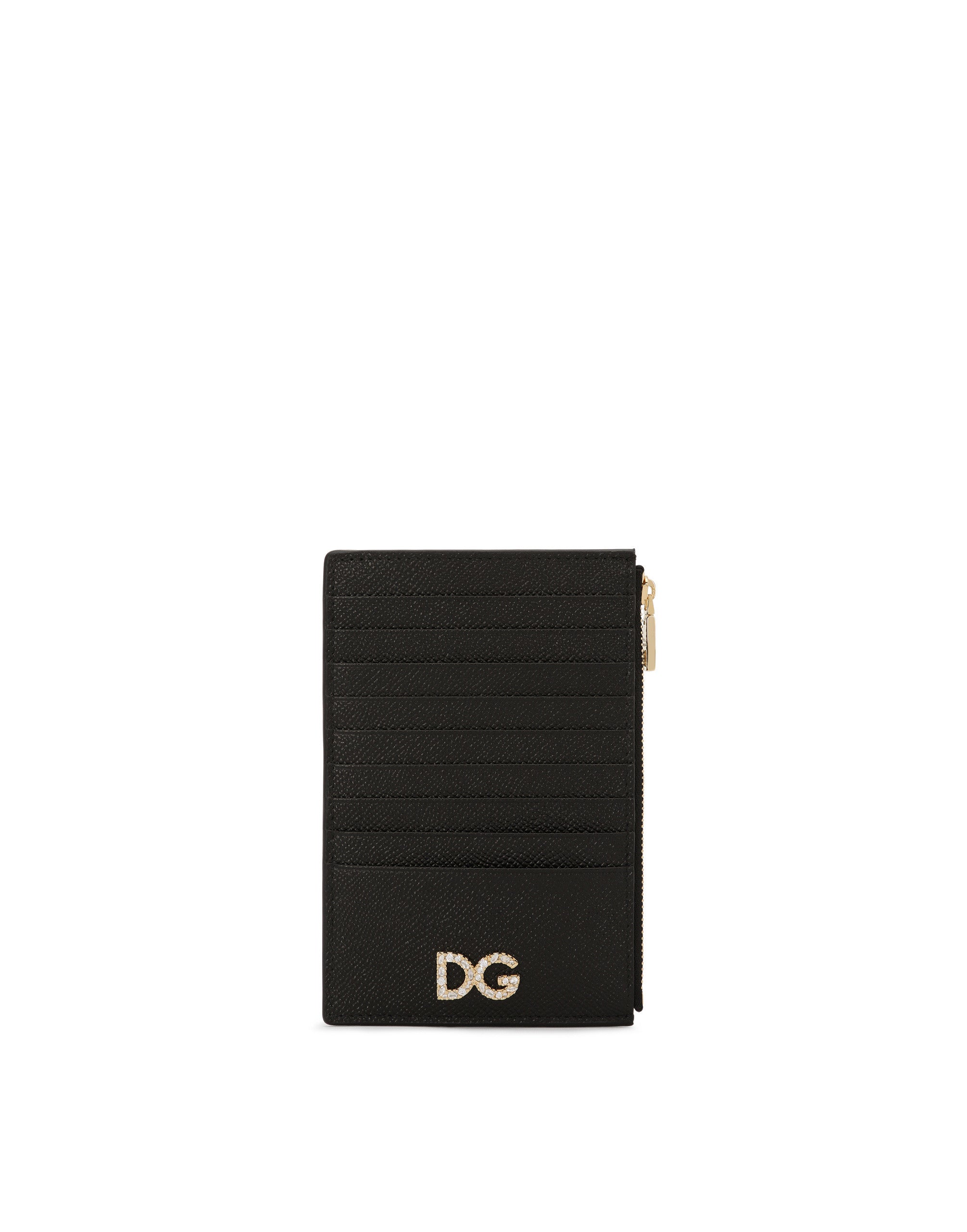 With its slim, functional design that makes it perfect for even the smallest of bags, this new vertical card holder in Dauphine calfskin features the distinctive DG logo with crystal rhinestone embellishment: • Nine card slots and one flat pocket on the back • Bill compartment with zipper and branded slider • Measurements: 11 x 16 x 2 cm - 4.3 x 6.3 x 0.8 inches • Made in Italy External composition: 100% Calfskin Internal composition: 100% Viscose
