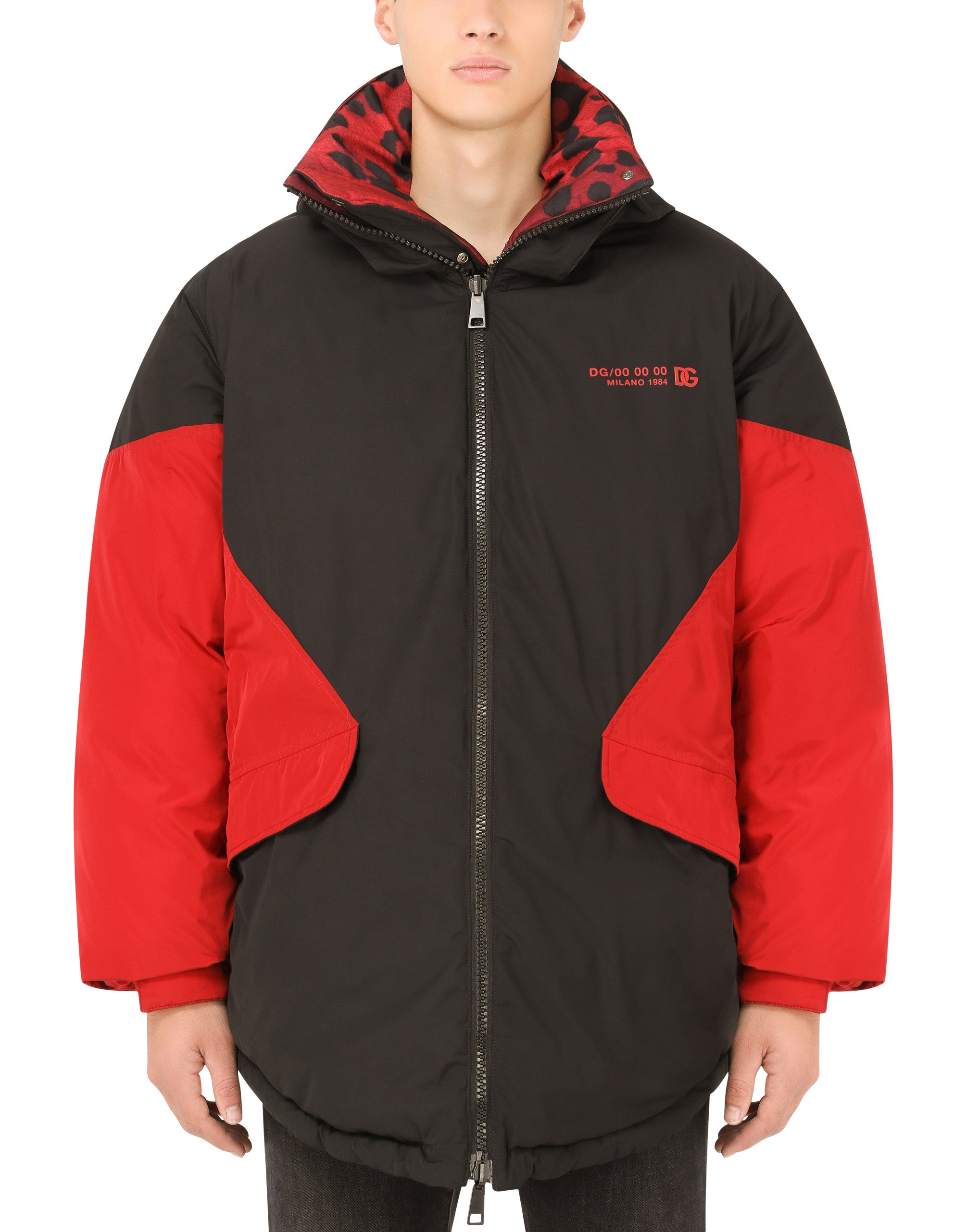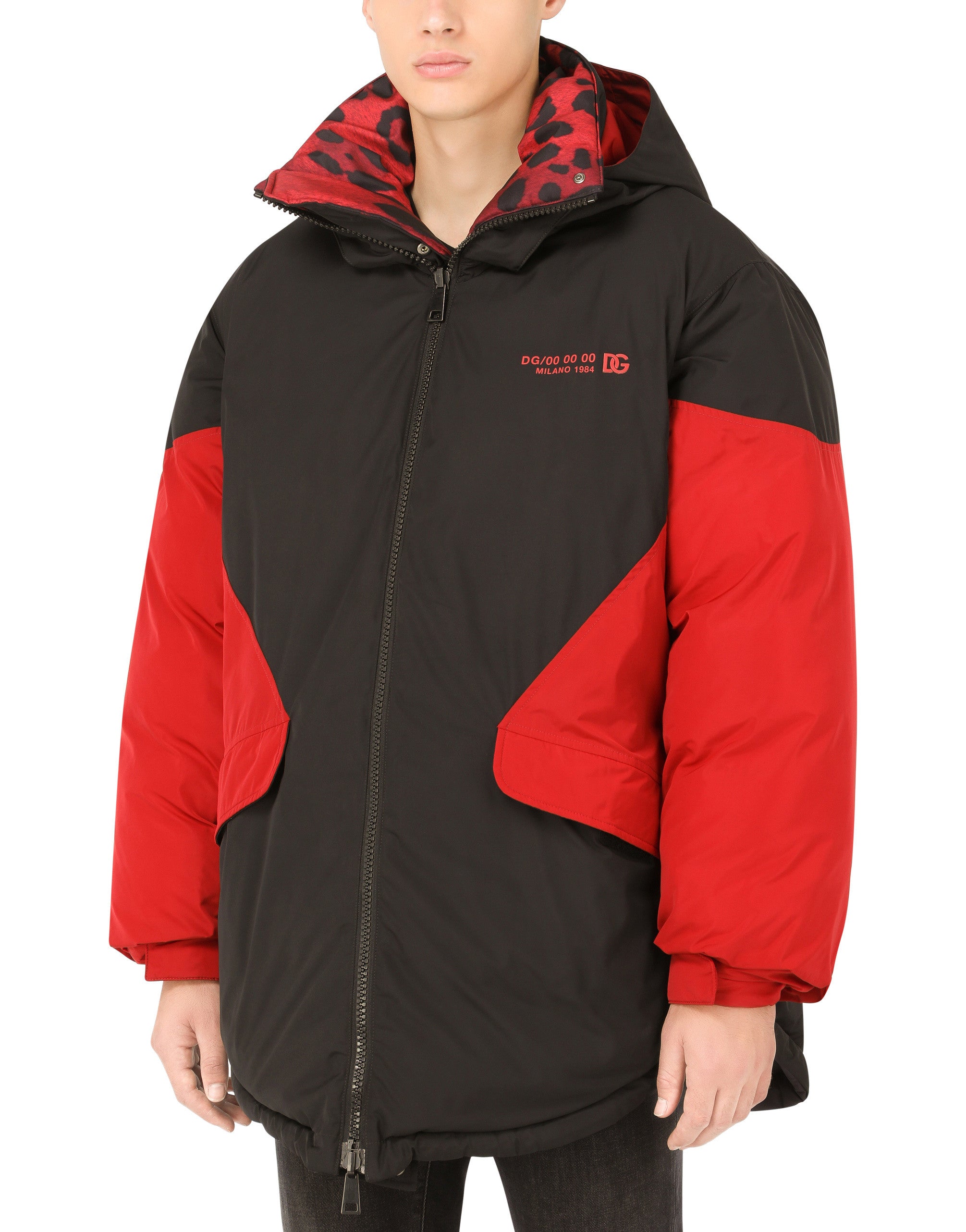 Hooded reversible nylon jacket with leopard print. • Insulated padding on the interior • Regular fit • Covered zipper fastening on the front • Zipped welt pockets on the exterior and flap pockets on the interior • Drawstring hem • The piece measures 92 cm - 36.2 inches from the rear collar seam on a size IT 48 • The model is 185 cm - 72.8 inches tall and wears a size IT 48 • Made in Italy
