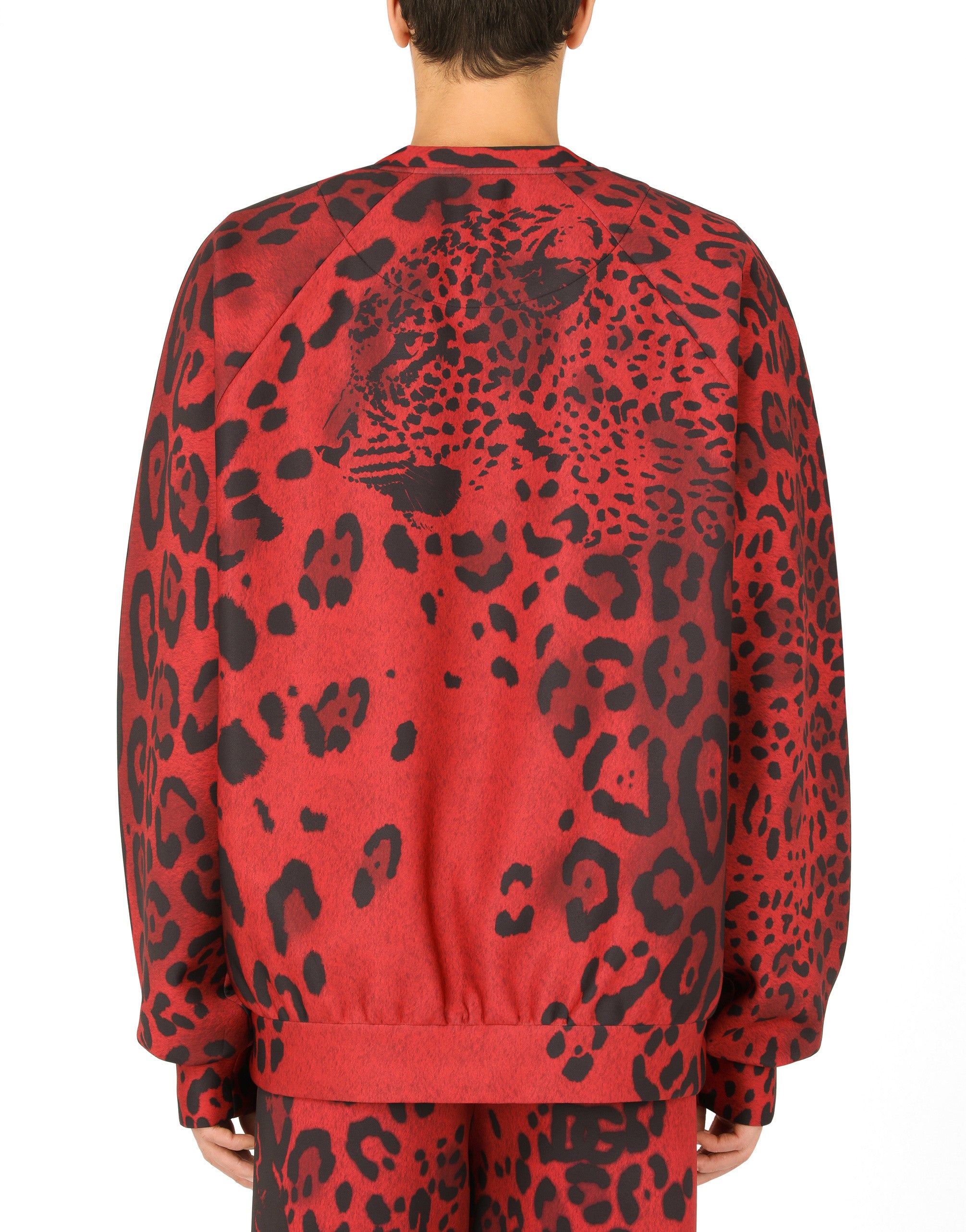Long-sleeved round-neck technical jersey sweatshirt with leopard print. • Oversize fit • The piece measures 68.5 cm - 27 inches from the rear collar seam on a size M • The model is 185 cm - 72.8 inches tall and wears a size M • Made in Italy
