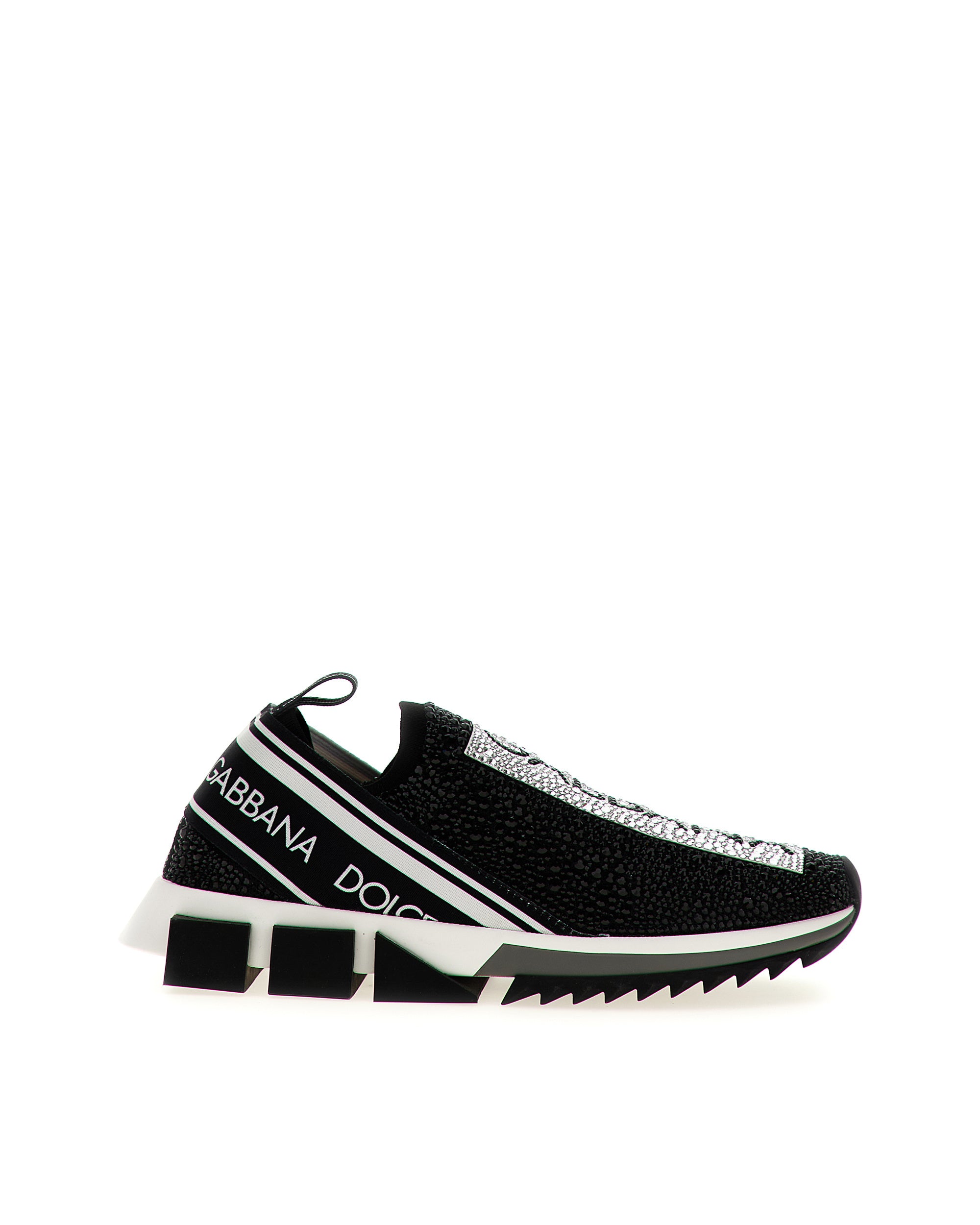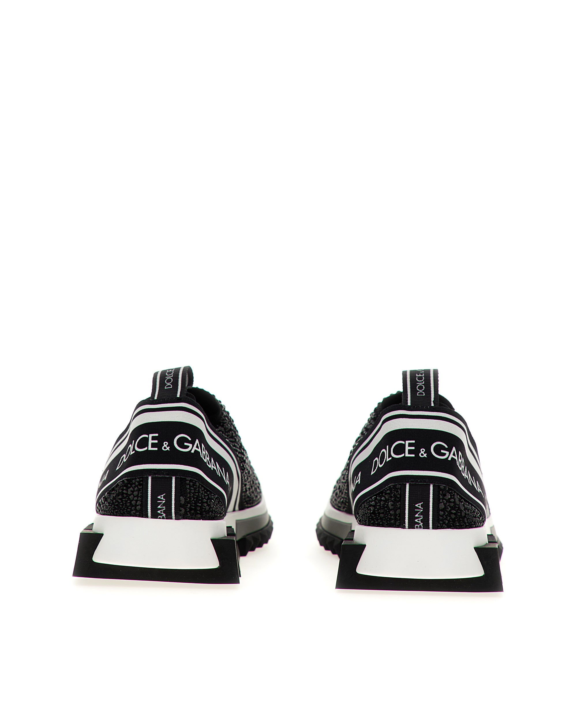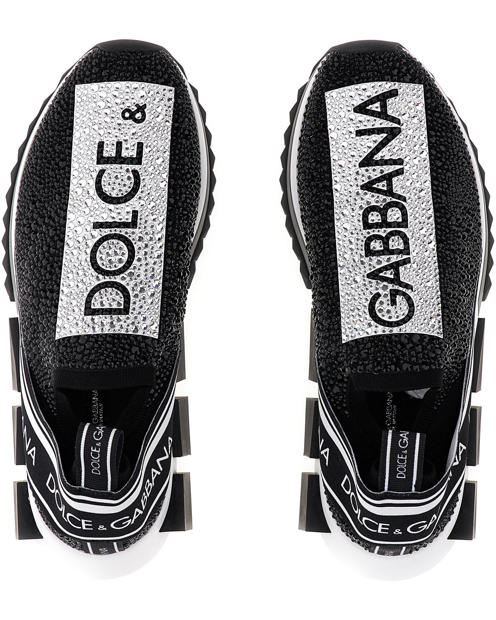 These iconic Sorrento slip-on sneakers in logotape-print stretch mesh with fusible crystals feature a sock shape and a geometric sole. In this version, the technique used to apply the crystals creates fine and unique sparkle. • Stretch mesh upper with a sock shape and fusible crystal embellishment • Branded, stretch tape on the back • Leather footbed with branded label • Two-tone rubber sole • Extra-light rubber bottom assembly • Item comes with themed packaging • Made in Italy • Small fit. we recommend choosing a larger size.
