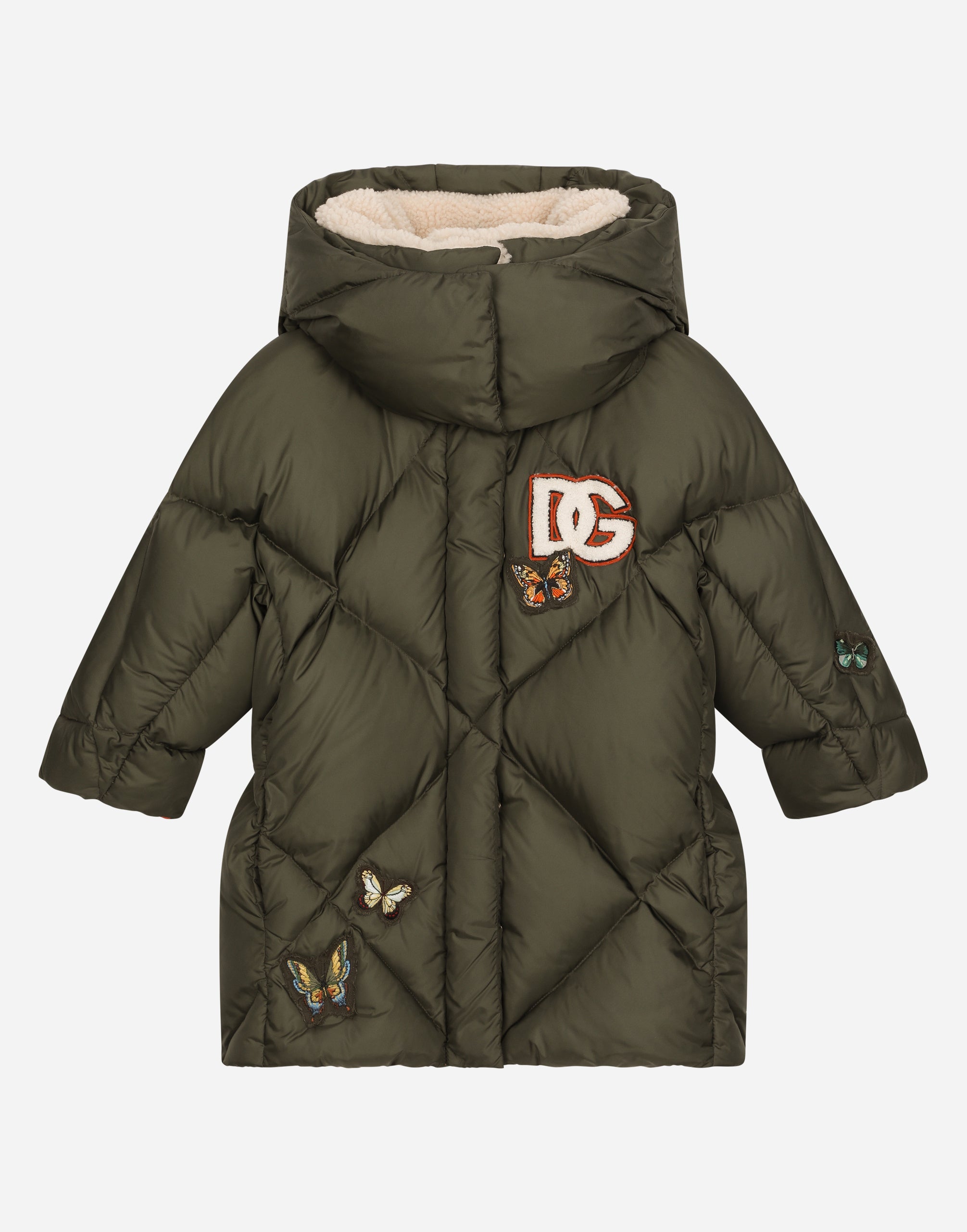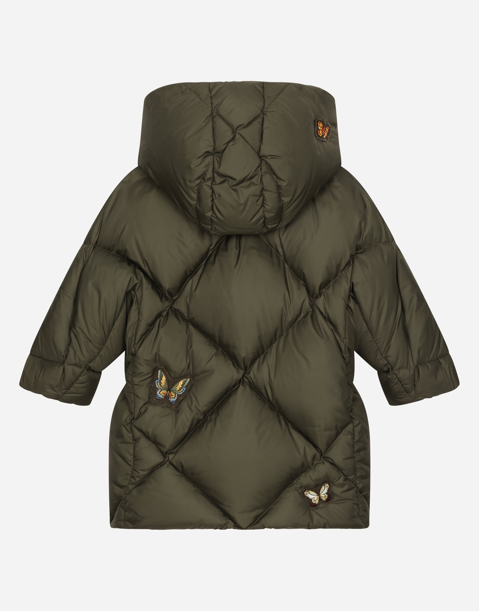 Inside Nature is a forest walk amidst the greenery of the trees and the flight of colorful butterflies. Cottons, nylon and soft faux fur come in natural hues, while vintage-feel patches and flashes of sequins embellish the looks. A tribute to the harmony of nature and its preservation. Comfort, warmth and modernity are the features that distinguish this nylon down jacket with butterfly patch embellishment.