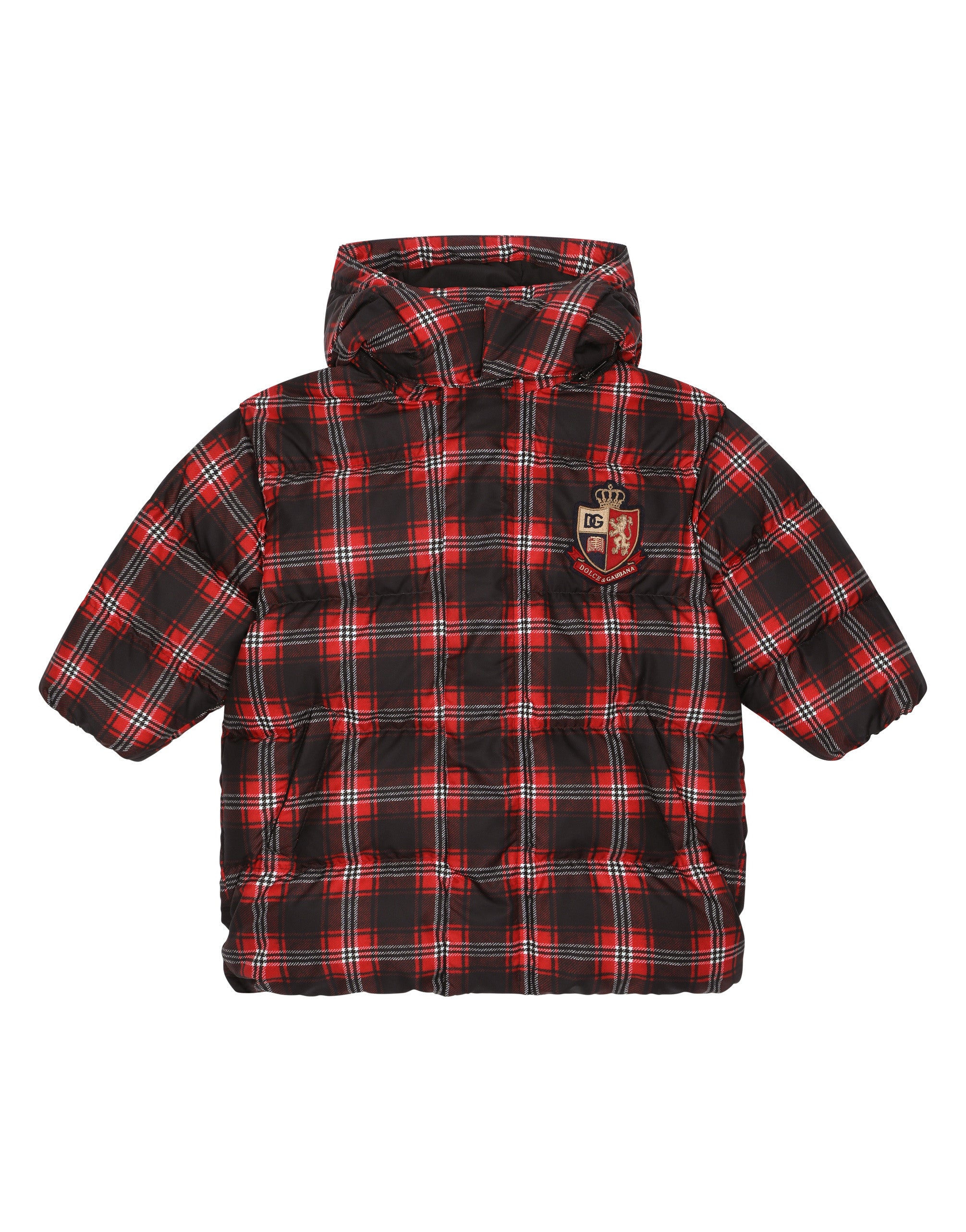 The Back To School capsule collection plays around with a mix of bold patterns and accents. The tartan gives the pieces flawless varsity style, embellished by heraldic patches, while colorful designs and lettering create exclusive prints. a cool and ironic look for comfortable and versatile pieces. This tartan-print nylon down jacket combines practicality and style and is perfect for winter. • Oversize fit • High neck with detachable hood • Long sleeves with elastic cuffs • Embroidered heraldic patch on the front • Front welt pockets with concealed zipper • Hem with stretch drawstring and branded toggles • Lined • Synthetic down padding • Concealed zipper with double branded slider on the front and press-stud fastenings • The item in the size 3 years measures 56 cm from the shoulder seam • Made in Italy