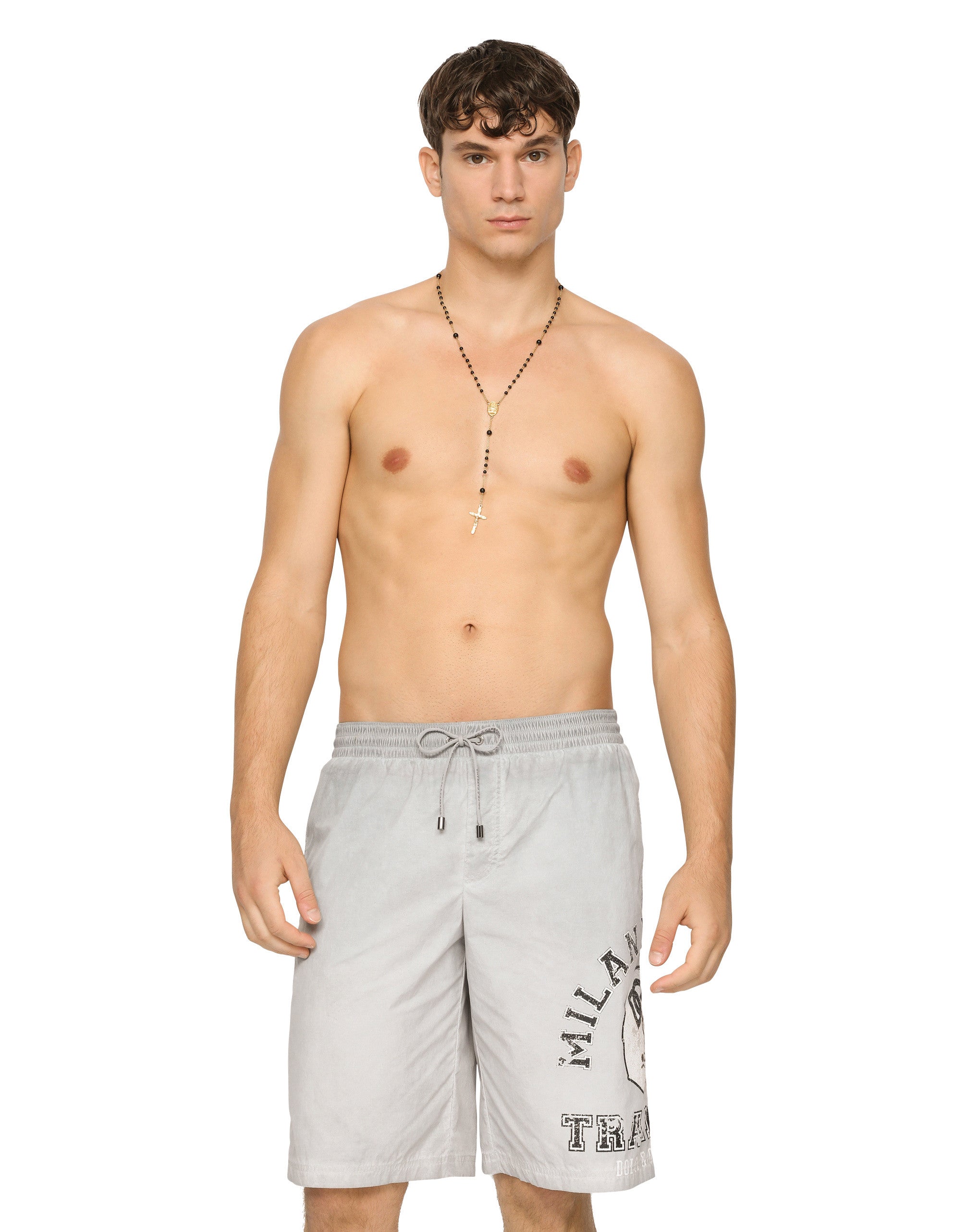 The Dolce&Gabbana beach collection is lush with prints and details that make it unique and special. Long garment-dyed light polyester swim trunks with print: • Stretch waistband with a drawstring and nickel-free metal aglets • Side pockets and a small zipped pocket on the back • Inner briefs in soft and comfortable fabric • Matching pouch in the same fabric as the garment • The item measures 53 cm on the outer leg on a size IT 4 • Sizes available: from II to VII • Made in Italy