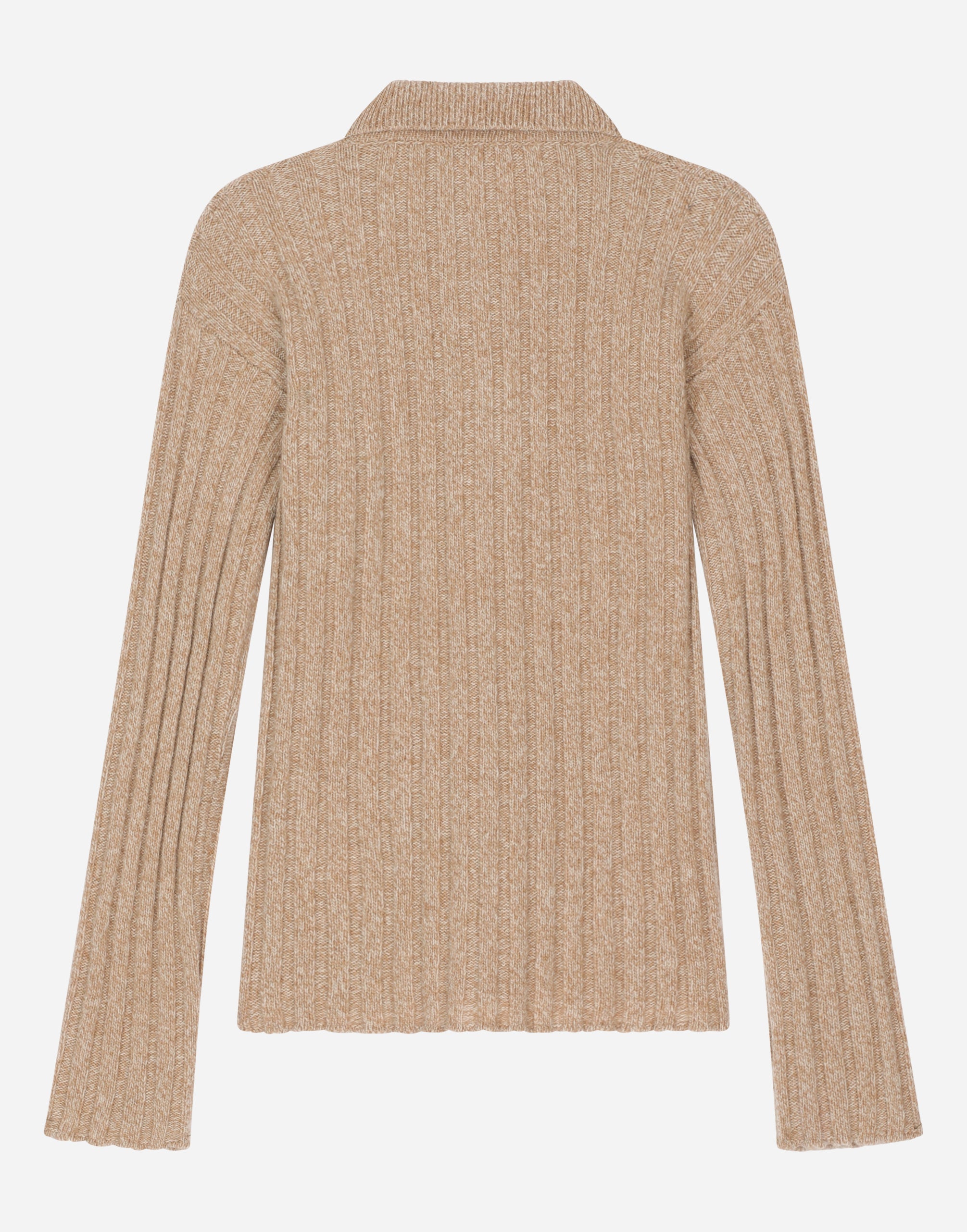 The girl’s Prateria Collection is inspired by the women’s 2001 New Hippy Collection, where the desert and meadows become bohemian and glamorous. Vaguely vintage/grunge looks come made up of volume and special pieces flaunt light printed and solid-color fabric details, smock stitching, corduroy, faux fur and a print distinguished by delicate and joyful multi-colored wildflowers for fun and ironic little girls. Long-sleeved polo-shirt with logo tag: • Beige • 7-gauge knit • Ribbed knit • Knit band on neckline • Front buttoning •Metal logo tag • Unlined • The item in the size 6 years measures 51.50 cm from the shoulder seam • Made in Italy