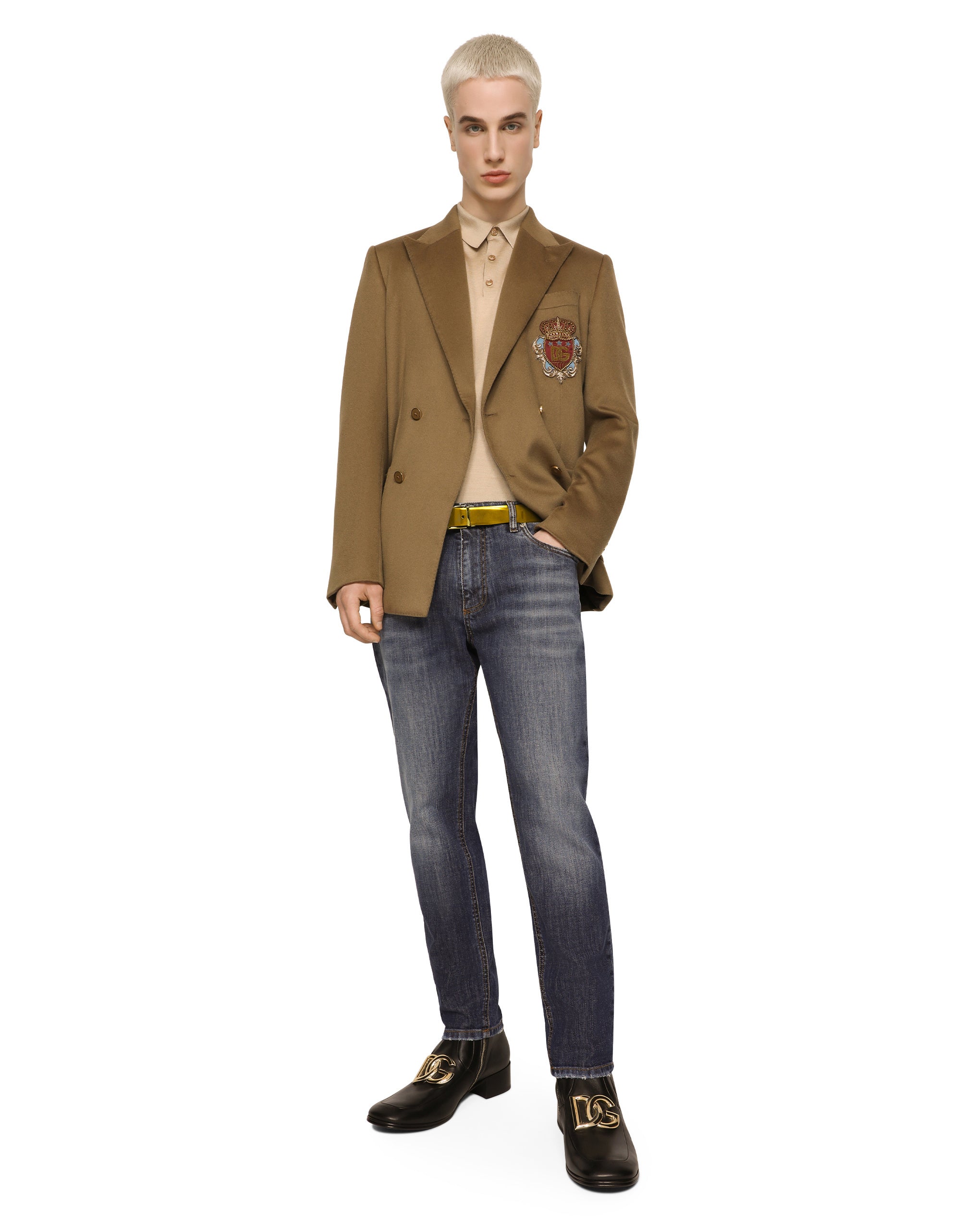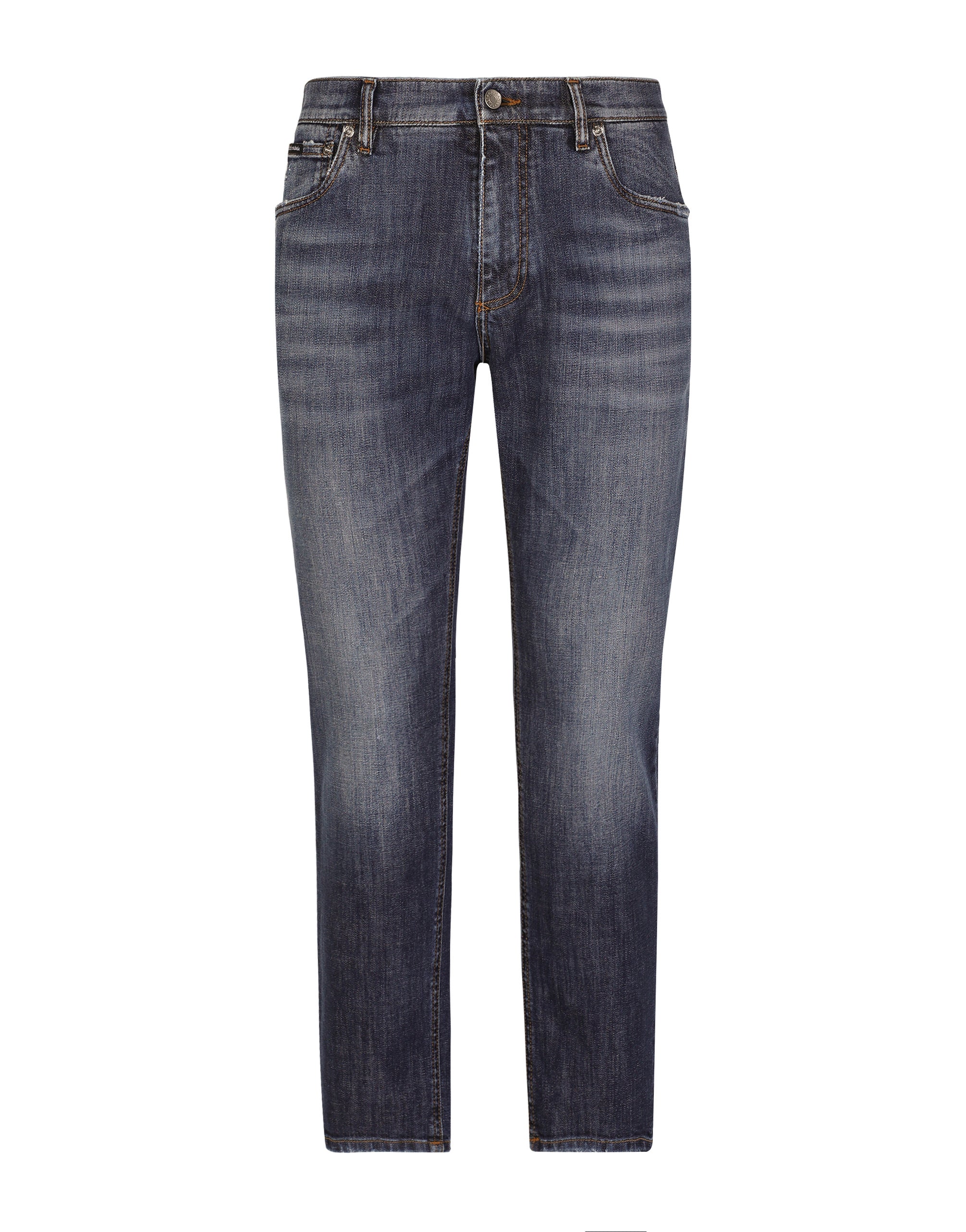For FW23, Dolce&Gabbana rereads its own historical archive, which is an inexhaustible source of inspiration that is rich in fascination and creativity. The garments accompanied by a “Re-Edition” label report the dates referenced by the collection. Each look enhances in all its sophistication the concept of timeless relevance of a historical archive allowing new generations to discover a past but always current universe that is rich in creative insights and possible personal interpretations. Five-pocket loose fit washed stretch denim jeans with subtle abrasions: • Blue • Loose fit • Fly-covered zipper and button fastening • Metal Dolce&Gabbana logo plate on the back • The item measures 99 cm on the outer leg and the hem is 18 cm wide on a size IT 48 • The model is 185 cm tall and wears a size IT 48 • Made in Italy