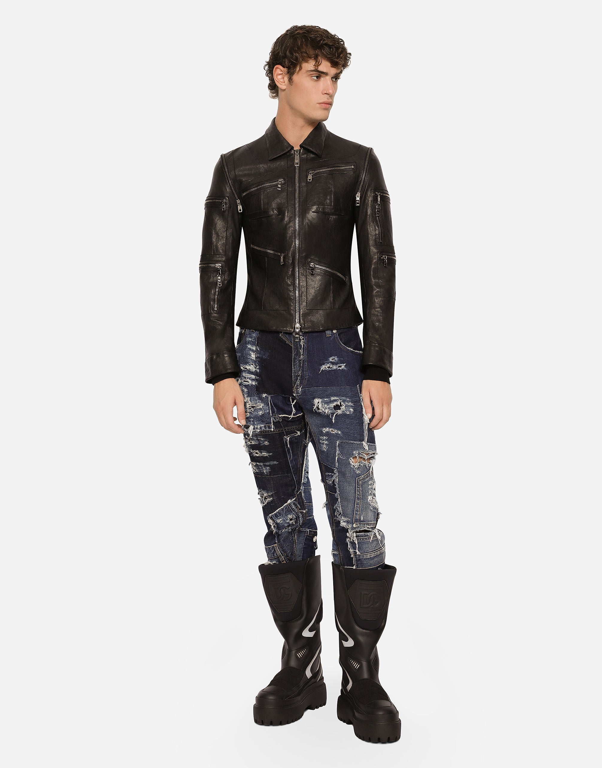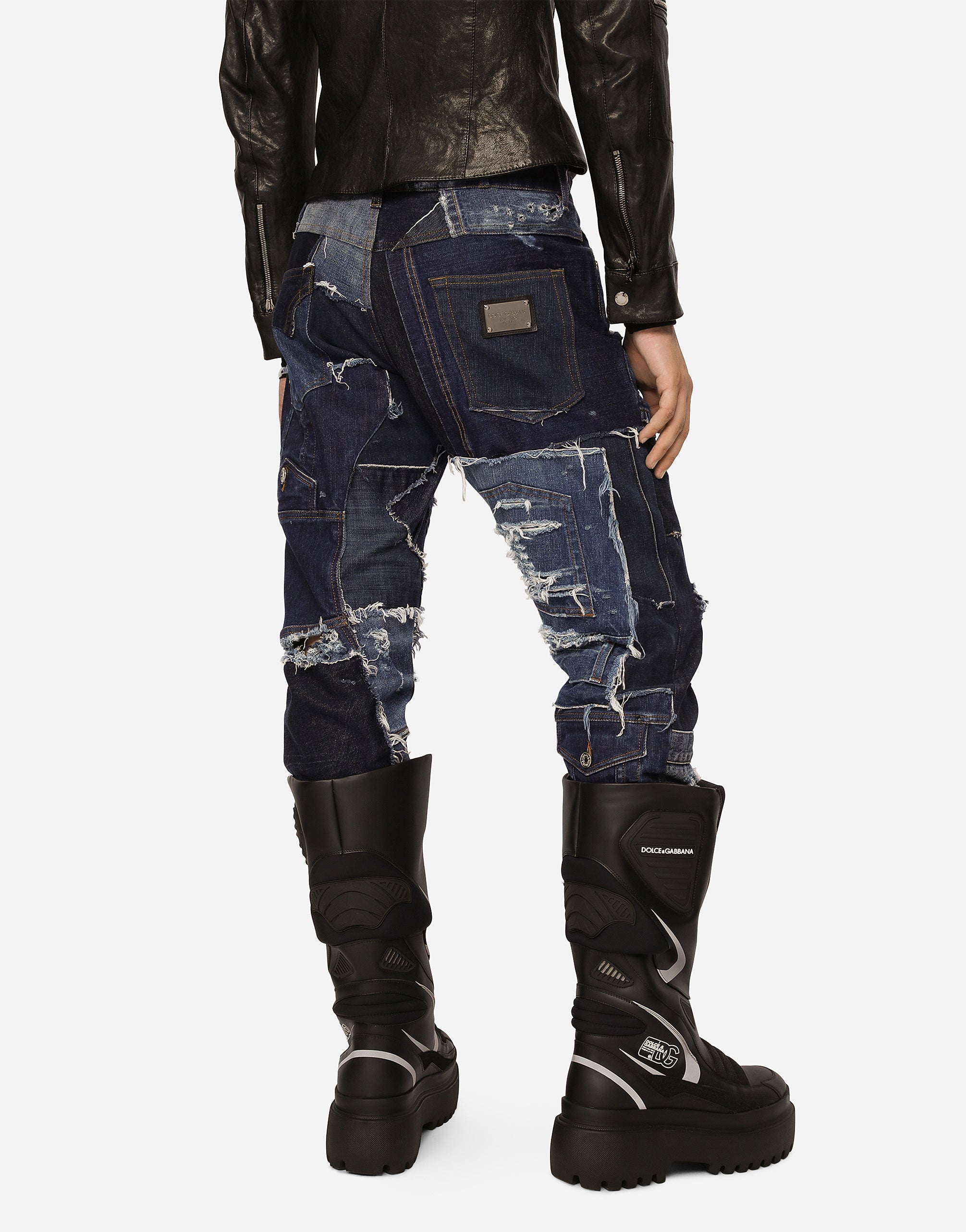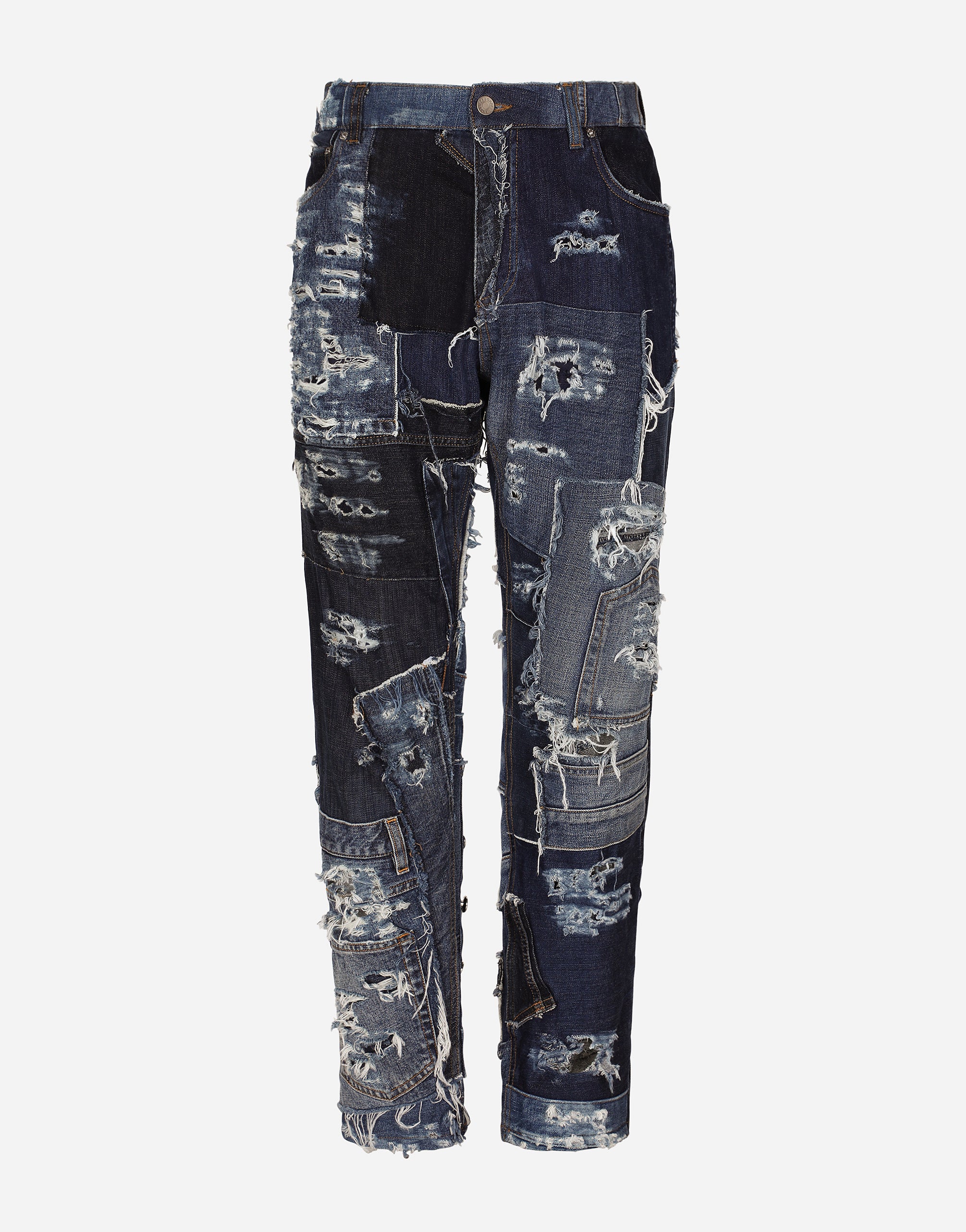 In the “Re-Edition” Fashion Show, the timeless looks from Dolce&Gabbana’s archives were back on the catwalk to create a “re-edited” collection, where the concept of contemporaneity starts from a past that is still a present filled with identity and uniqueness. Thus the Re-Edition label embellishes a few pieces, showing the year the archival garment that inspired it was created. Five-pocket loose jeans in stretch patchwork denim with rips: • Loose fit • Fly-covered zipper and button fastening • Vintage metal Dolce&Gabbana logo tag on the back • The item measures 99 cm on the outer leg and the hem is 18 cm wide on a size IT 48 • The model is 185 cm tall and wears a size IT 48 • Made in Italy