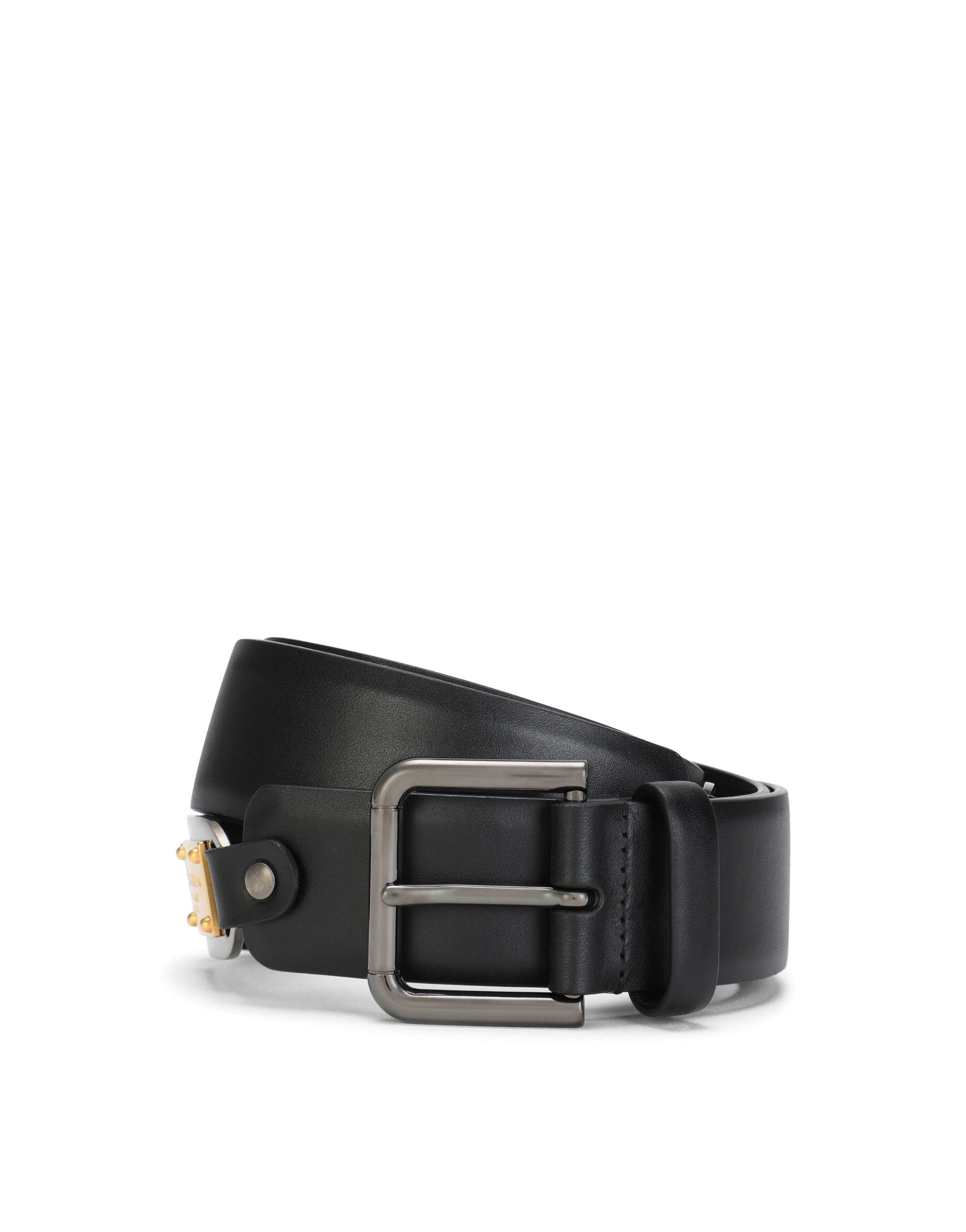 Featuring iconic branded plates with two metal plating finishes, this new belt comes in lux leather: • The belt strap is 35 mm - 1.4 inches in height • Rolled ruthenium-plated buckle • Lux leather belt loop stop •Nickel-free buckles and hardware • Made in Italy External composition: 100% Calfskin Internal composition: 100% Calfskin