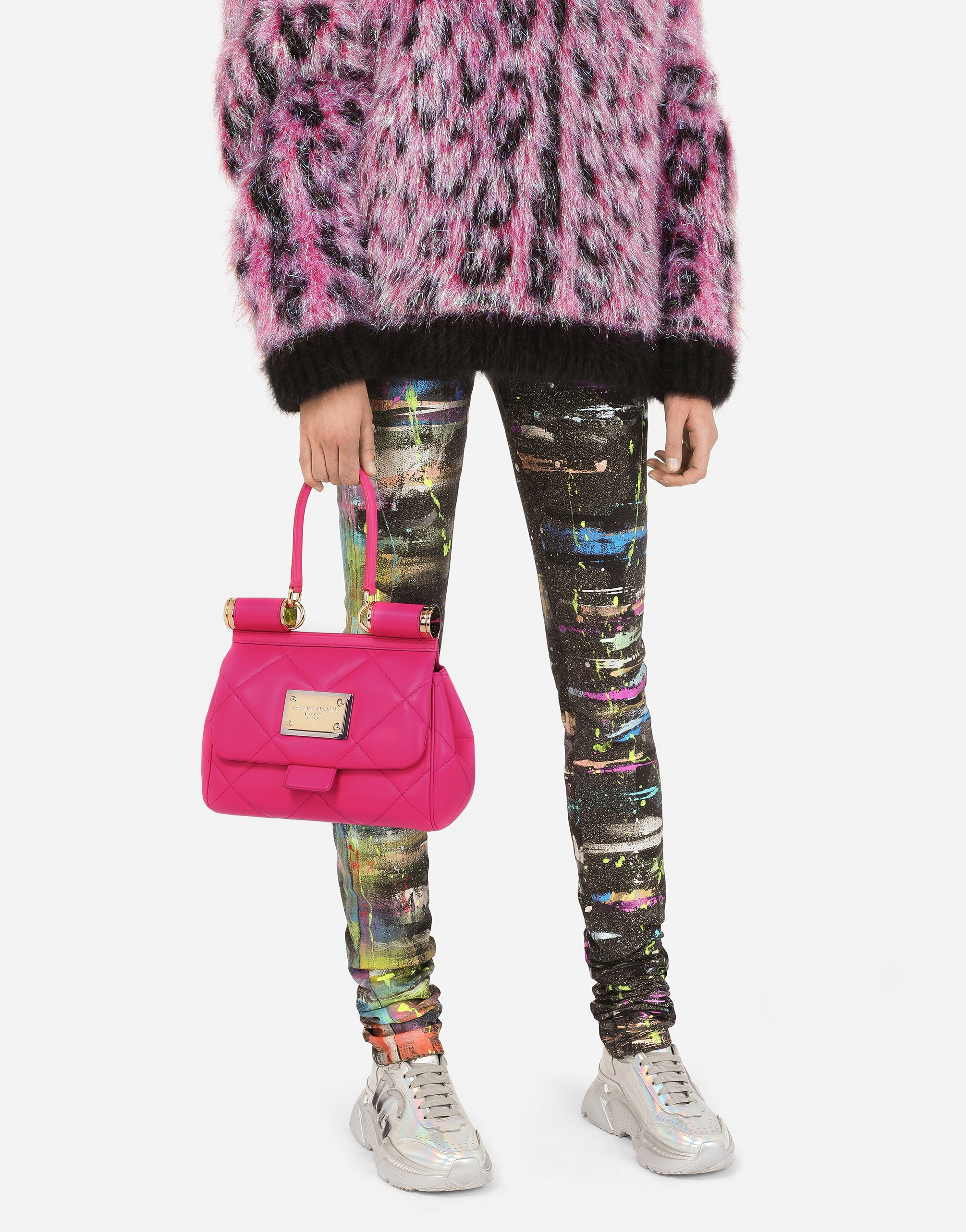 The brand icon par excellence, the medium Sicily bag is coming in a new version. Through the creative use of volume, iconic details are emphasized to give the bag 90s allure. Coming in quilted Aria calfskin, it features the new branded plate with two metal plating finishes: • Front flap with hidden press-stud fastening • Large top handle and adjustable, detachable strap in calfskin • Printed fabric lining • Inner pocket with branded zipper and a cell phone holder • Metal feet studs on the base • Item comes with a branded dust bag that matches the item’s theme • Measurements: 19 x 25 x 12 cm - 7.5 x 9.8 x 4.7 inches • Made in Italy