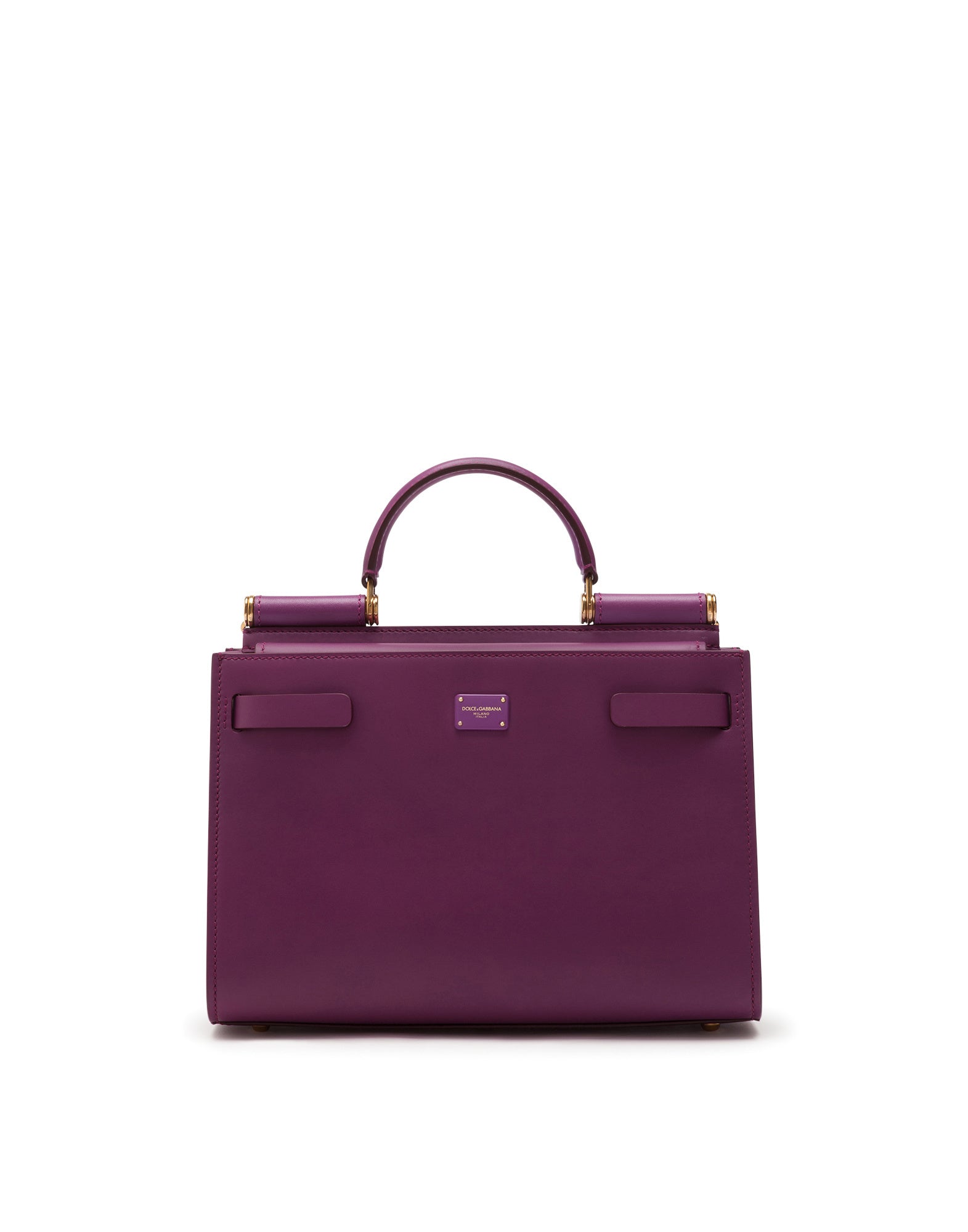 Medium Sicily 62 tote bag from the 58-62 line. It takes its inspiration from the date of births of Domenico Dolce and Stefano Gabbana, born in 1958 and 1962 respectively. The designers have reinterpreted the brand’s iconic style, updated its construction and used superior quality leathers for their sophisticated and discerning customers. Versatile, structured and defined by refined geometric shapes, it features exclusive finishes and comes with two compartments featuring a central divider for a practical organization of the space. It has a detachable top handle so it can be changed or customized with different colors and materials: • Laser-etched enameled metal plate with logo on the front • Top handle and adjustable, detachable shoulder strap in calfskin • Two-compartment structure with inner flap • Accordion sides with straps featuring press-stud fastenings • Nappa leather lining with storage pocket and cell phone holder • Metal feet studs on the base • Item comes with a branded dust bag • Measurements: 28 x 22 x 15 cm - 11 x 8.7 x 5.9 inches • Made in Italy External composition: 100% Calfskin Internal composition: 91% Lambskin 9% Calfskin