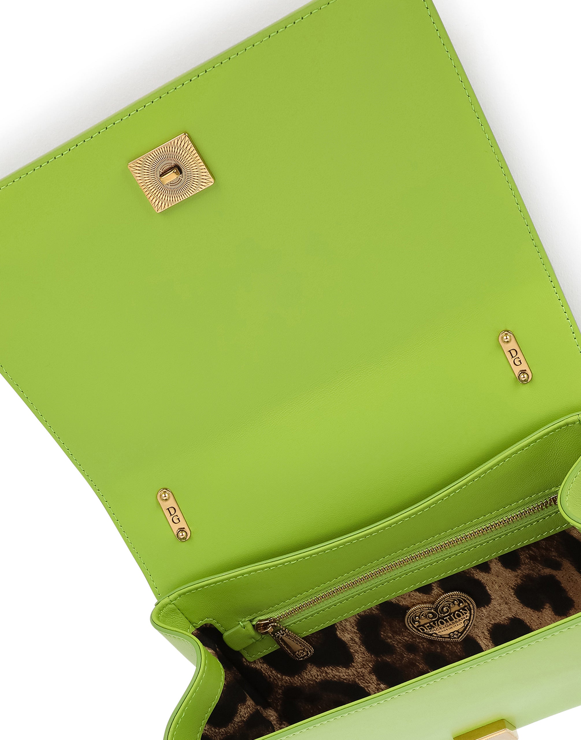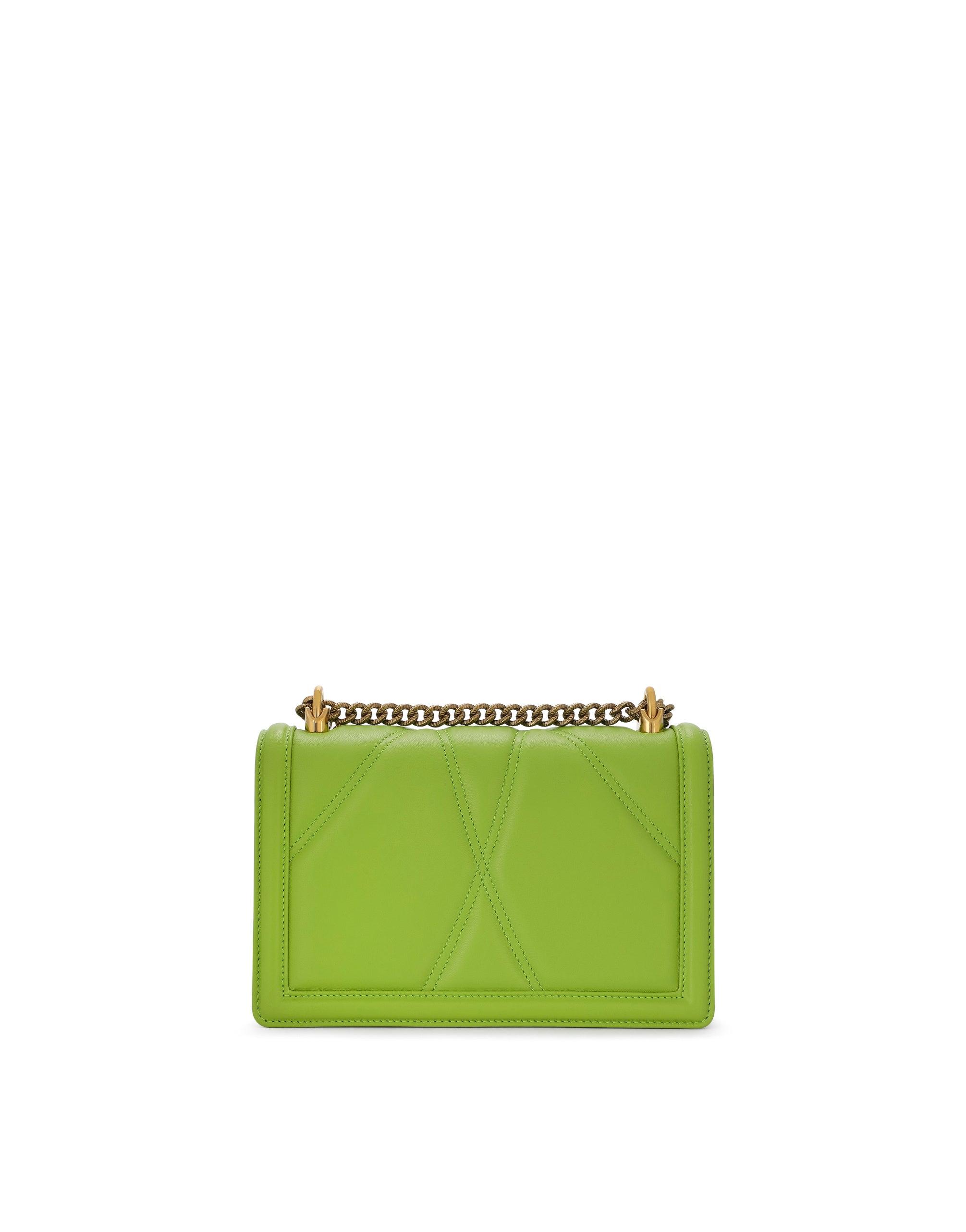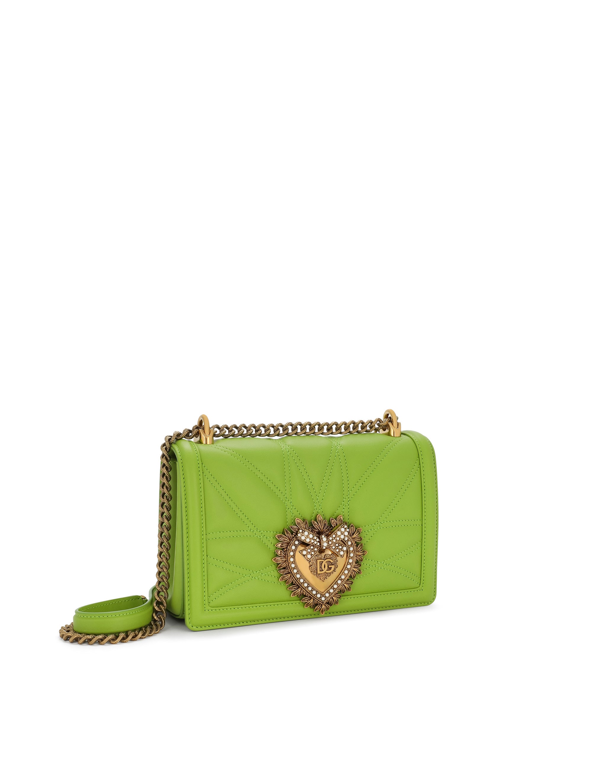 This new medium Devotion bag comes in quilted nappa leather. Featuring double top-stitching and the iconic leopard-print lining, it comes with the exclusive bejeweled heart fastening with vintage gold finish and the strap inspired by the techniques of high-quality jewelers. •Adjustable chain shoulder strap with nappa leather insert so it can be worn over the shoulder or across the body •Front flap with bejeweled branded heart hand-tooled from a metal alloy with pearl inlay •Concealed press-stud fastening •Printed fabric lining featuring a zipped pocket with a Devotion slider •Item comes with a branded dust bag •Measurements. 14.5 x 21 x 3 cm •Made in Italy