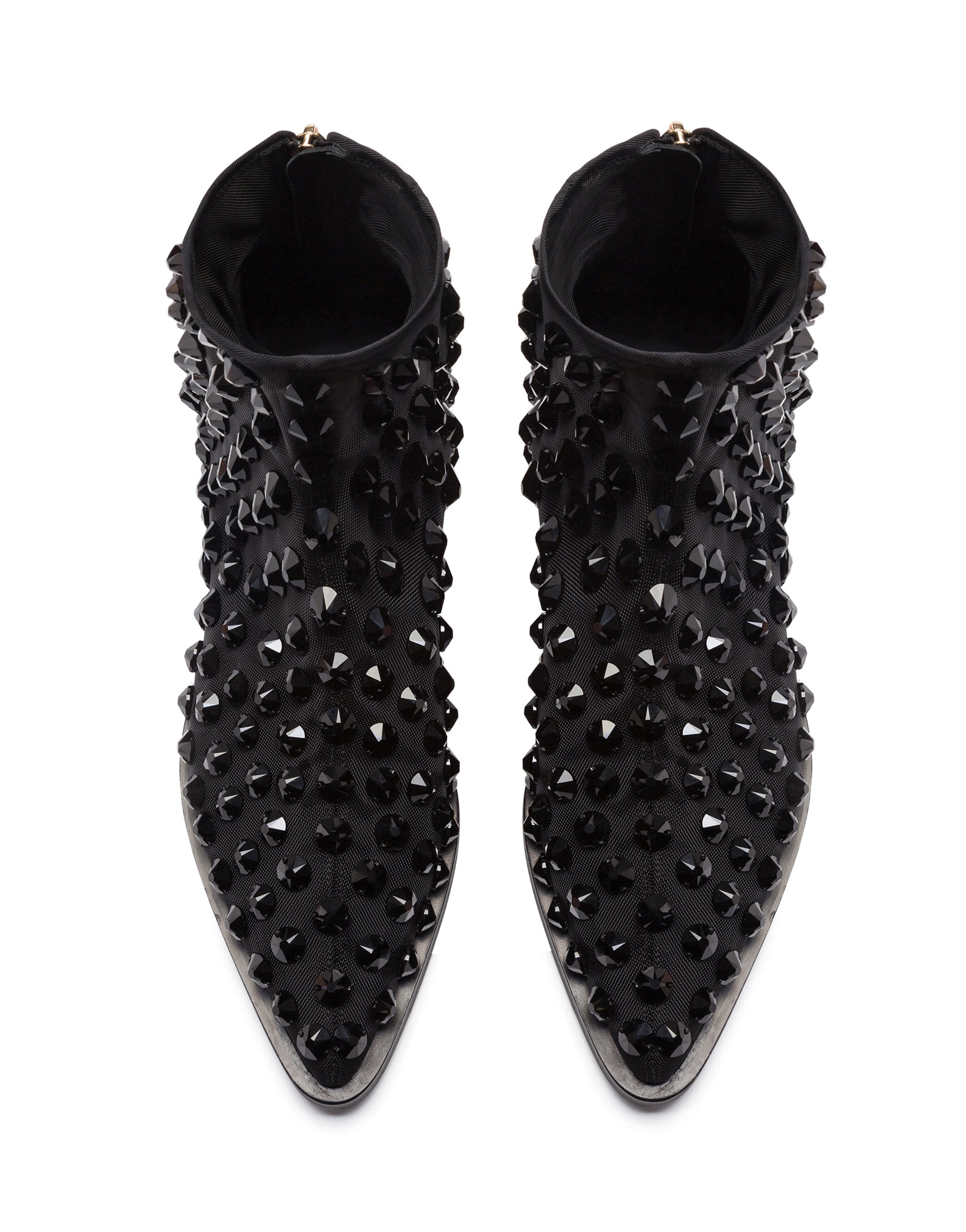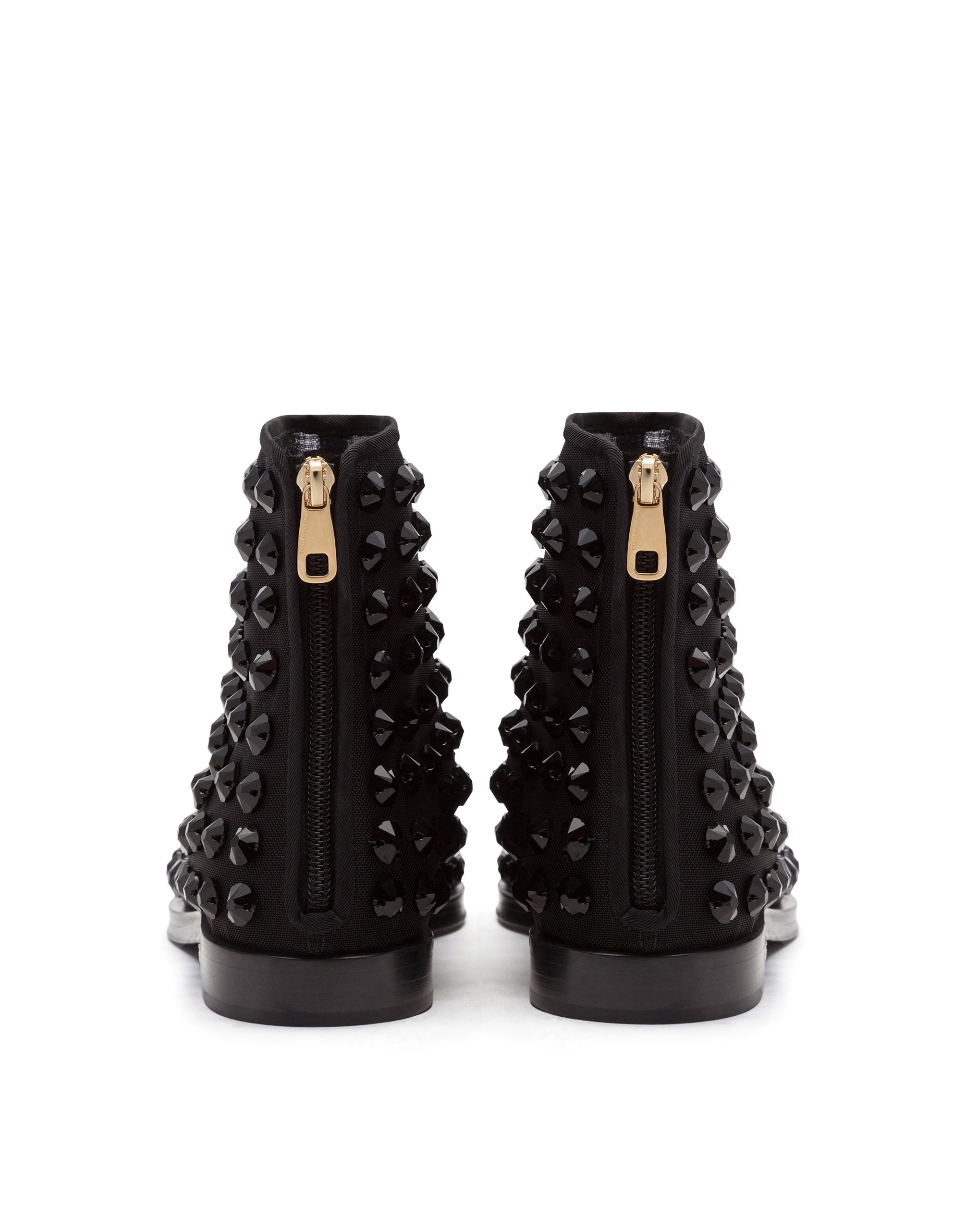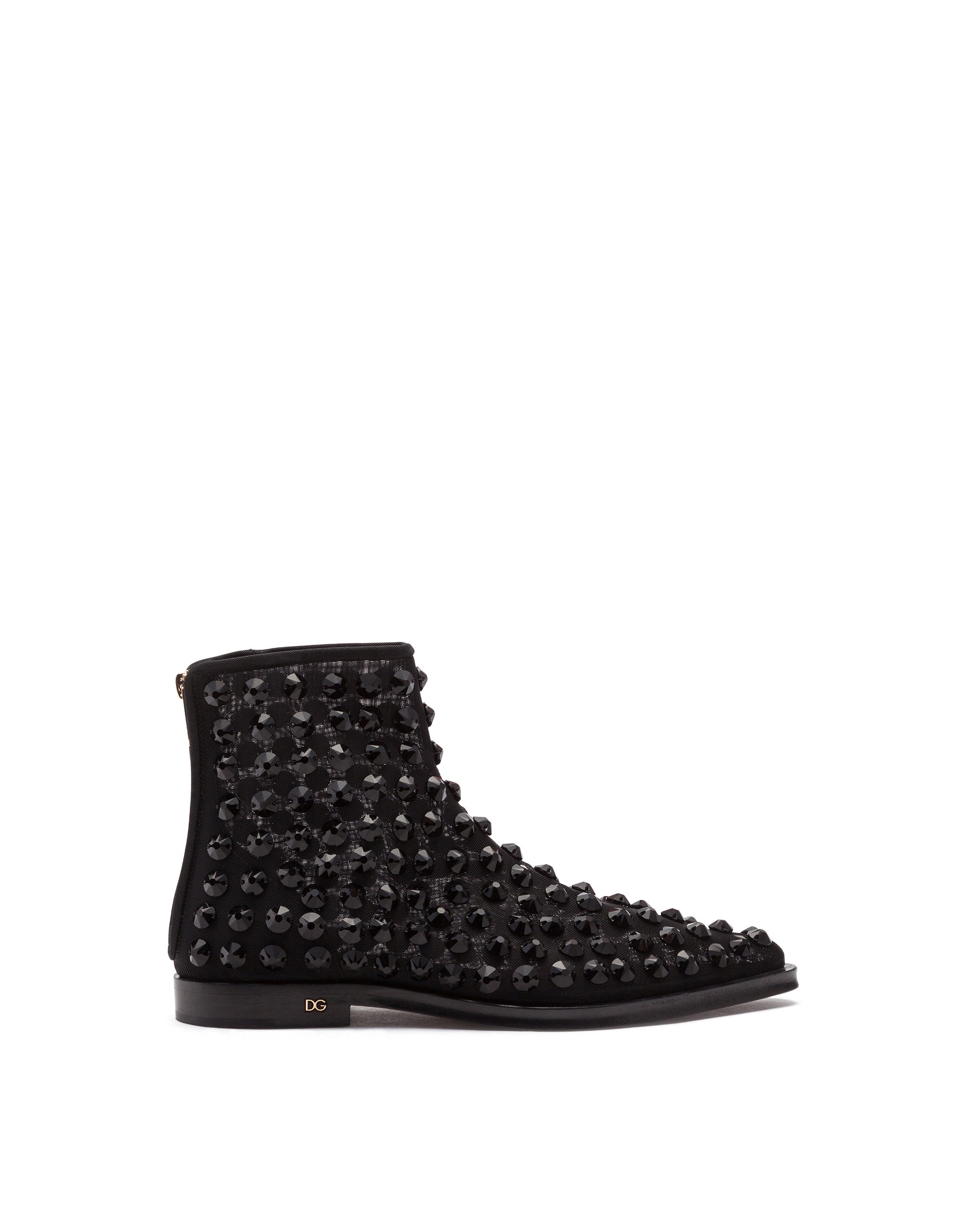 The DNA theme, which forms the very foundation of the brand, is enriched each season. Featuring an iconic pointed toe, these Millennials Chelsea boots come in mesh with gros-grain trims and all-over rhinestone embellishment. The rear zipper ensures the utmost comfort for the person wearing them: • Mesh upper with rhinestone embellishment • Leather insole with quilted satin insert and branded label • Leather-covered heel with DG monogram on the side • Black leather sole with logo detail • Item comes with themed packaging • Made in Italy External composition: 69% Polyamide 31% Viscose