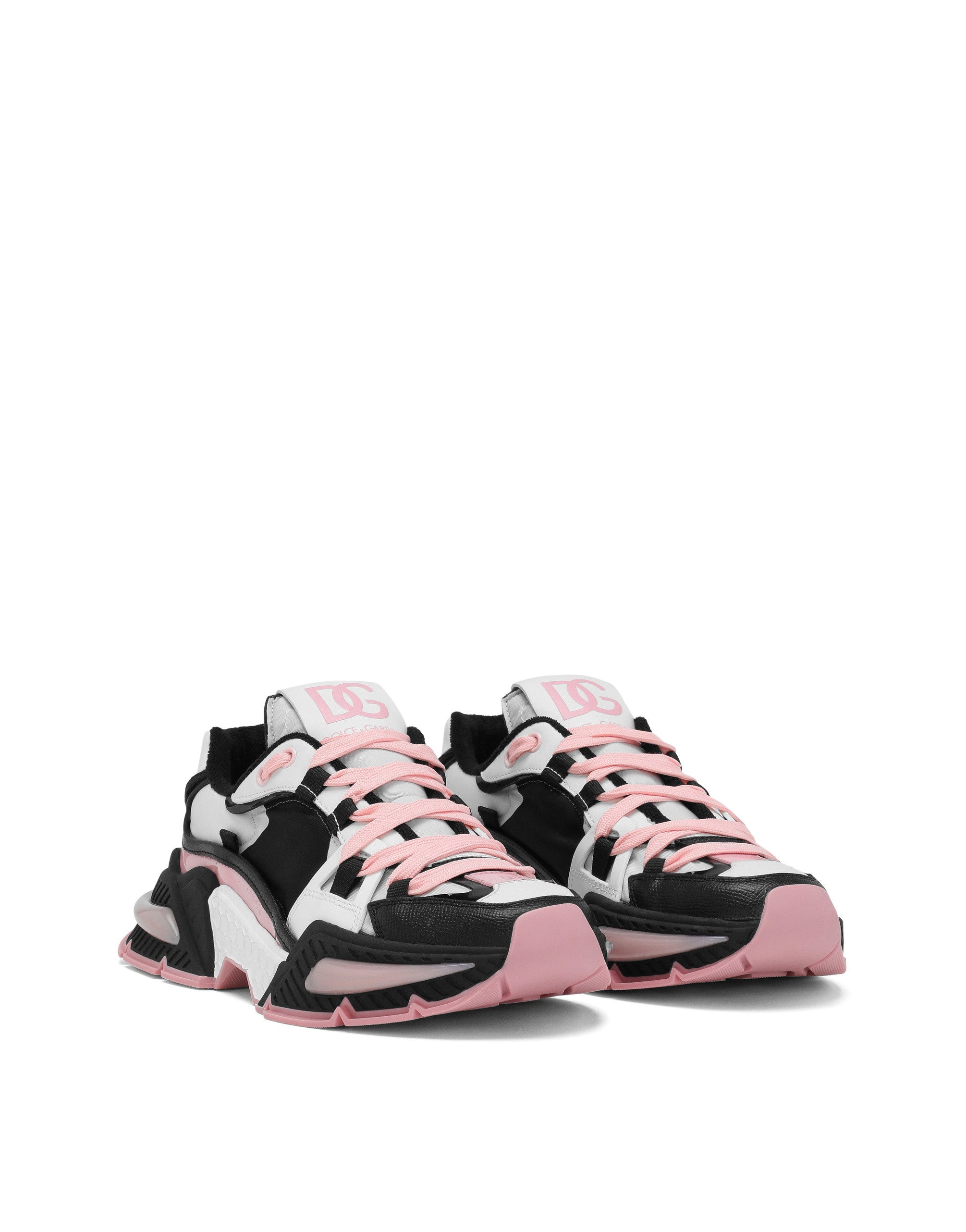 A new bold and dynamic line is joining the sneakers collection. Featuring an ultra-light upper, the line is inspired by our iconic Daymaster sneakers and is perfect for wearing when off-duty. Perfect for contemporary women, it comes in nylon with contrasting Dauphine calfskin details. • Mixed-material upper • Calfskin heel cup with embroidered DG logo • Rubber label with micro-injection logo • Flat laces • Branded tongue • Calfskin footbed with branded label • Super-flex rubber bottom assembly with logo • Branded rubber sole • Made in Italy