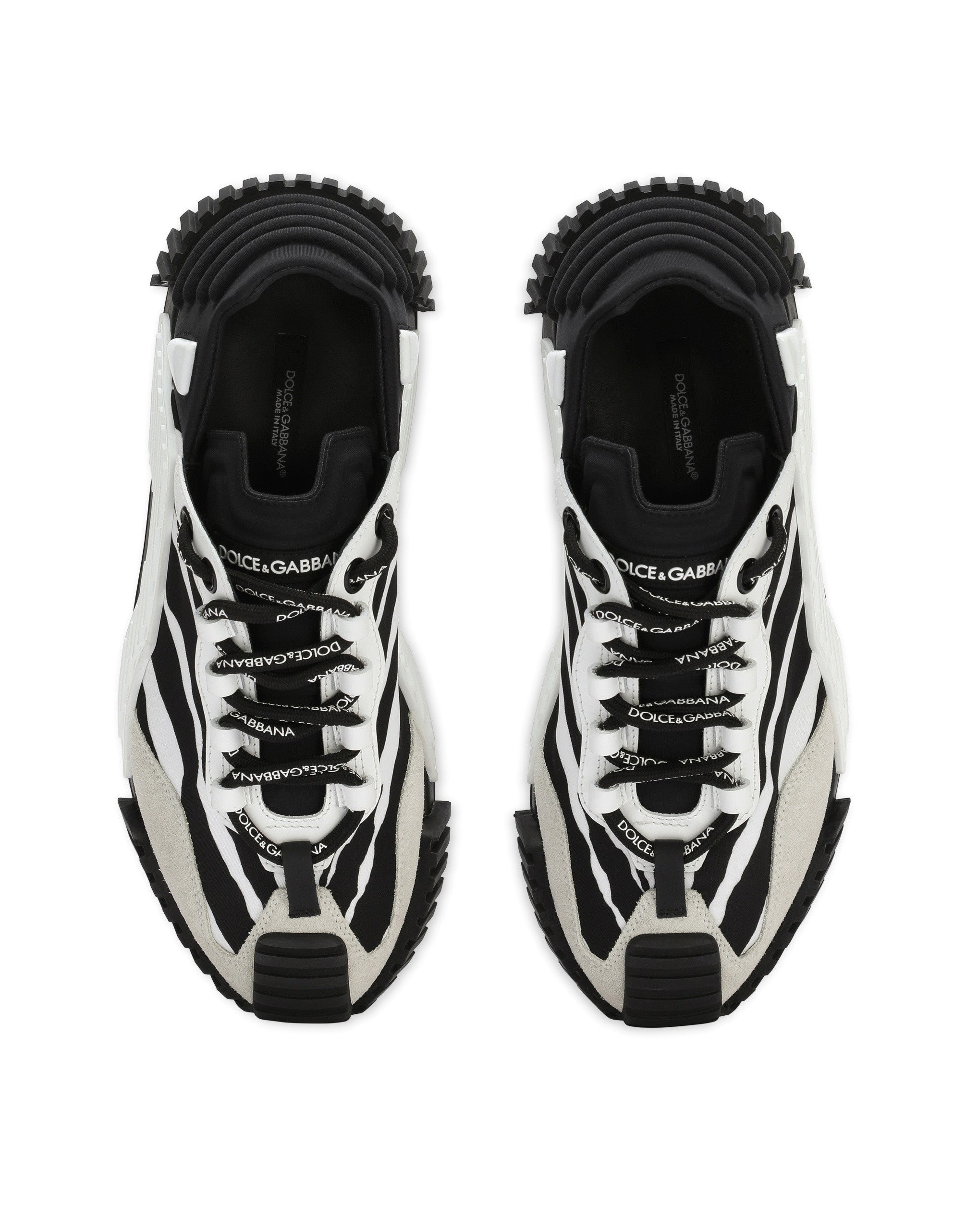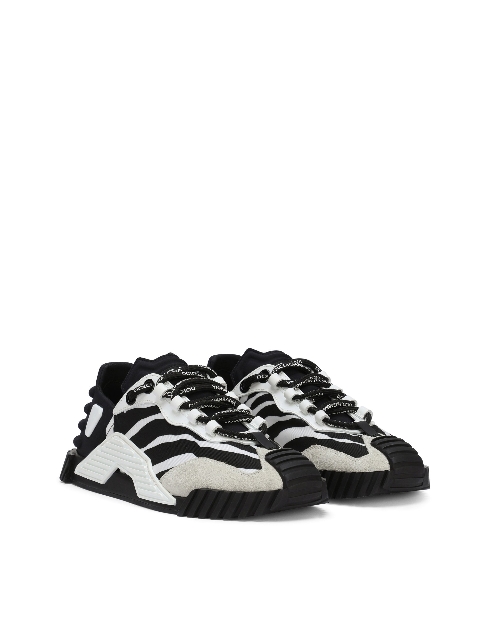 The black and white of the new Zebra Collection are the stars of a new communicative mode where innovation and tradition come together to create bold, sophisticated contrast. These NS1 slip-on sneakers come in zebra-print nylon with rubberized calfskin and suede details. They feature a super-flex rubber sole with side details and tongue in run-resistant, thermoformed fabric created using a high-frequency technique. • Printed nylon and spandex fabric upper • Branded tubular laces • Calfskin footbed with branded label • Rubber outsole • Item comes with themed packaging • Made in Italy