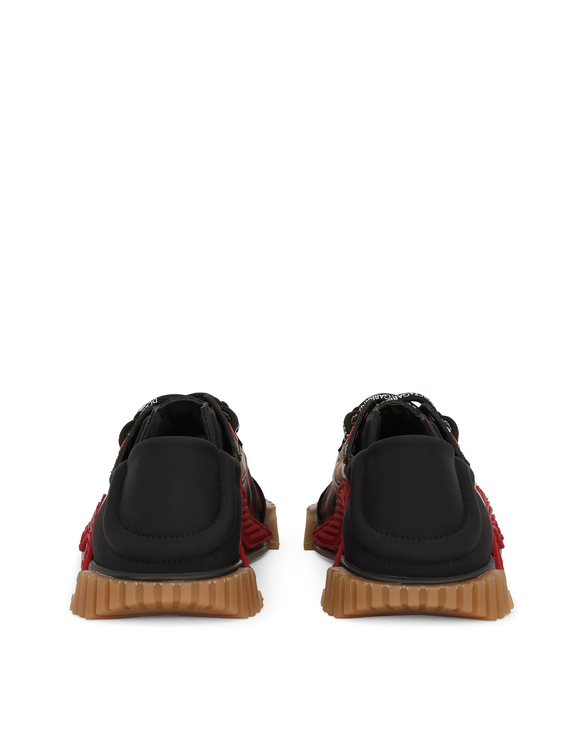 Coming in a new version, the NS1 sneakers in run-resistant fabric feature rubberized calfskin and nylon details. Flaunting bold allure, they feature the union of the new tiger print with our iconic leopard print against a red background.