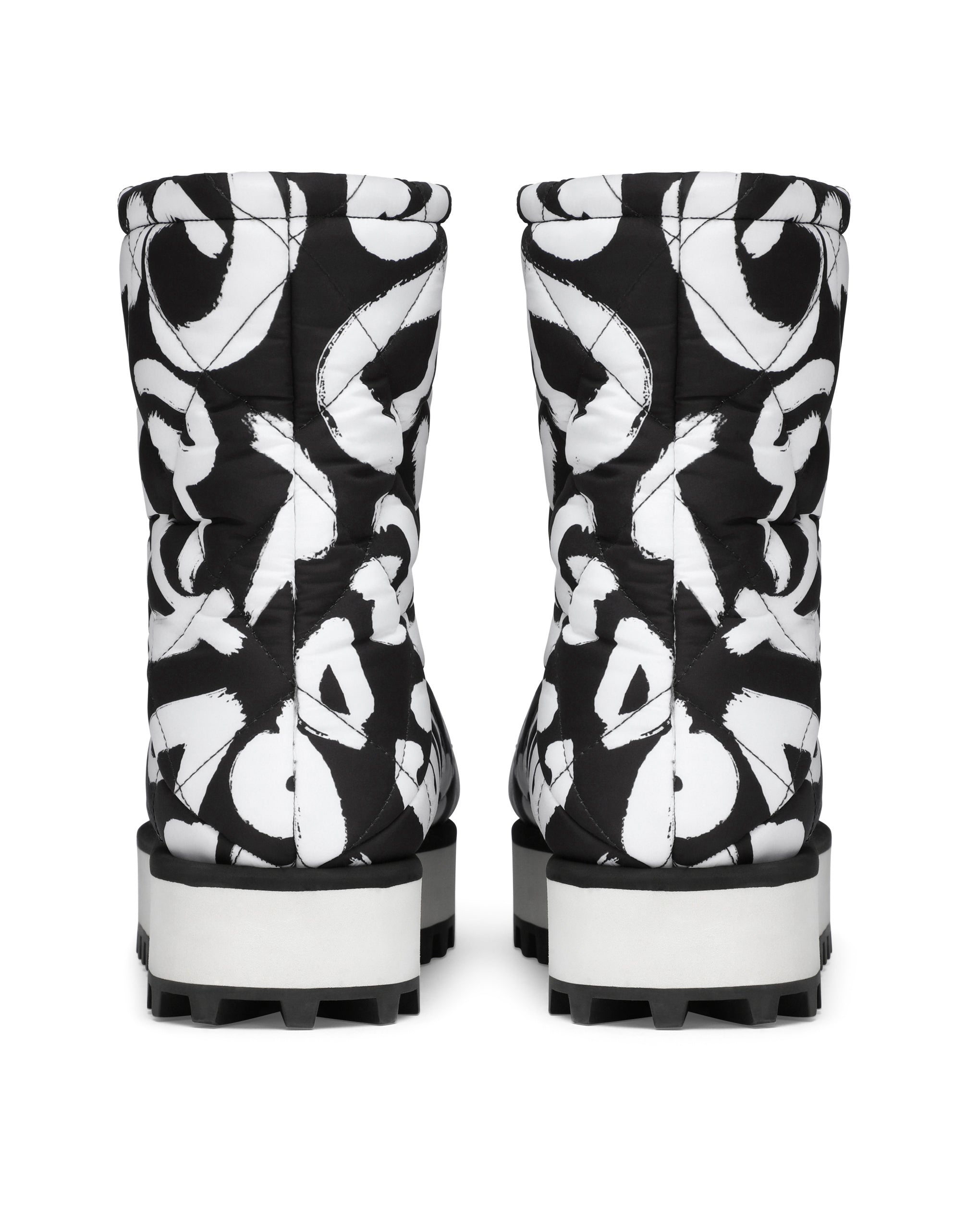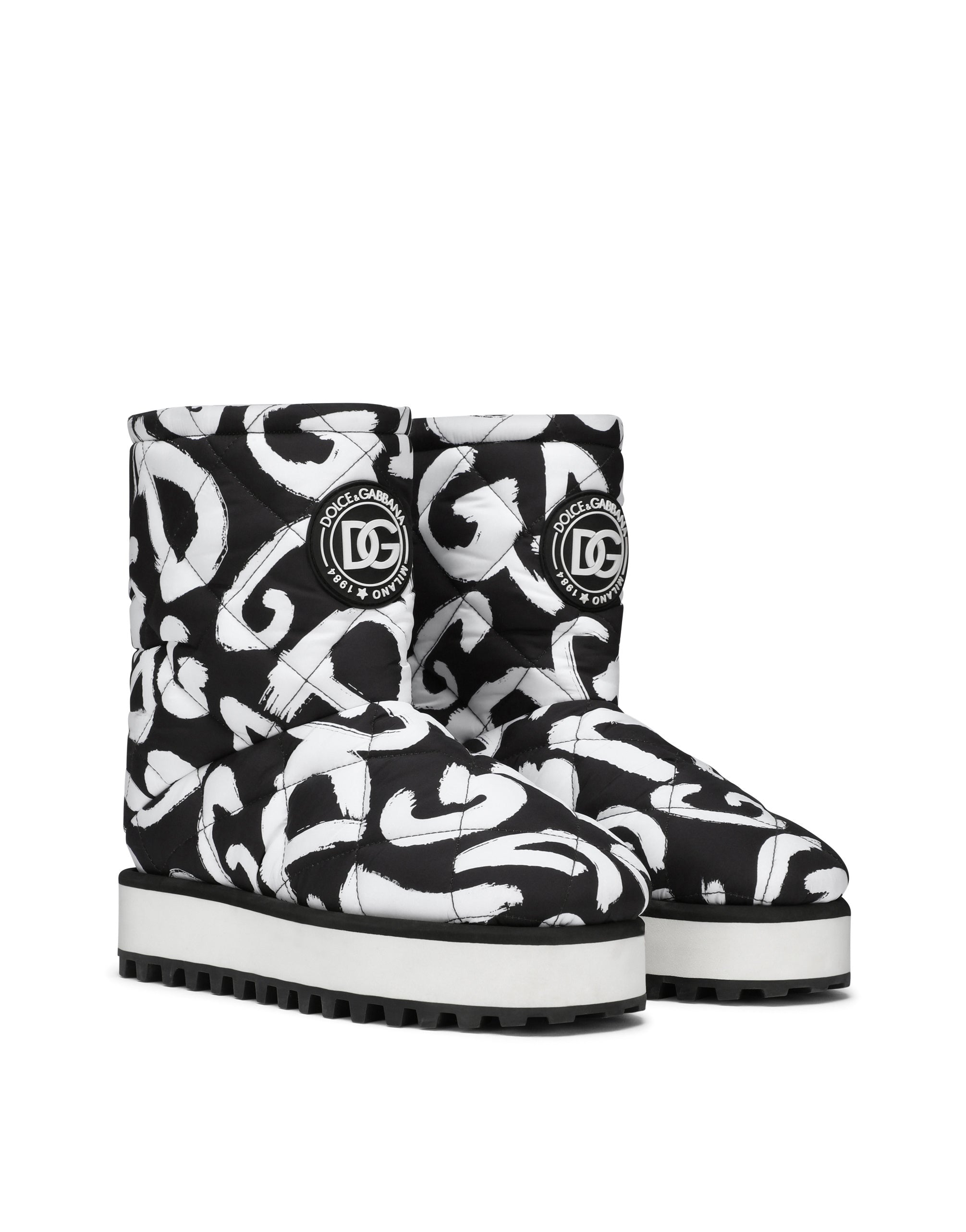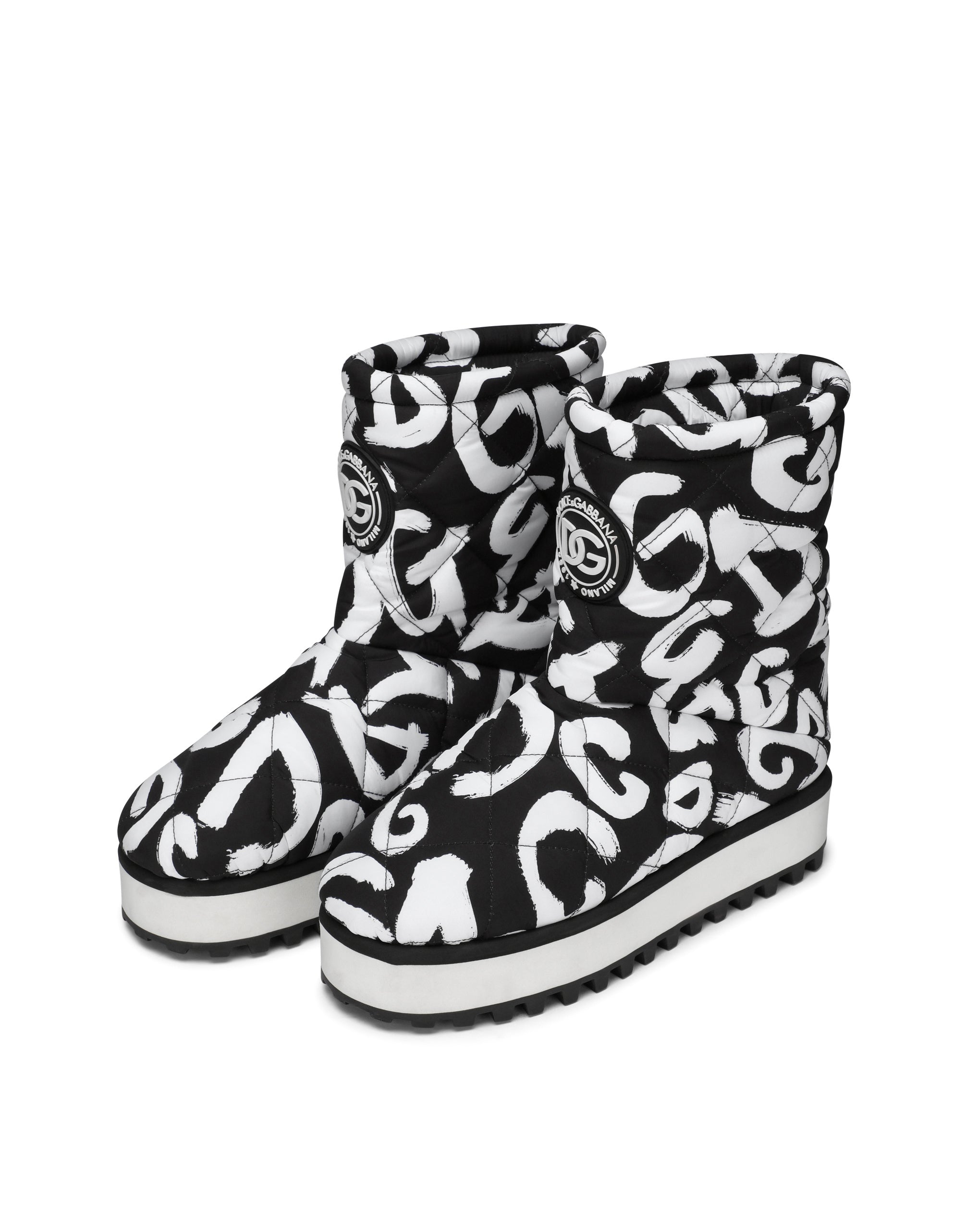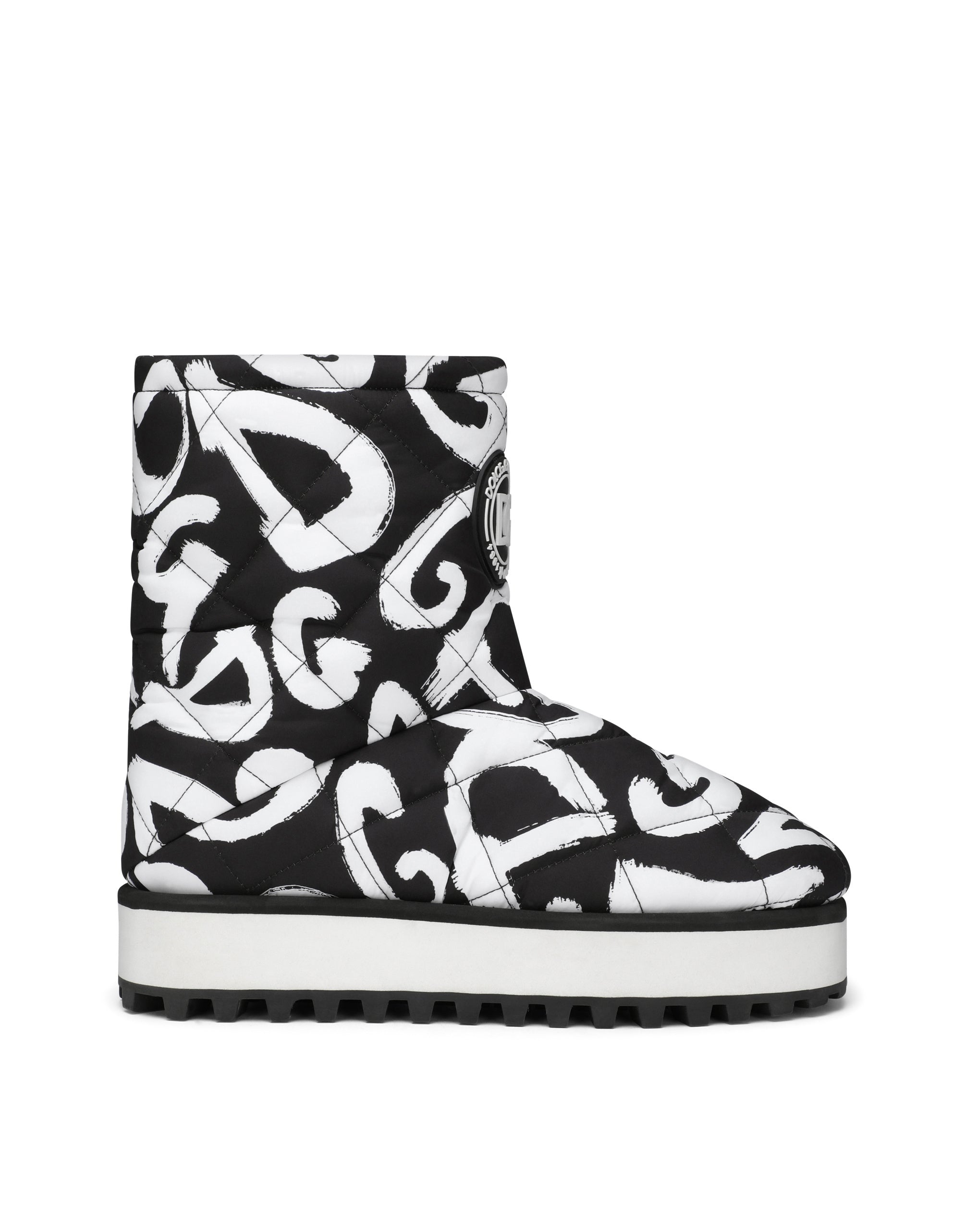 The inspiration for this new collection was the metaverse that, through its direct vision of the future and the younger generations, creates multiple identities that can intermingle and coexist. Flaunting a bold, contemporary feel, these DG Boots ankle boots come in quilted nylon. Featuring the new logo print, they come with the DG logo patch and an extra-light rubber sole. • Printed nylon upper • Fabric footbed with branded label • Two-tone rubber sole • Made in Italy