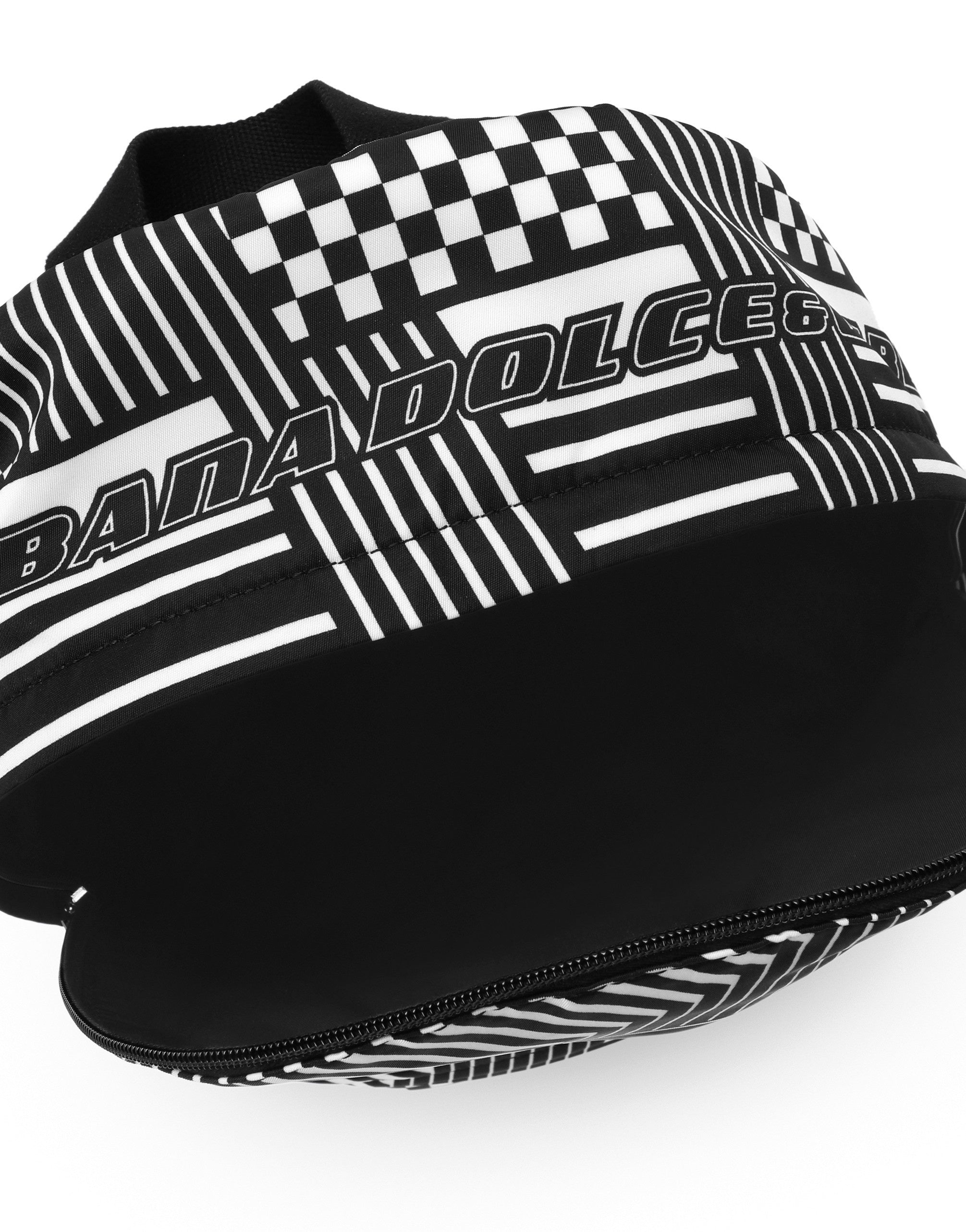 The Fall-Winter 2024-25 Boy’s DNA Collection is interpreting adult style in a mini-me version. From jersey down jackets to glen plaid, faux fur teddy and graphite-colored pea coats, as well as corduroy vests featuring a special showerproof finish, every garment offers comfort and style for boldly stepping in to fall. A collection with a vibrant color palette, embellished by all-over DG Race prints, inspired by boxing, and the DG Comics print for newborns. Nylon backpack with all-over DNA print: • Black • Tape top handle • Synthetic nappa leather zip-pull and zipper on top • Synthetic nappa leather details • Front pocket with zipper fastening and synthetic nappa leather zip-pull • Comfortable, adjustable nylon shoulder straps • Padded back panel • Name tag on the back • Nylon lining • Inner label with heat-stamped logo • Measurements: H41 x W31 x D12 cm • Item comes with a branded dust bag • Made in Italy
