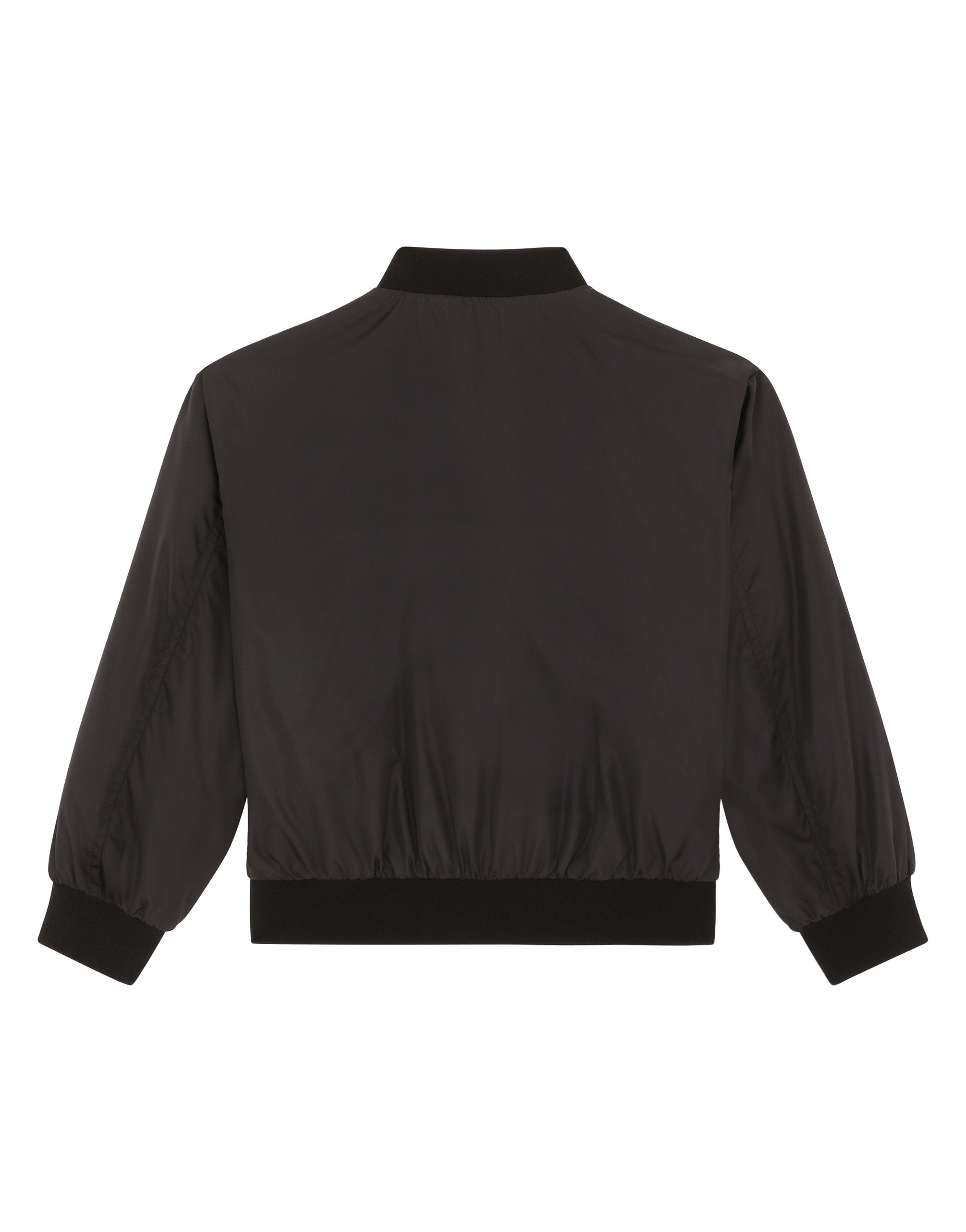 Dolce&Gabbana is giving shape to a timeless wardrobe, composed of iconic pieces that are perfect for the every day. Innovative materials and exclusive details reaffirm the brand’s distinctive style accents. This nylon bomber jacket features the rubberized logo tag that adds an unmistakable detail to the piece. • Oversize fit • Stretch knit bomber-style collar • Long sleeves • Front welt pockets with zipper • Stretch knit hem and cuffs • Lined • Lightly padded • Front zipper fastening • The item in the size 3 years measures 42 cm from the shoulder seam • Made in Italy