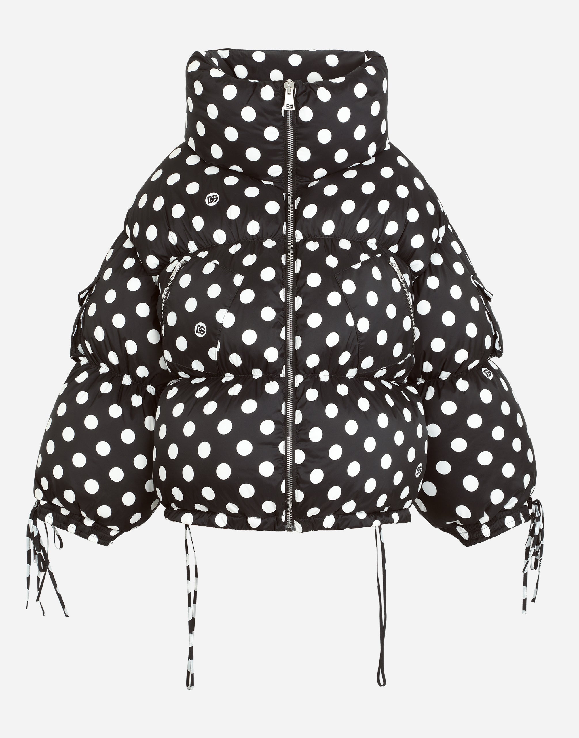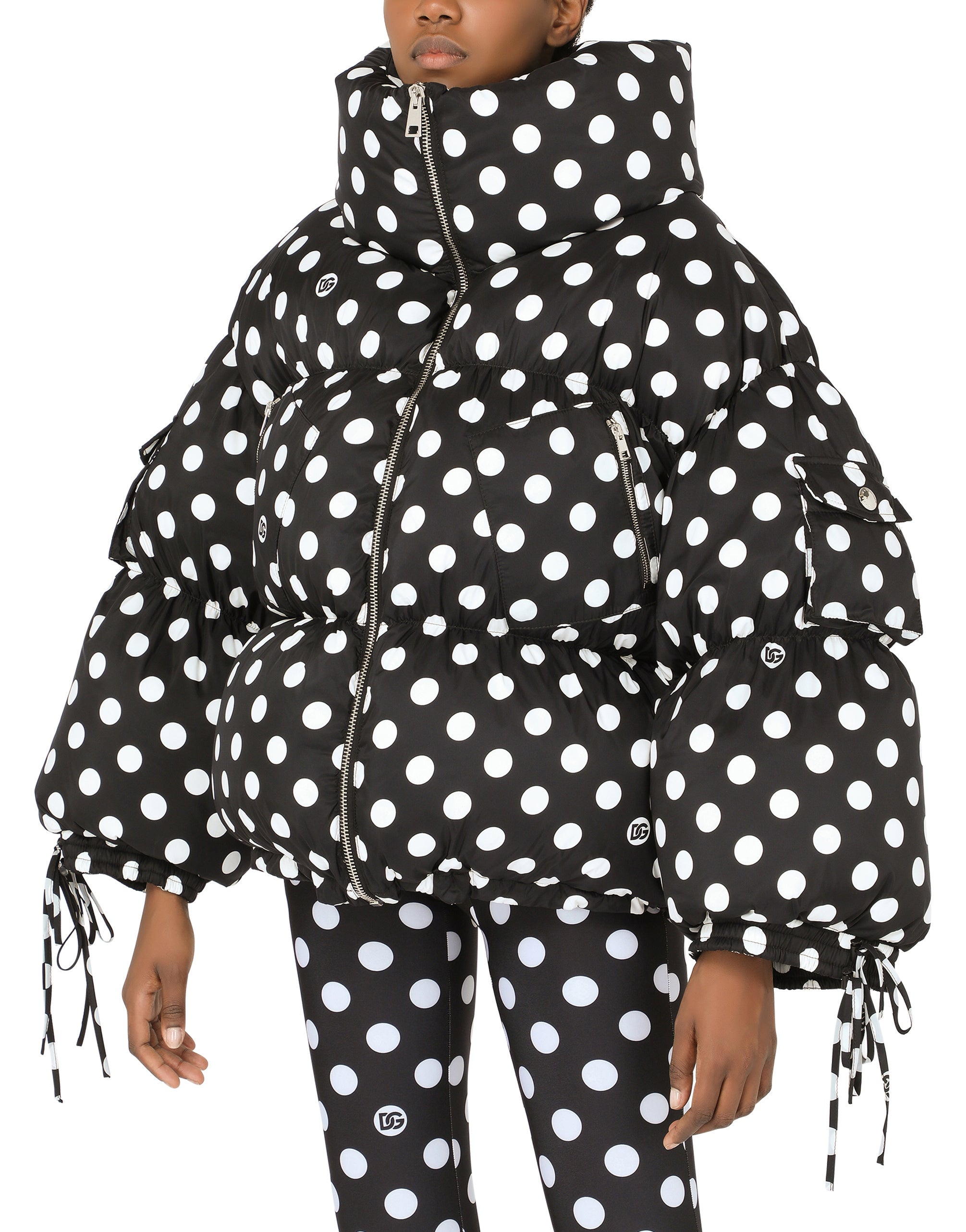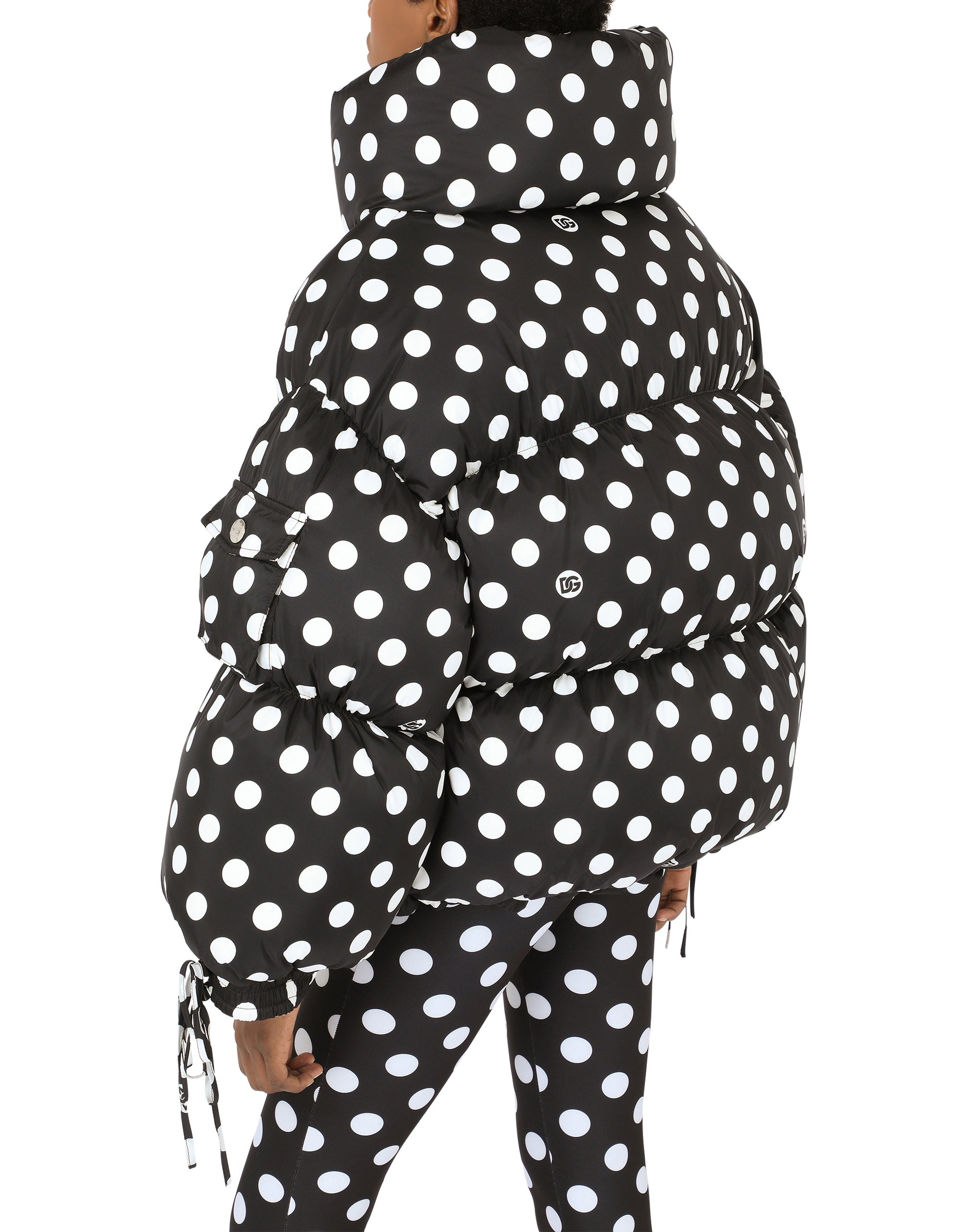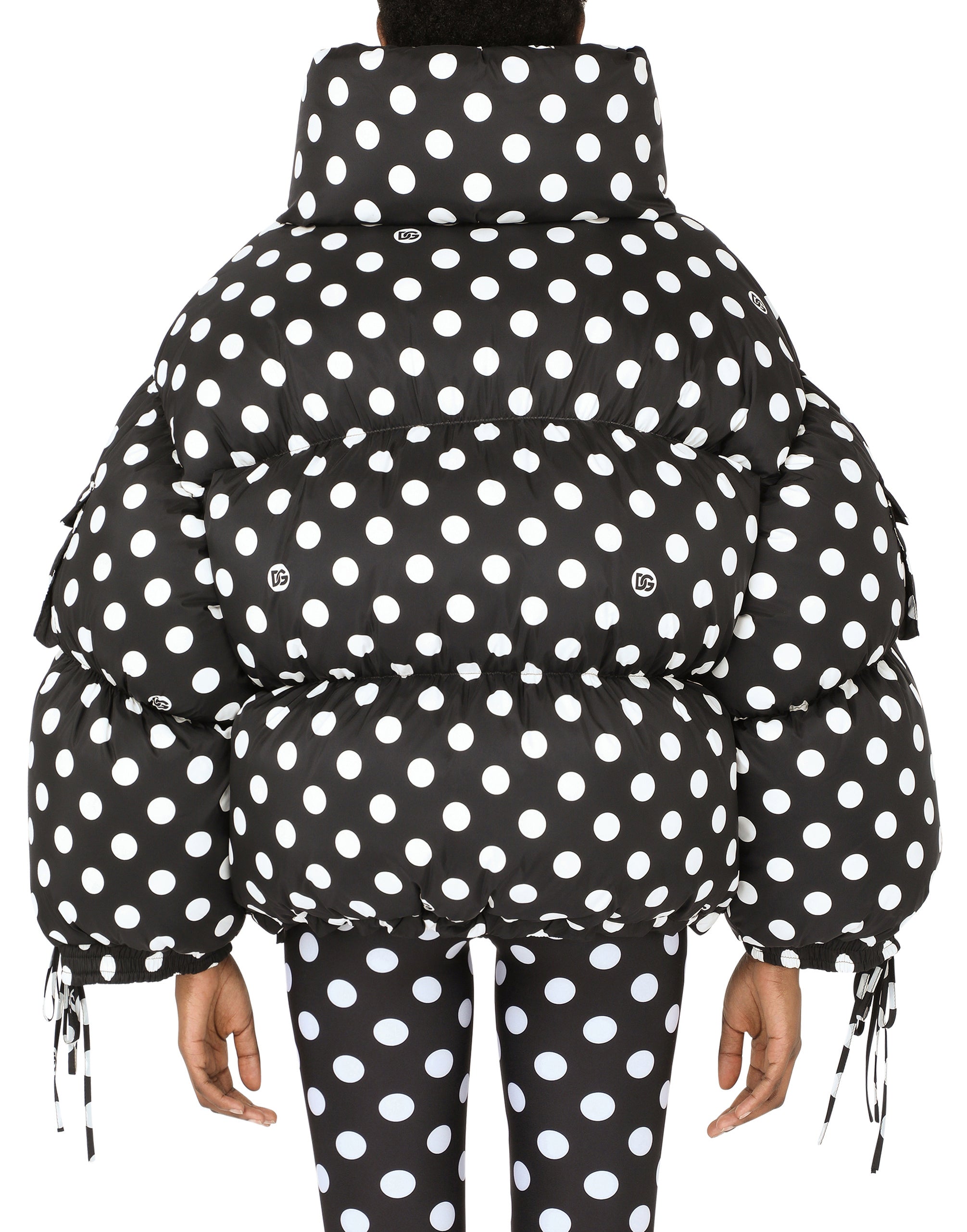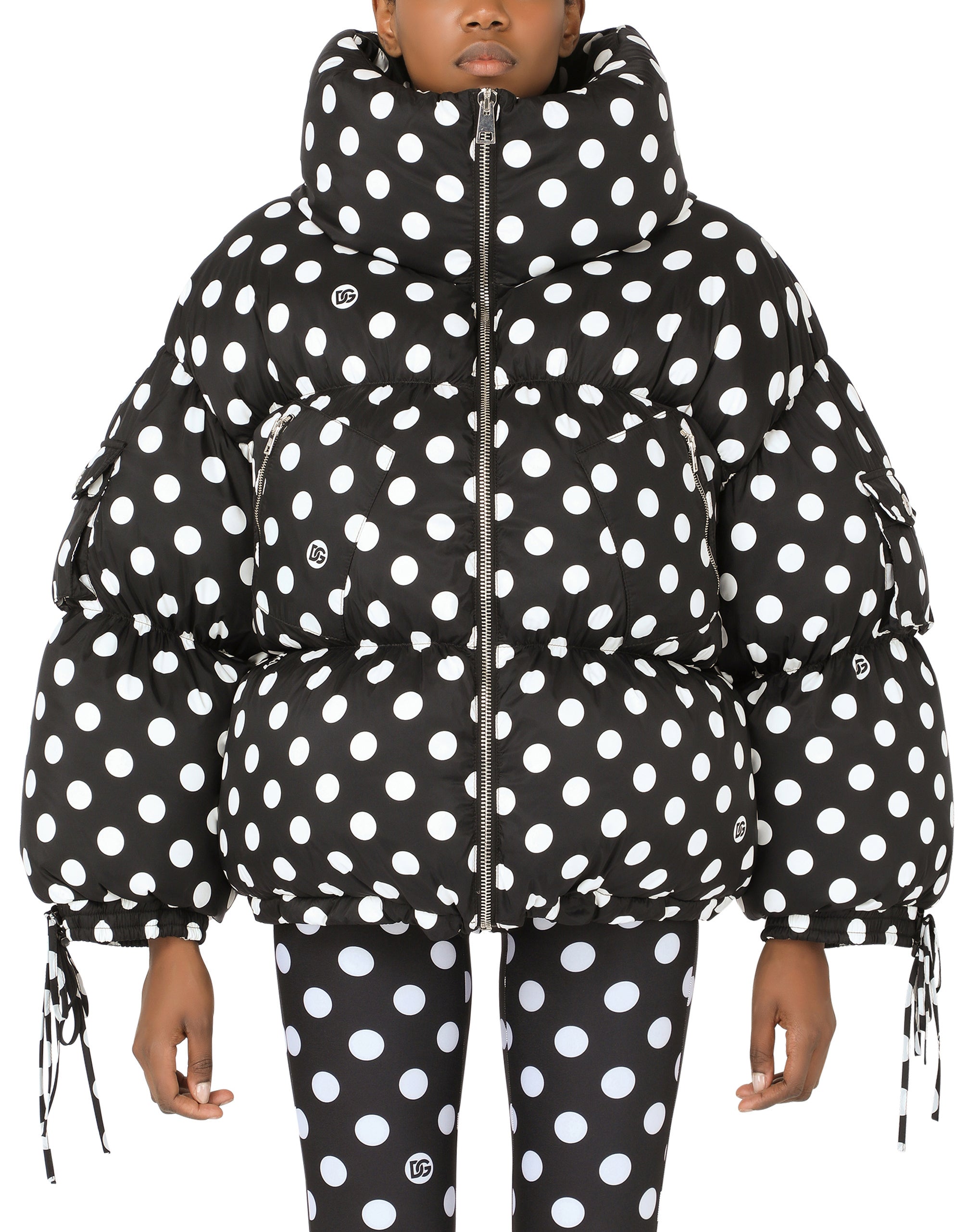 • High neck • Long sleeves with drawstring cuffs • Drawstring jacket hem • Zipped pockets • Goose down padding • Nylon lining • Zipper fastening and branded slider • The piece measures 65 cm - 25.6 inches from the rear collar seam on a size IT 40 • The model is 175 cm - 68.9 inches tall and wears a size IT 40 • Made in Italy
