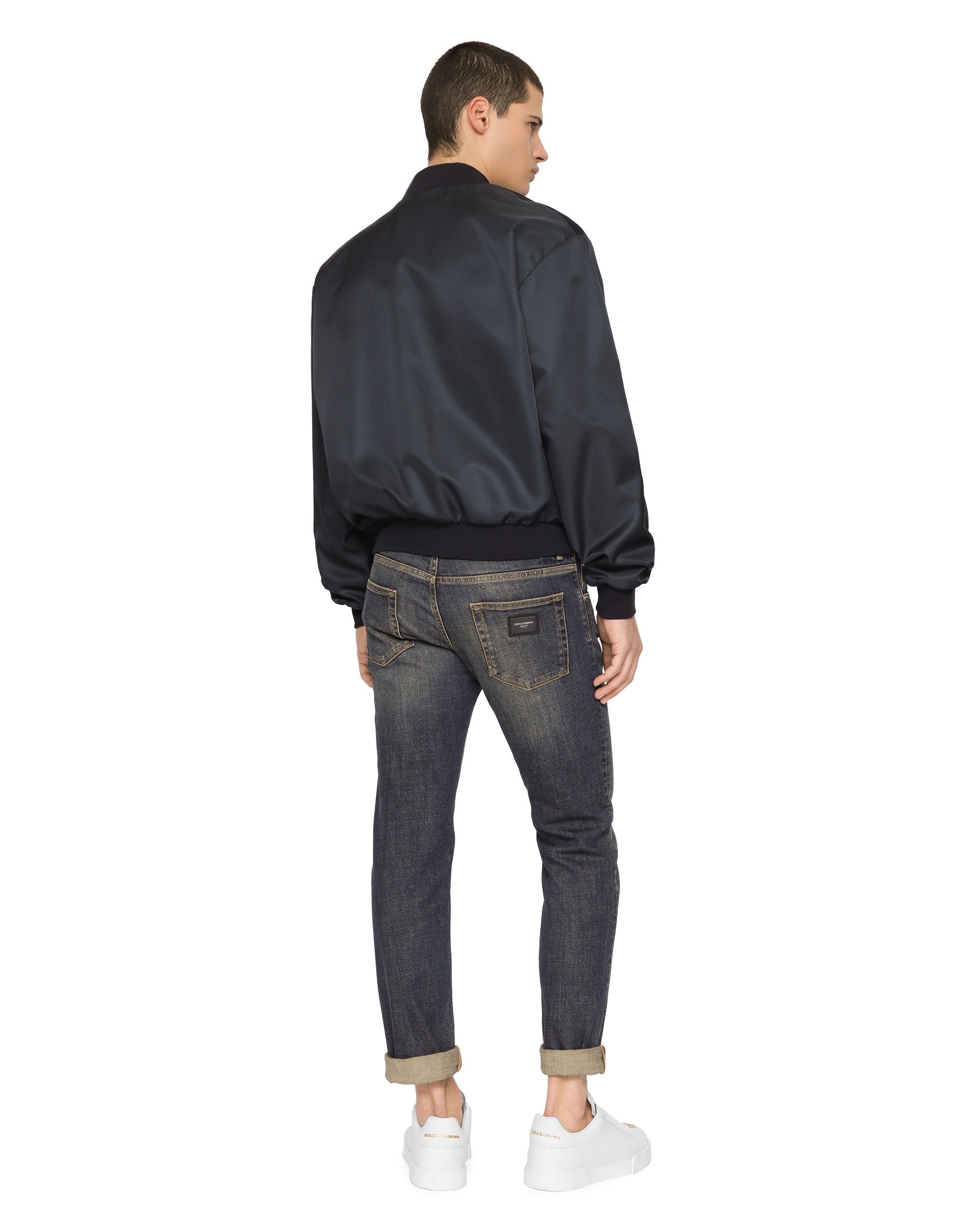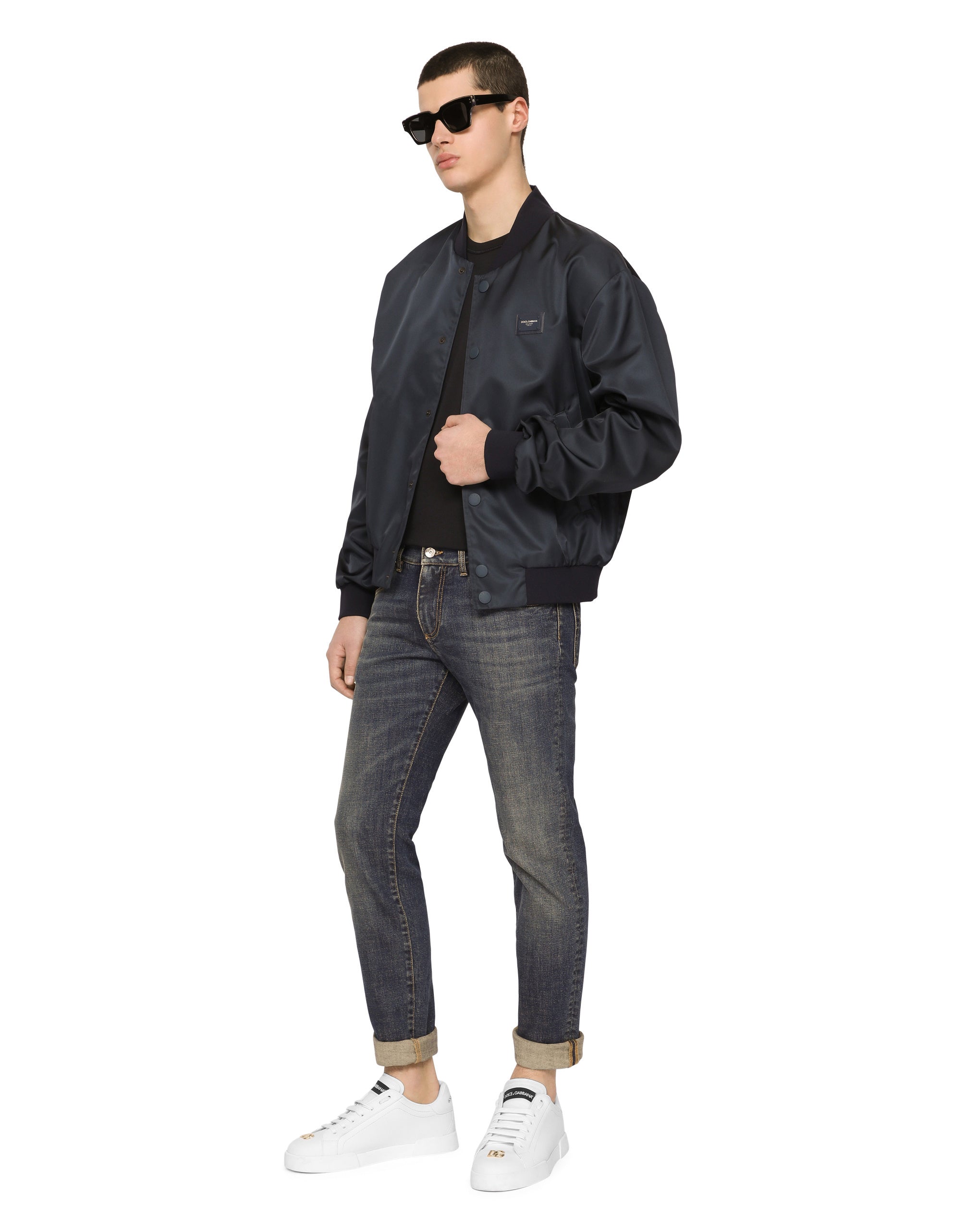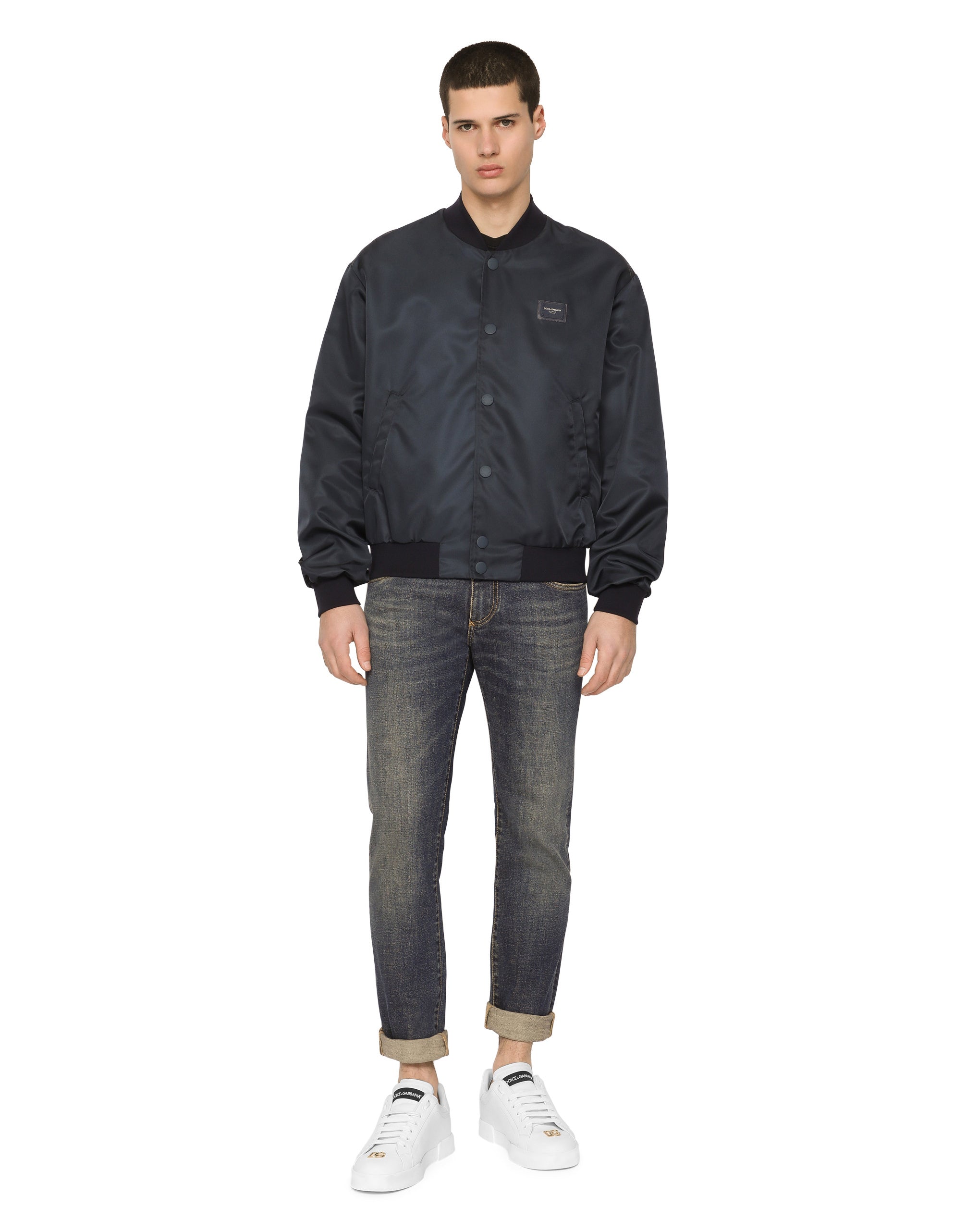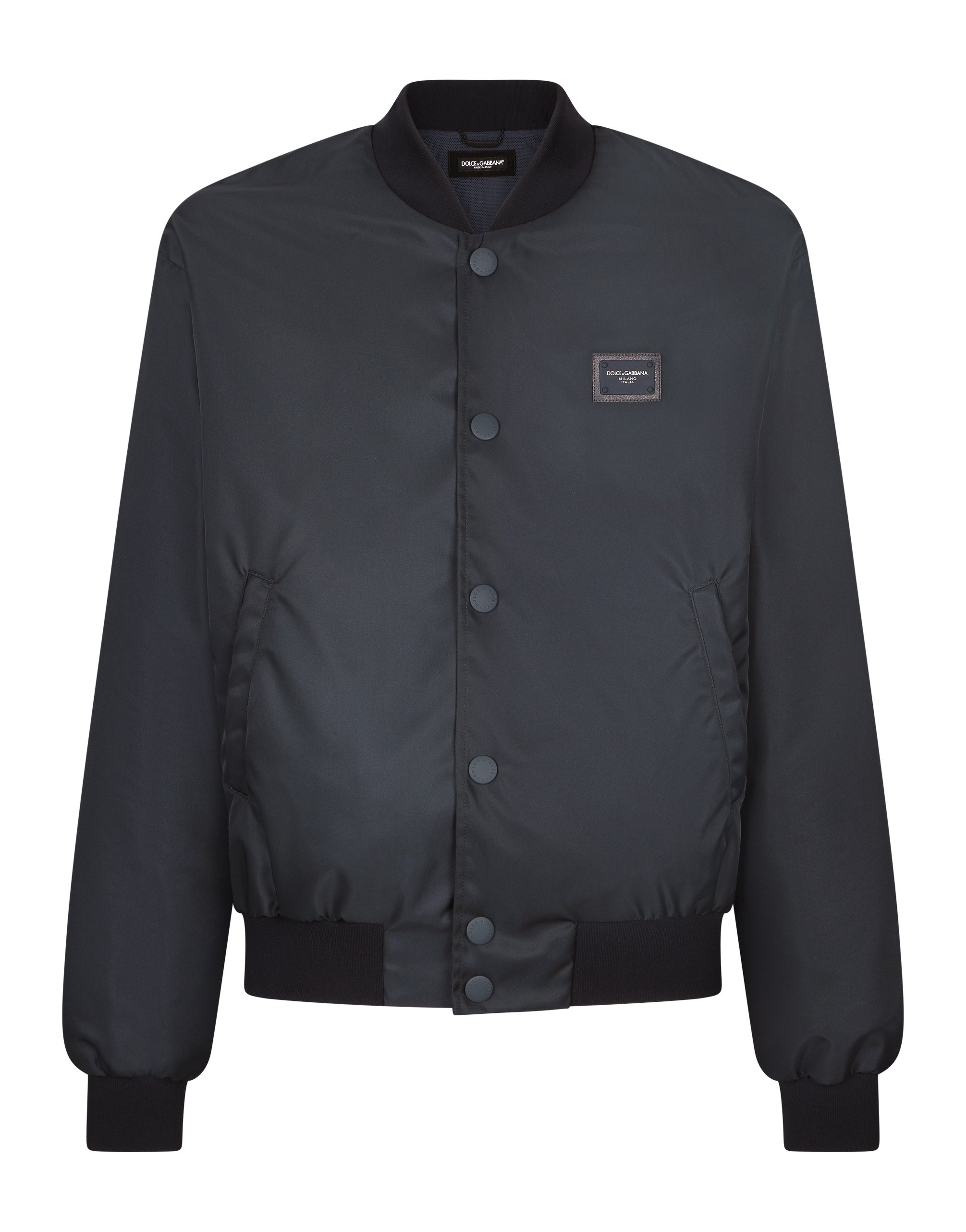 The “Essential” Collection is the modern men's closet designed by Dolce&Gabbana. A range of timeless, iconic pieces developed across all product categories. Nylon jacket with rubberized tag featuring the Dolce&Gabbana logo. • Light insulated padding on the interior • Regular fit • Branded buttons at the front • Inner and outer welt pockets with zipper • Stretch knit neck, hem and cuffs • Mesh lining • The piece measures 66.5 cm from the rear collar seam on a size IT 48 • The model is 185 cm tall and wears a size IT 48 • Made in Italy